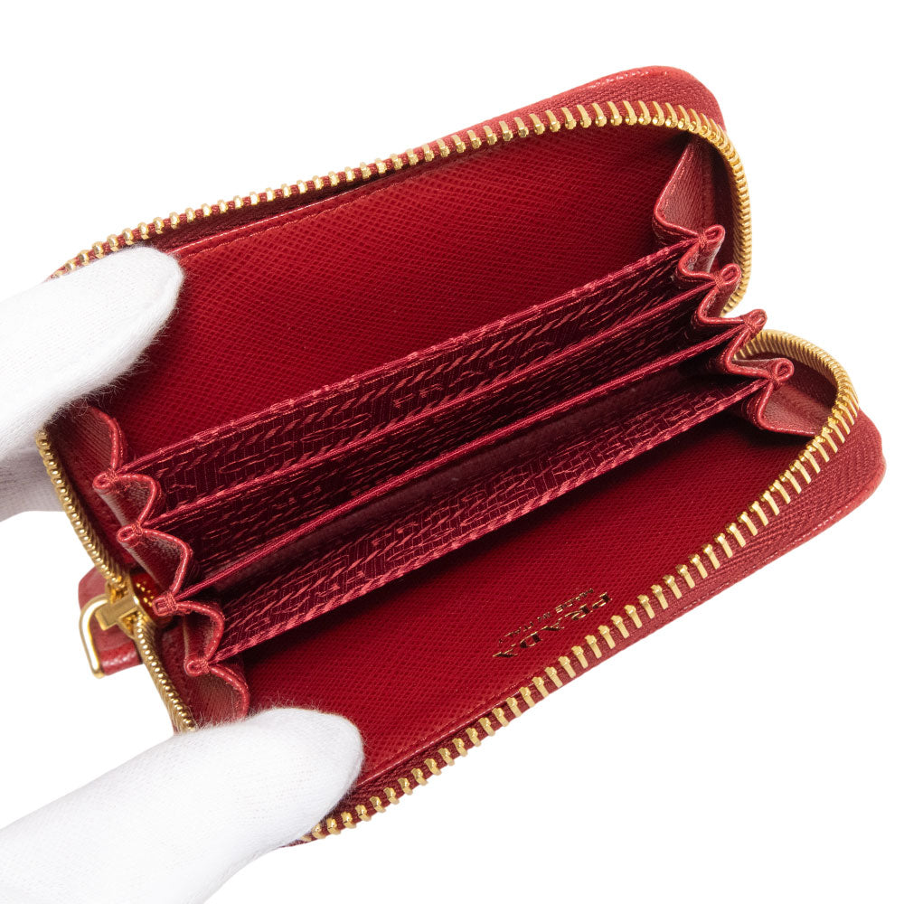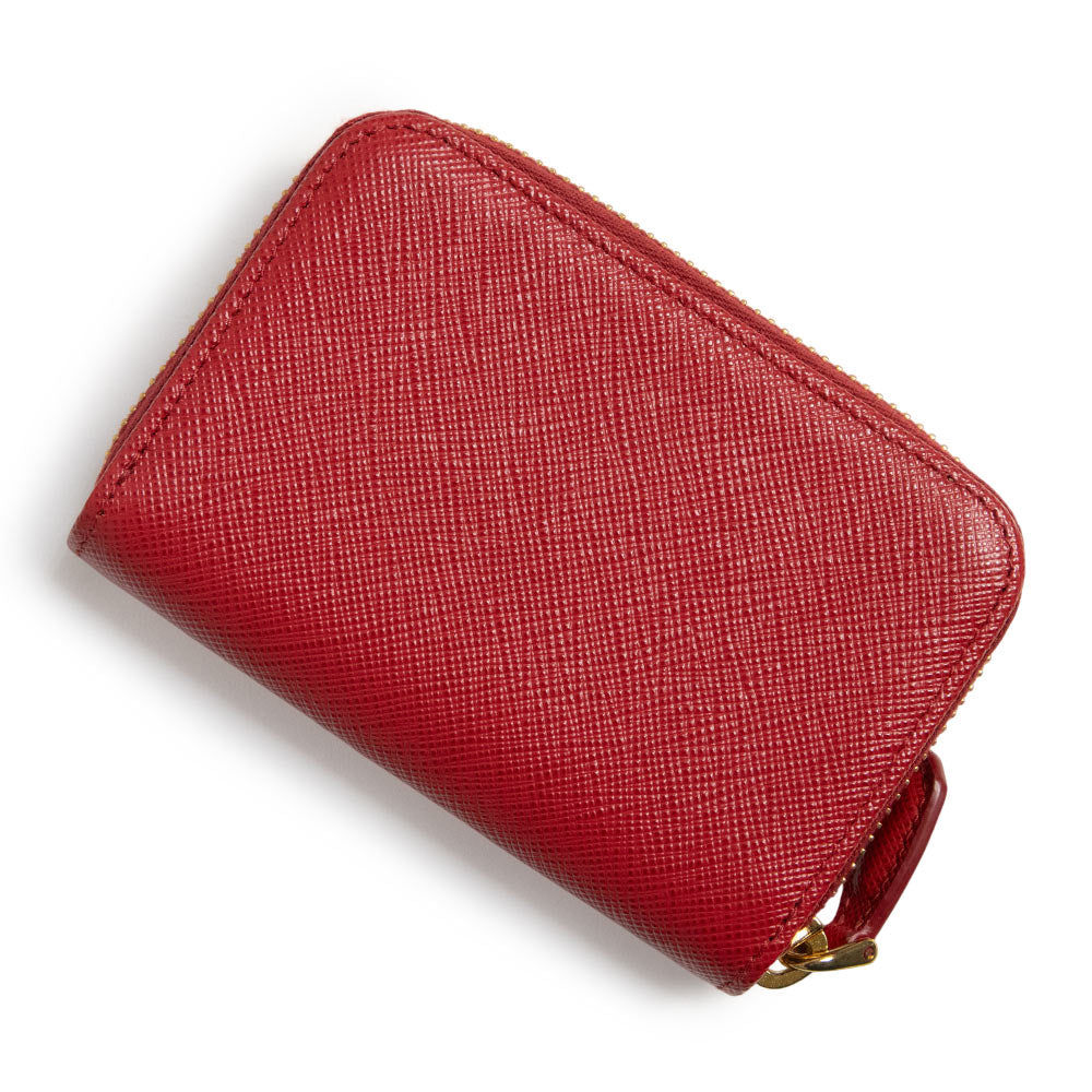 プラダを象徴するサフィアーノレザーにゴールドのロゴが映えるレッドカラーのカードケースです。コンパクトなサイズ感ながら複数のスロットを備えており、名刺入れや定期入れ、パスケースとしてマルチに活用できる機能的な設計が特徴となっています。耐久性に優れた型押しレザーはキズや汚れに強く、日常のあらゆるシーンで長く愛用できる実用的なアイテムです。 |