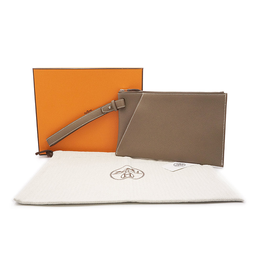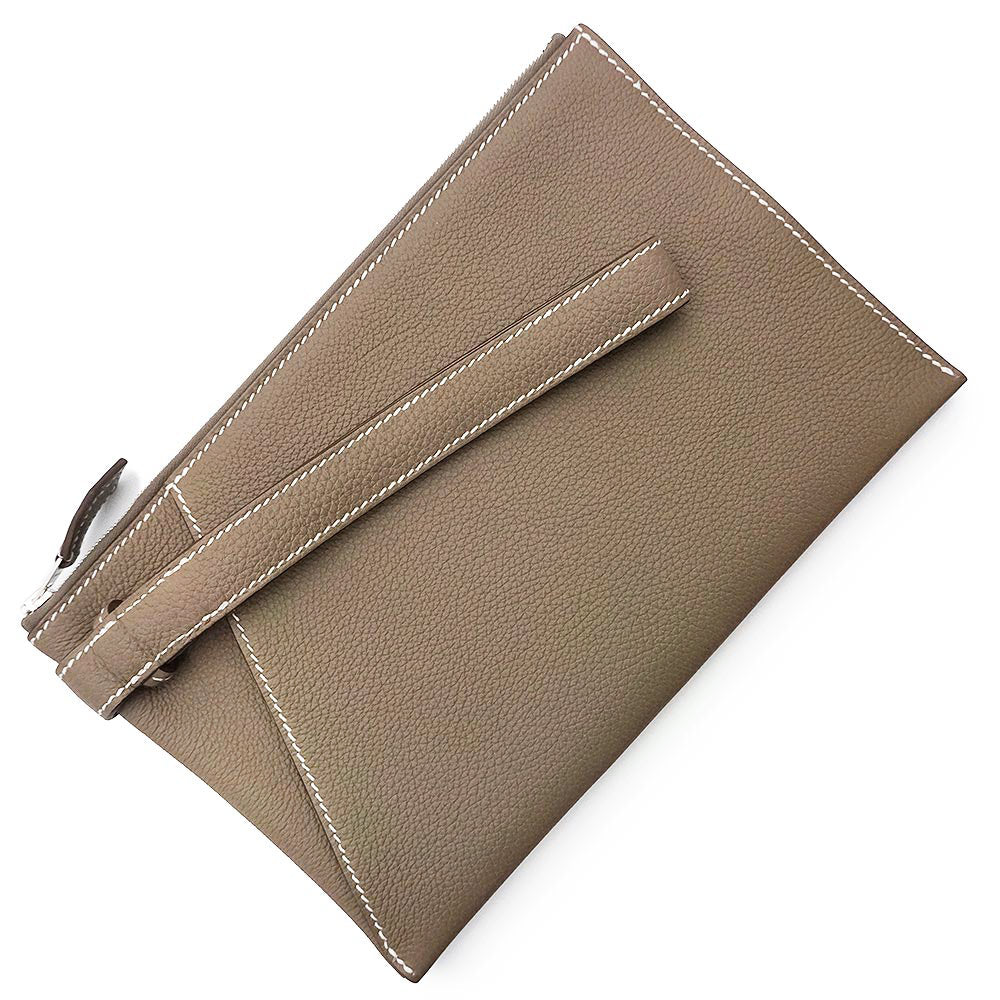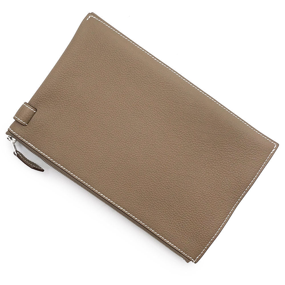 【新品・未使用品】HERMES エルメス カバ ヴェルティージュ 24 トゴ エトゥープ エトープ グレージュ B刻印 ポーチ セカンド クラッチバッグ レザー シルバー金具