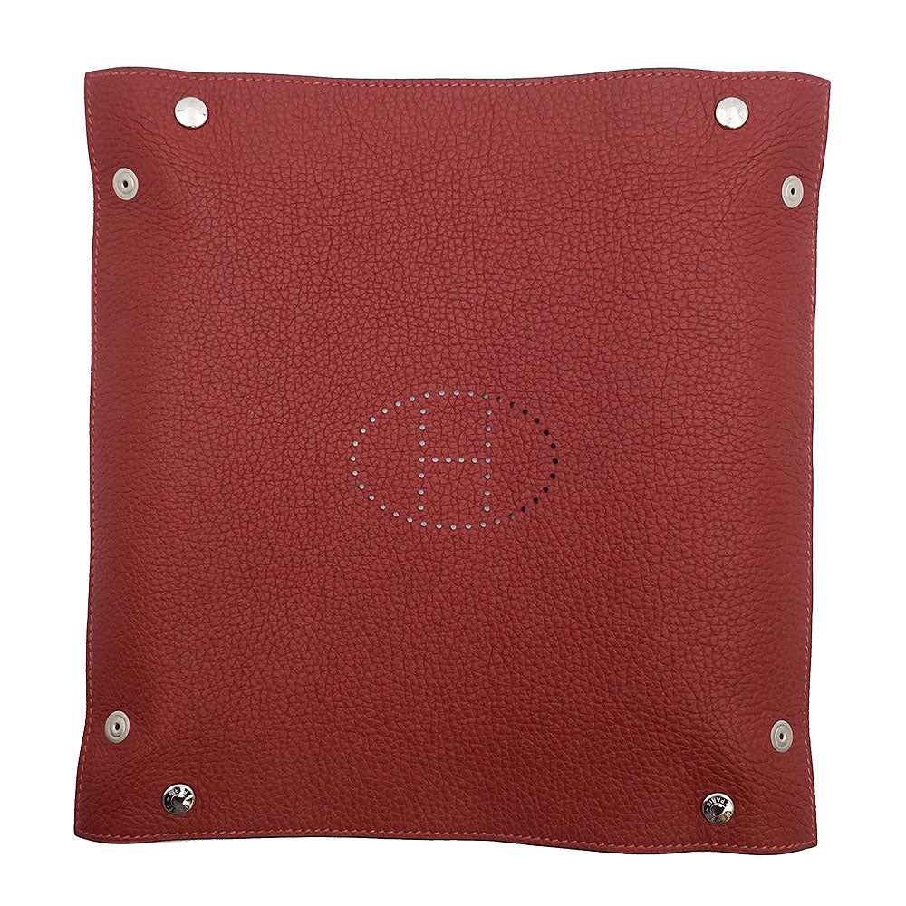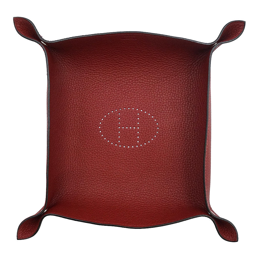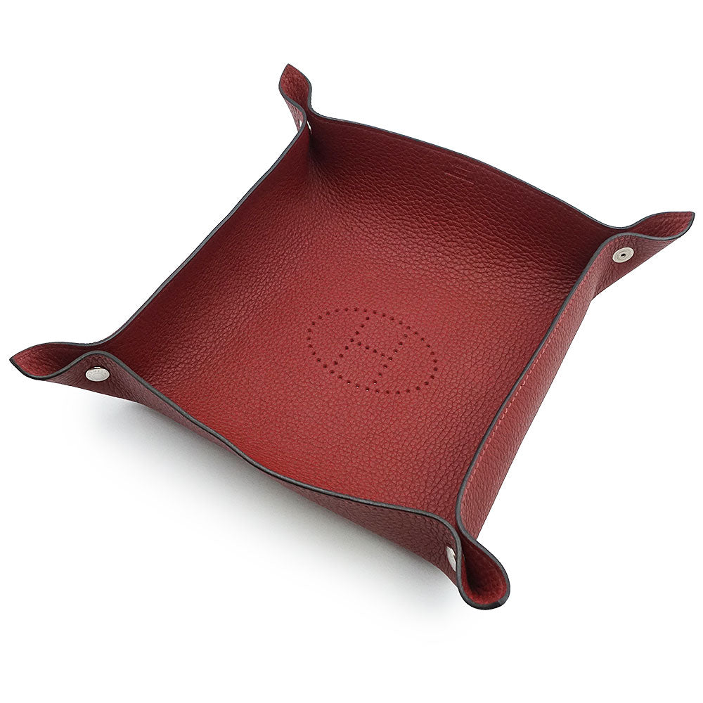 【未使用保管品】HERMES エルメス ヴィド ポッシュ ミーズ エ ルランス Hエヴリン トリヨンクレマンス ルージュアッシュ レッド □J刻印 デスク トレー 小物入れ レザー シルバー金具
