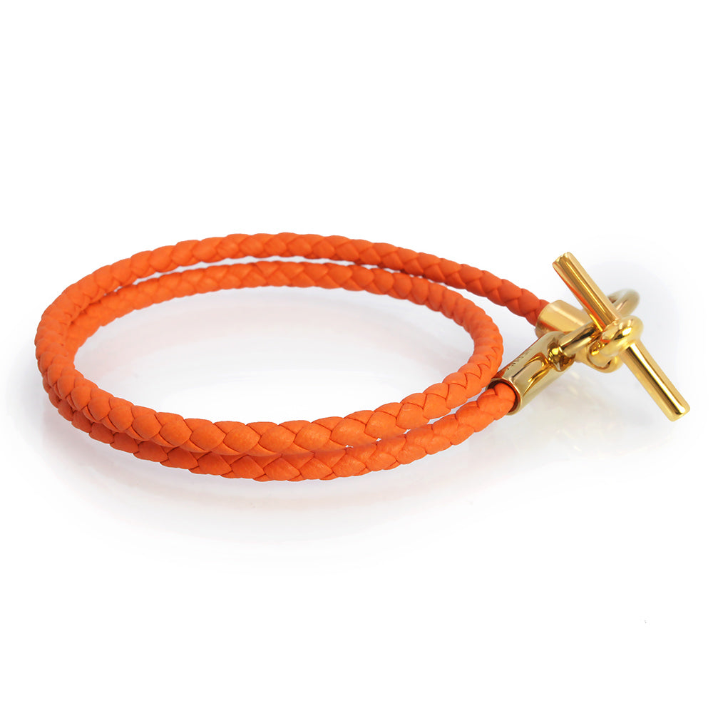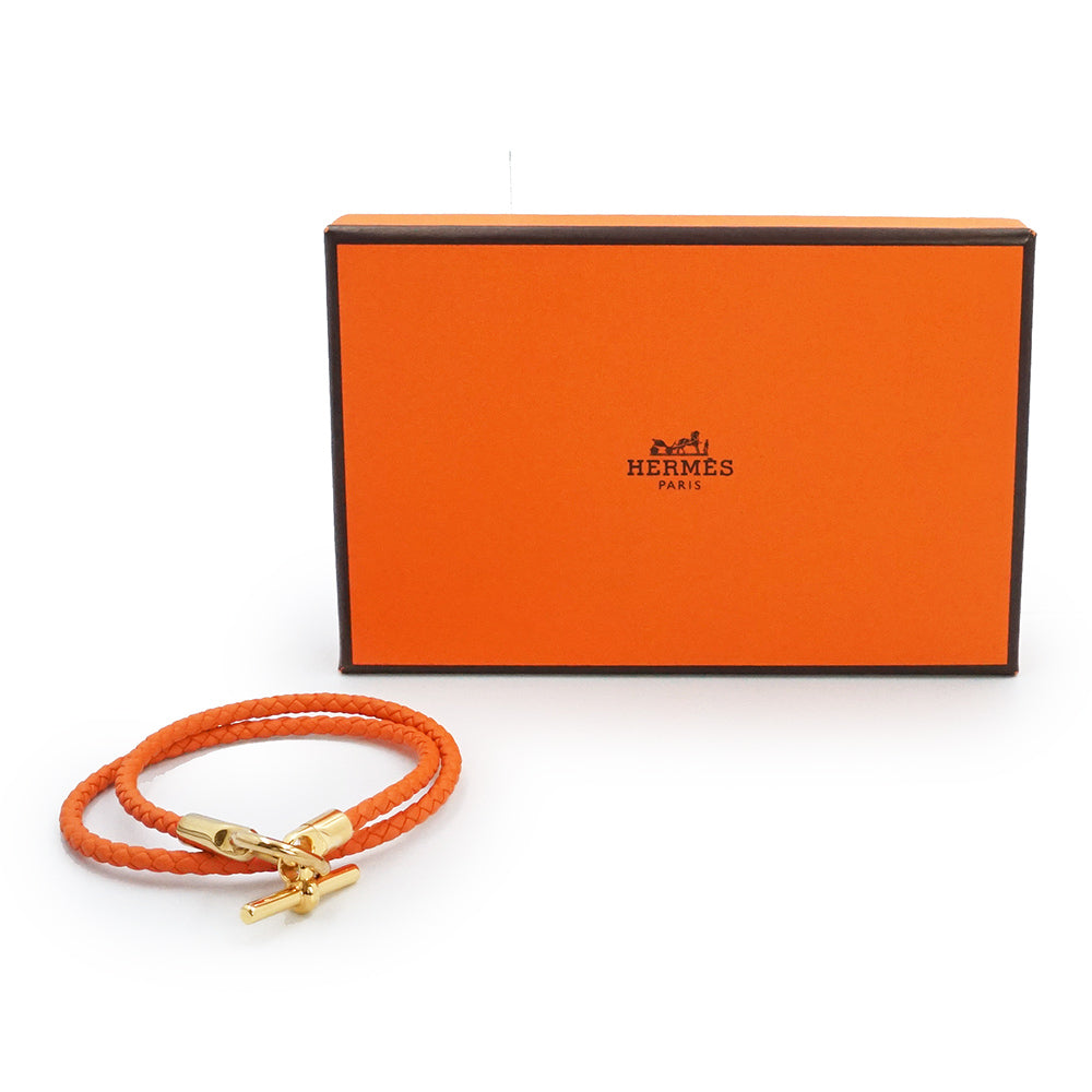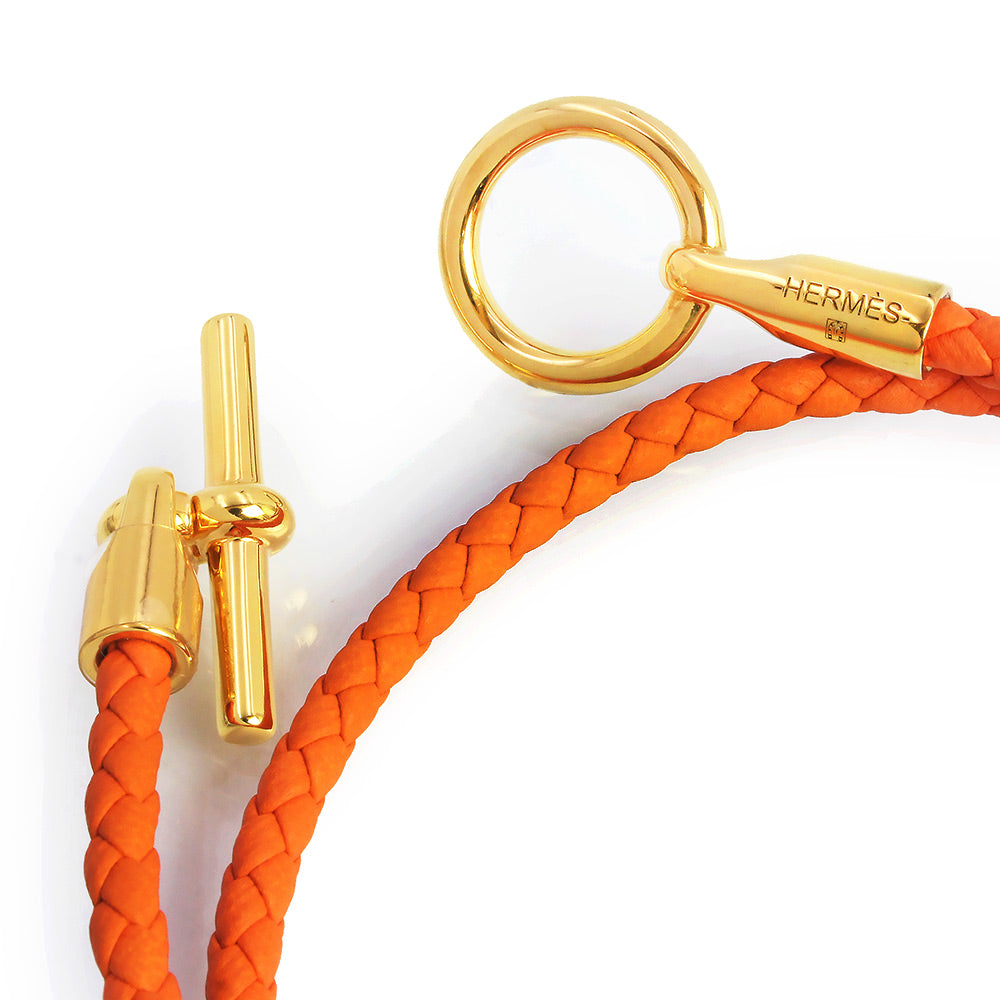 【未使用 展示品】HERMES エルメス グレナン ドゥブルトゥール 2連 ヴォースイフト オレンジ ブレスレット 編み込みレザー ゴールド金具 箱付
