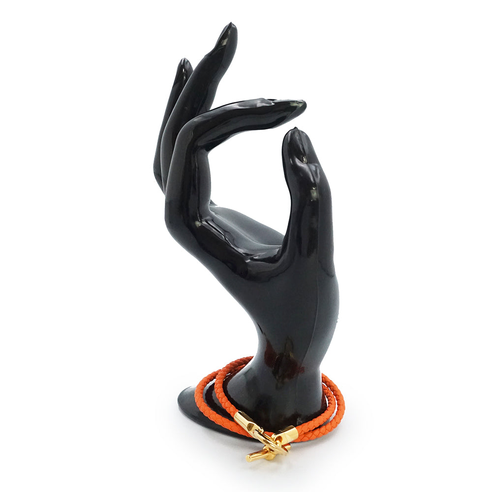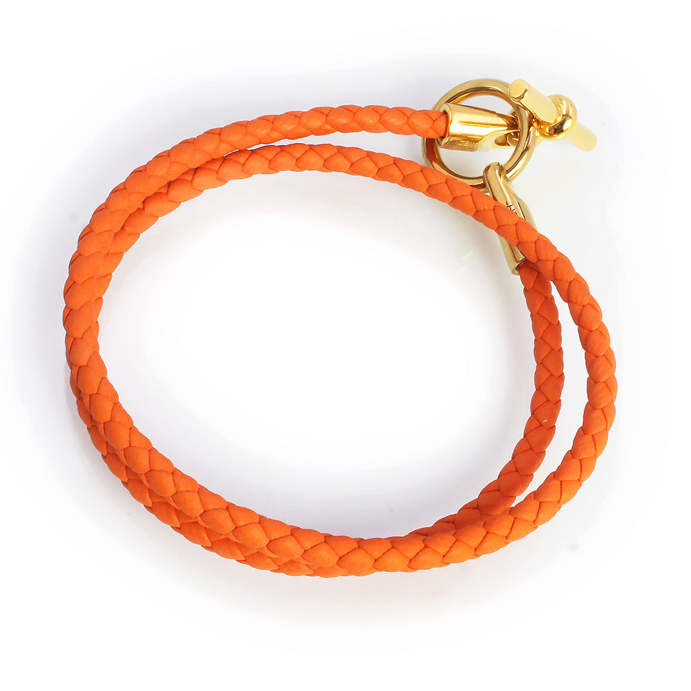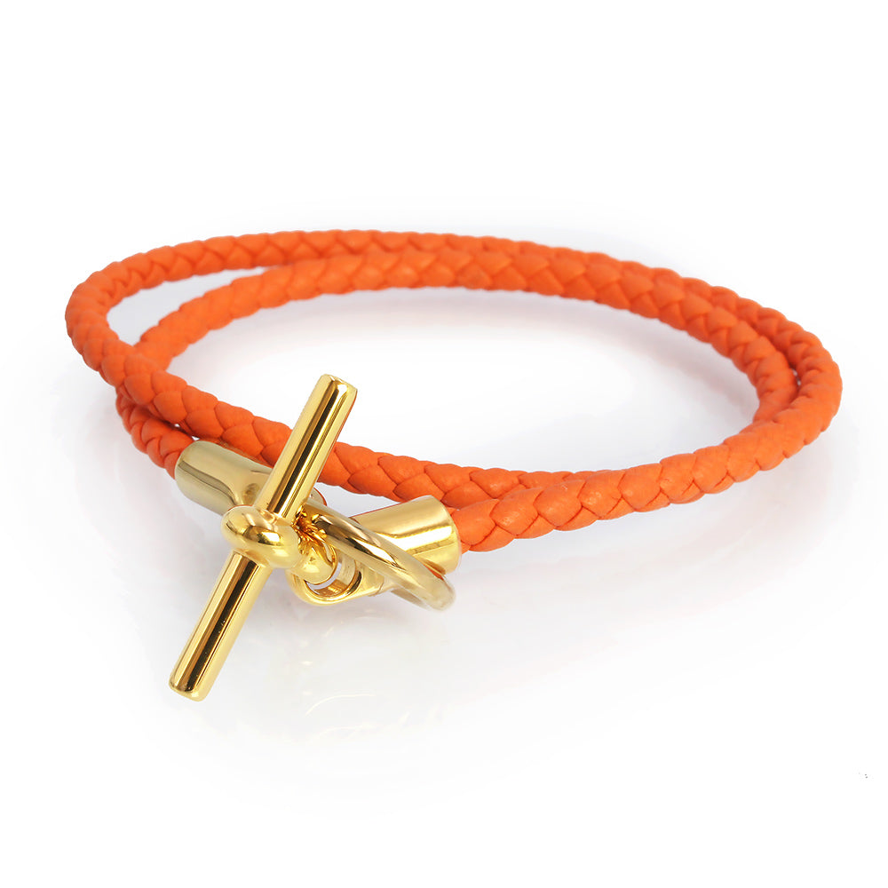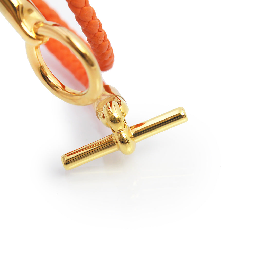 【未使用 展示品】HERMES エルメス グレナン ドゥブルトゥール 2連 ヴォースイフト オレンジ ブレスレット 編み込みレザー ゴールド金具 箱付