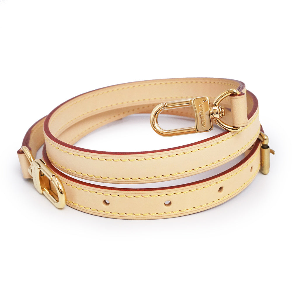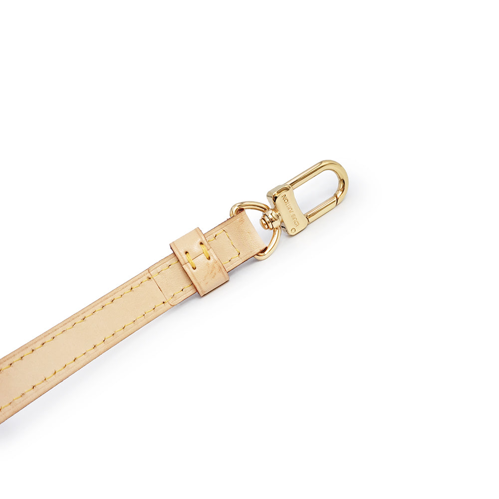 ヌメ革を使用したルイ・ヴィトンの「ショルダーストラップ」。ストラップ両端のゴールド金具で簡単に取り付け可能。お手持ちのバッグやアクセサリーポーチなどに取り付けて、いつもと違うスタイルをお楽しみ頂けます。 |
