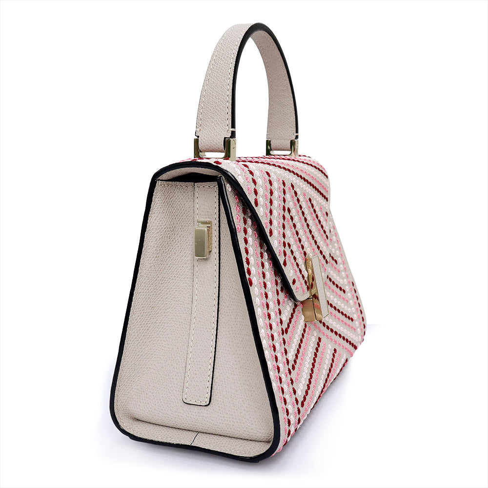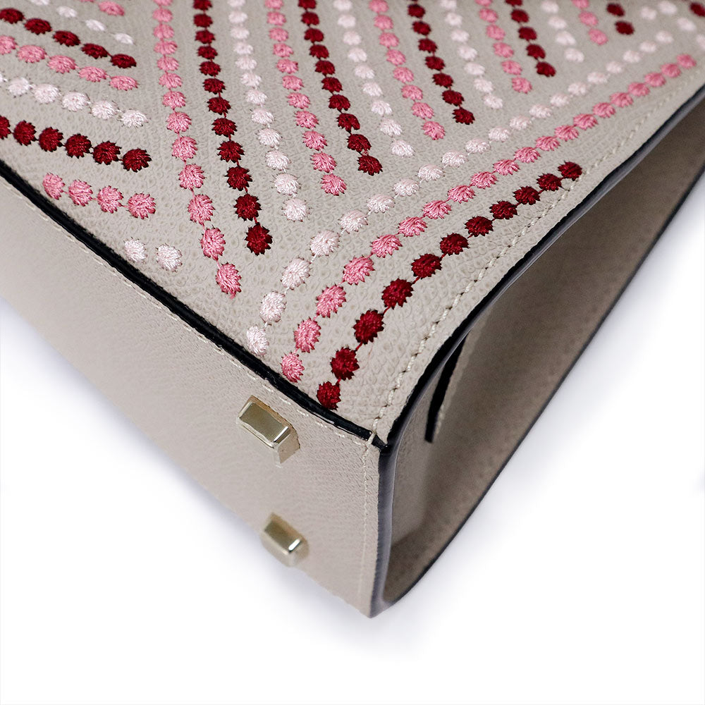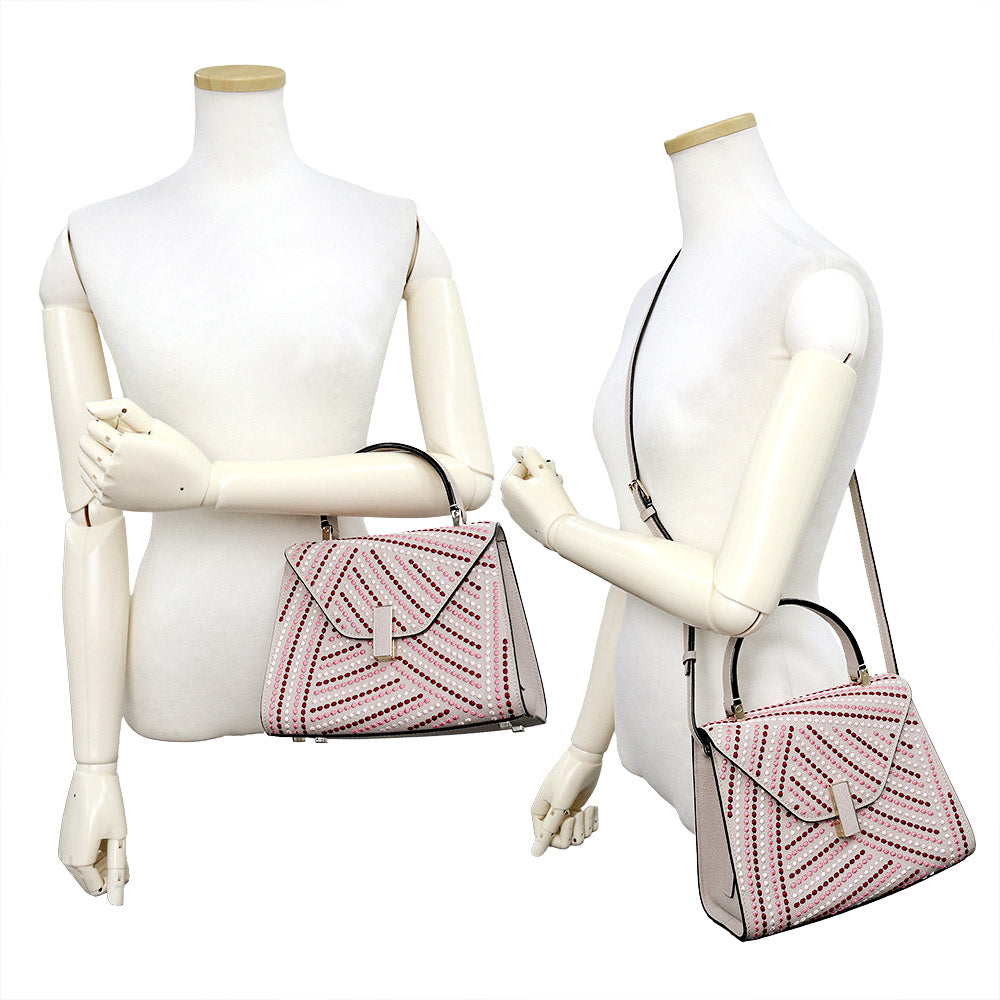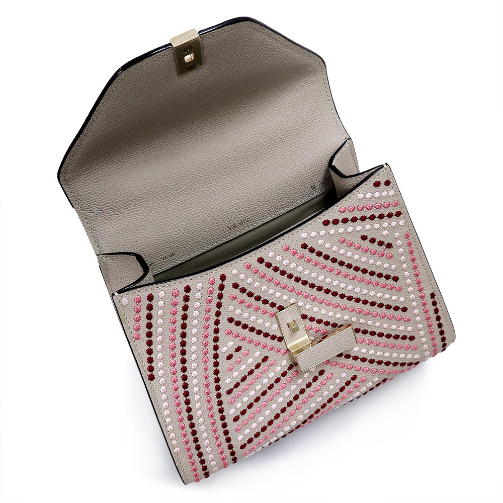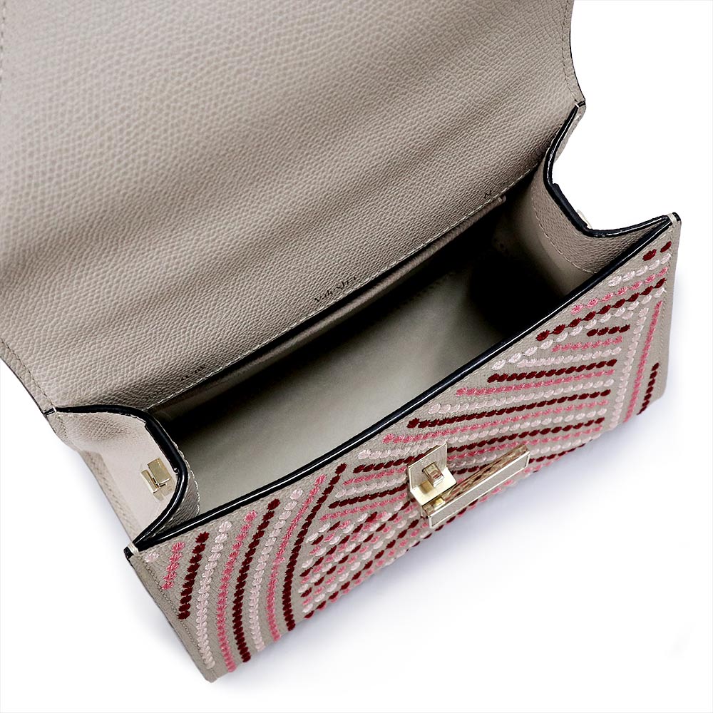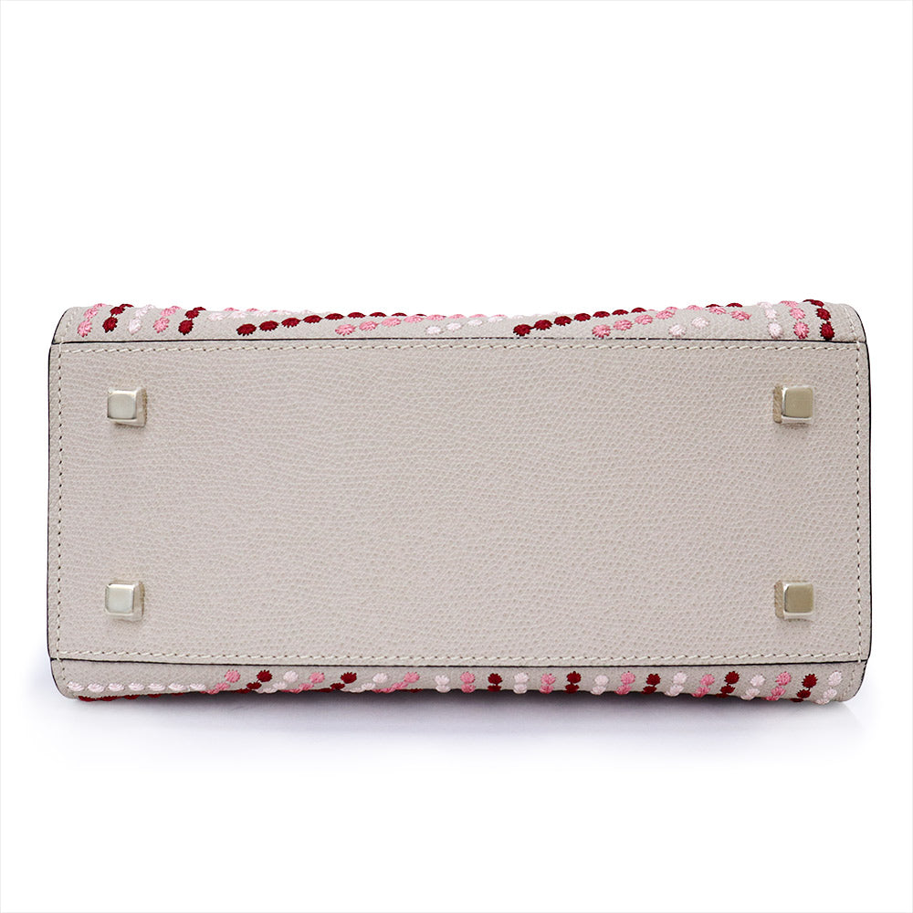 【新品・未使用品】Valextra ヴァレクストラ ミニ イジィデ エンブロイダリー ソフトカーフ ベージュ ピンク 2WAY 斜め掛け ショルダー ハンドバッグ レザー ゴールド金具