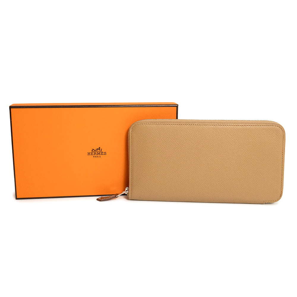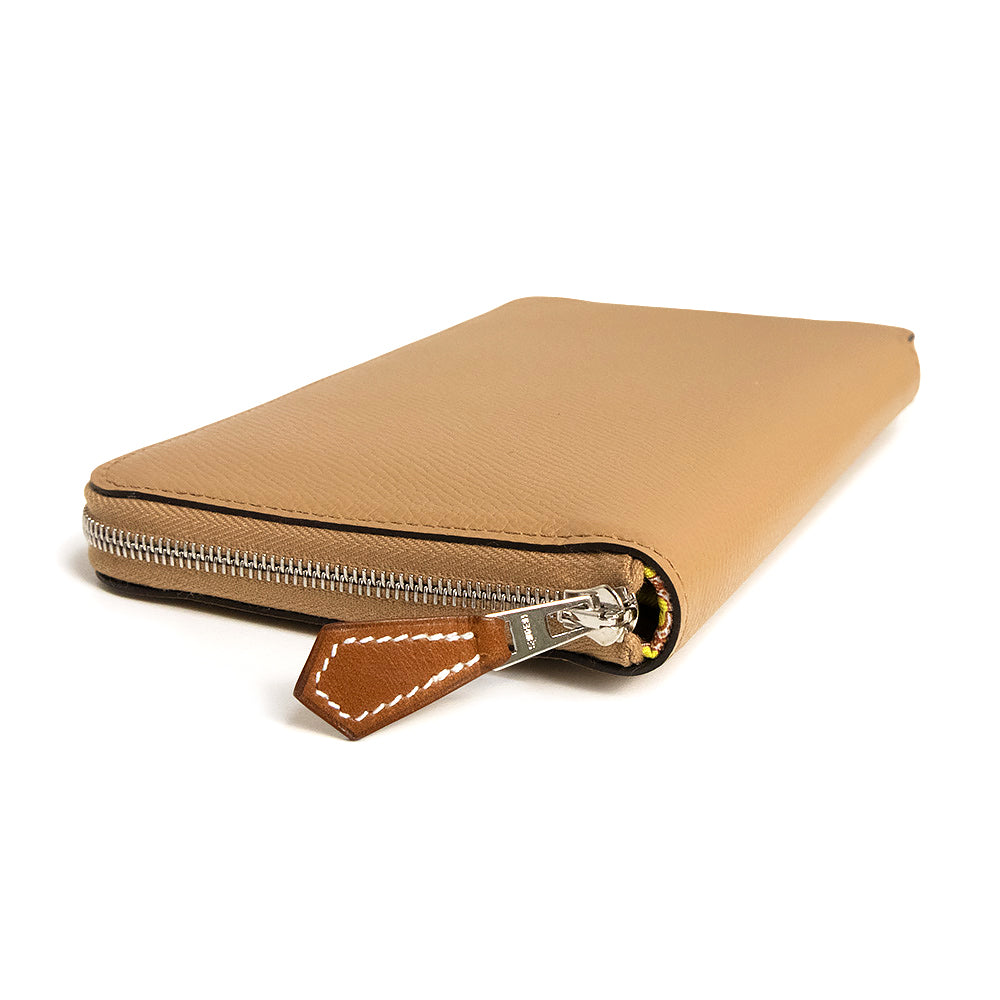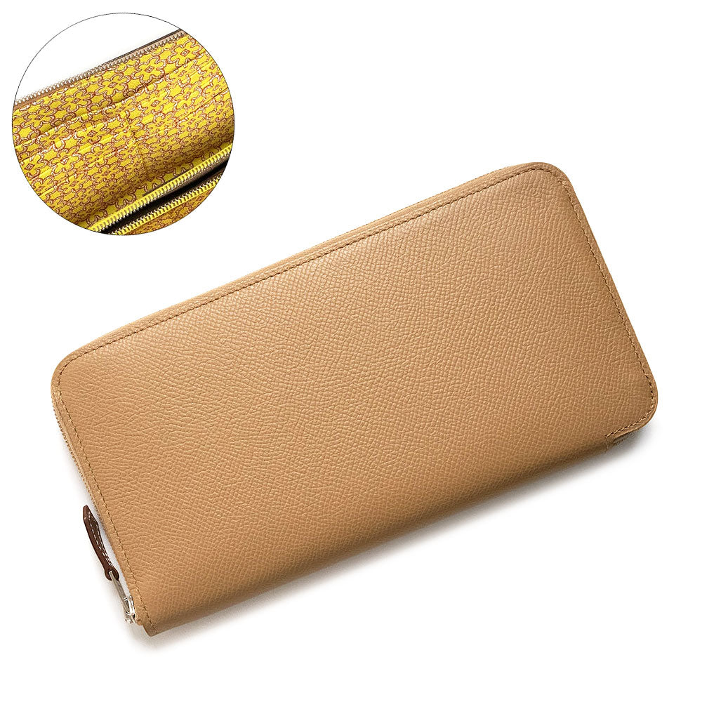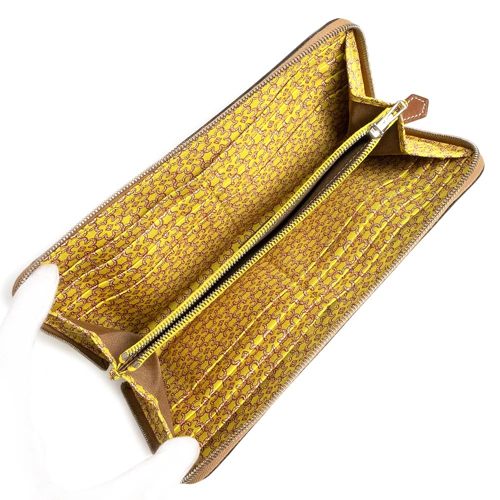 【新品・未使用品】HERMES エルメス アザップロング シルクイン Lucky Daisy ラッキーデイジー ヴォーエプソン レザー シルク チャイ ジョーヌシトロン U刻印 ラウンドファスナー 長財布 シルバー金具 箱付