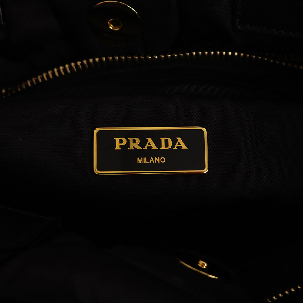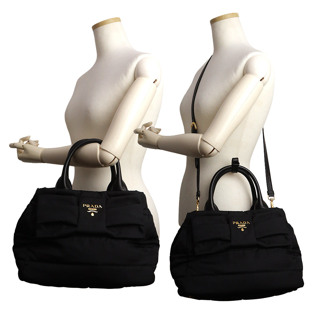 ボリュームあるふくらみのナイロン素材「TESSUTO BOMBER」を使用した、プラダのハンドバッグ。取り外し可能なショルダーストラップが付いており、2Wayでお使い頂ける機能的なバッグです。 |
