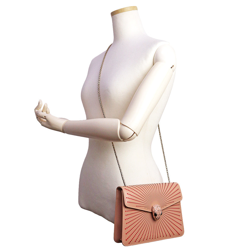 【未使用 展示品】BVLGARI ブルガリ 291762 セルペンティ フォーエバー レザーカット カーフスキン ピンクベージュ チェーン ショルダーバッグ 斜め掛け レザー ゴールド金具