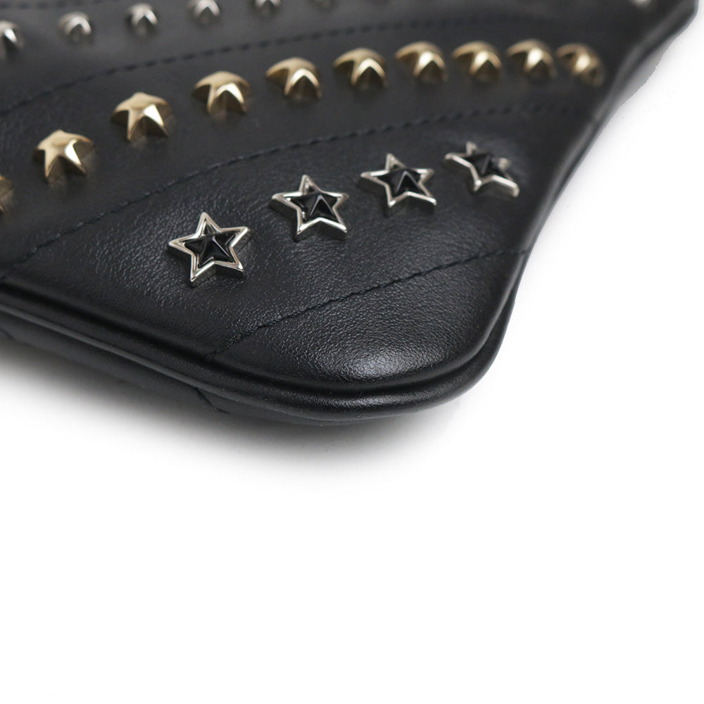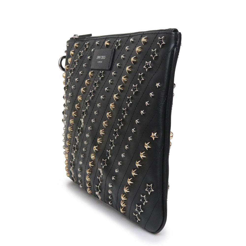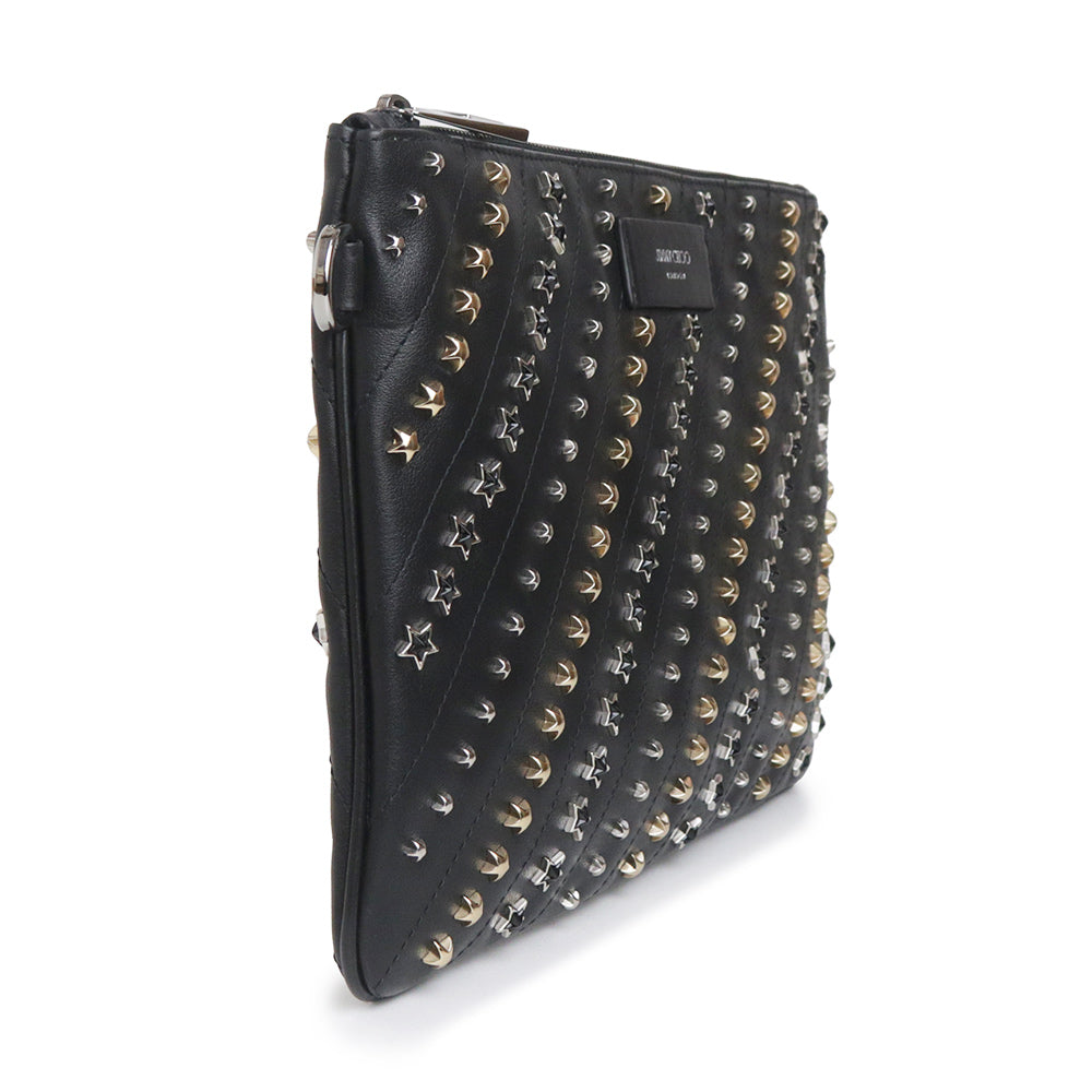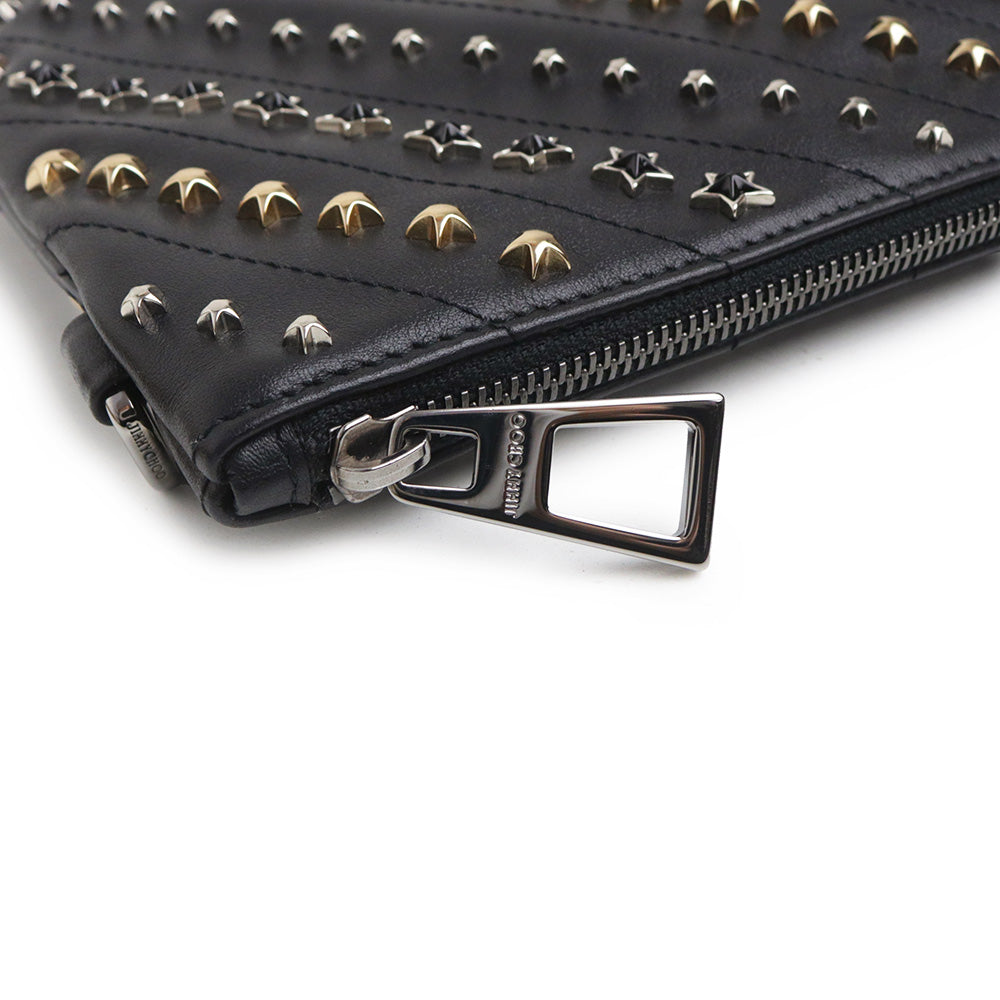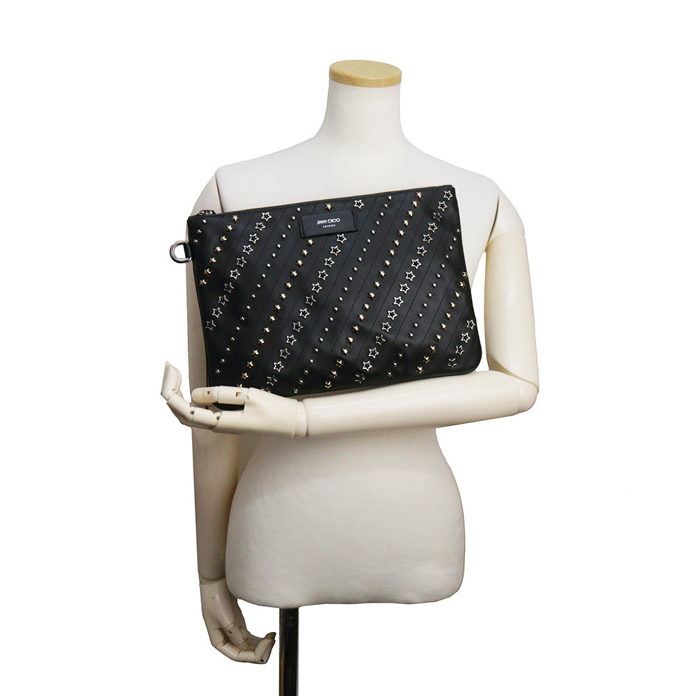 【未使用 展示品】JIMMY CHOO ジミーチュウ スター スタッズ レザー ブラック セカンド クラッチバッグ シルバー金具