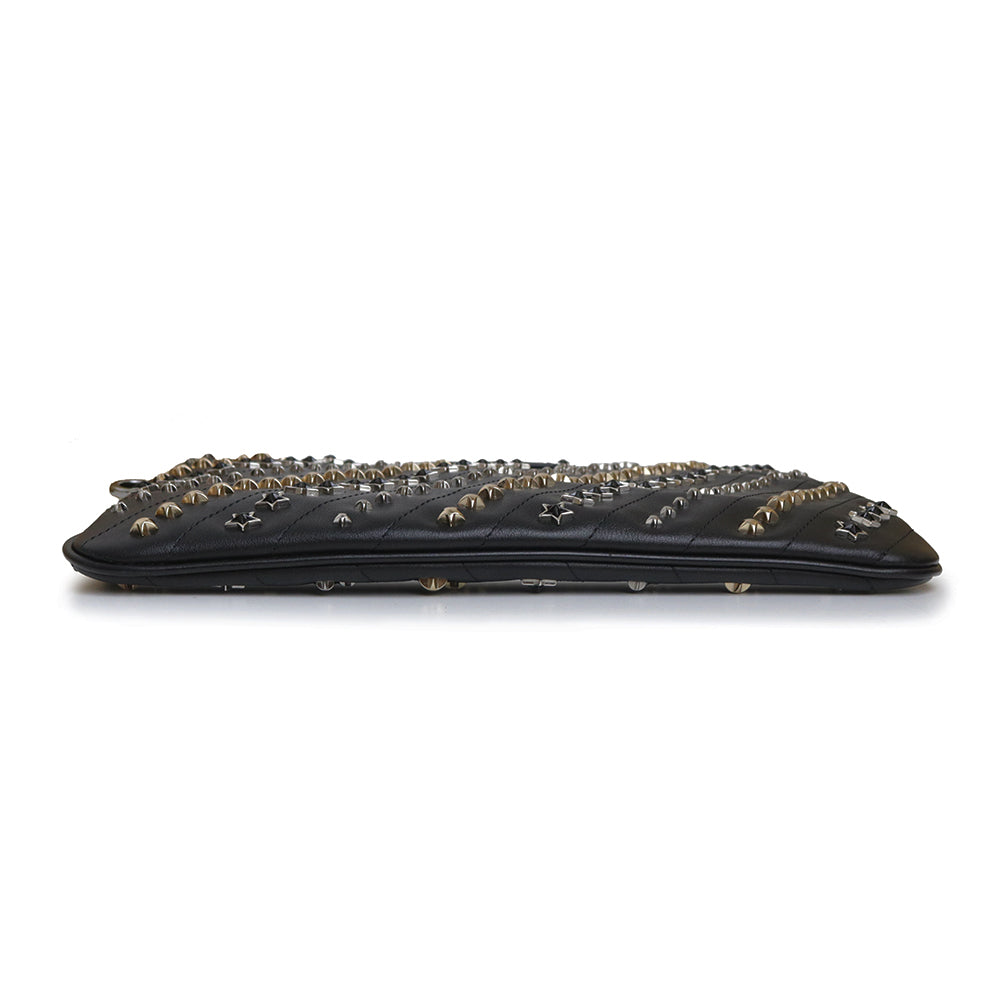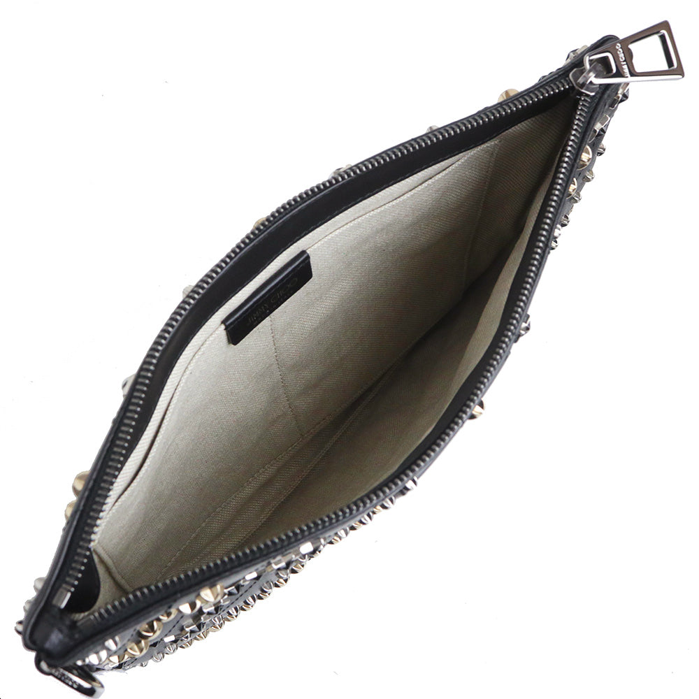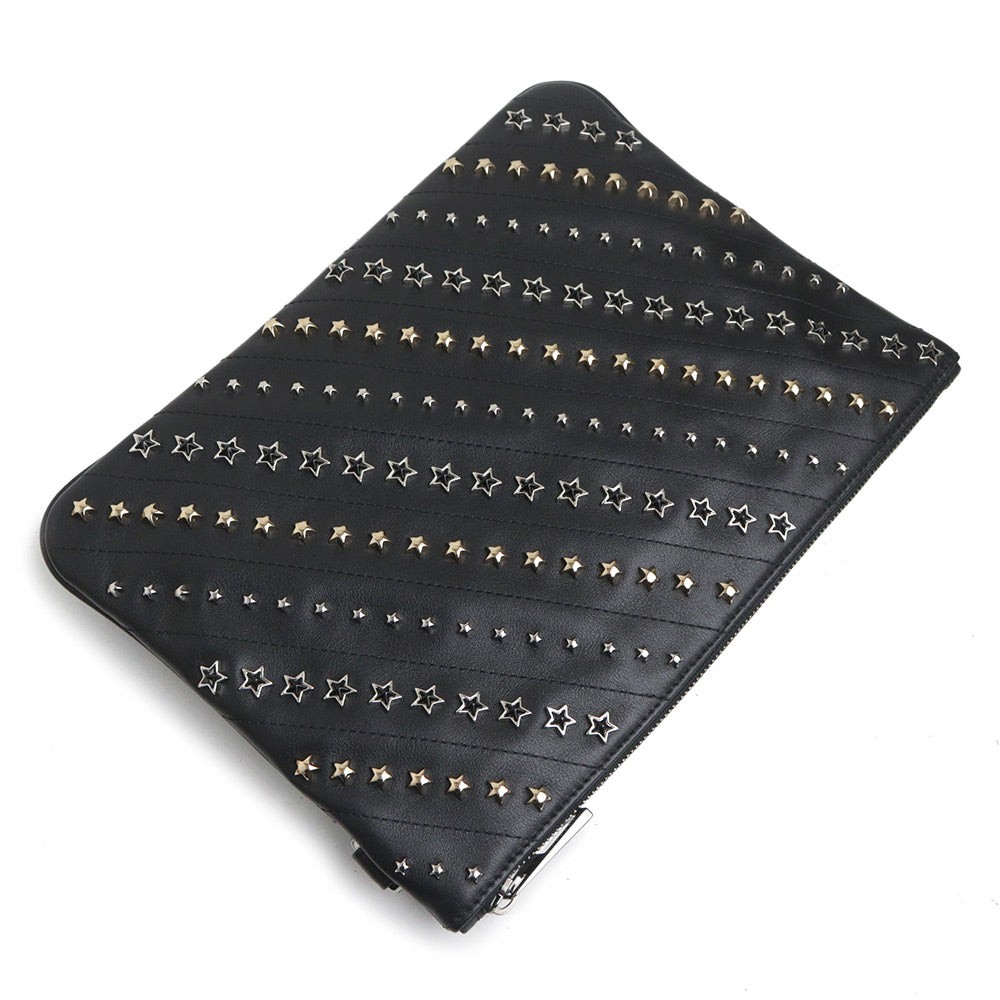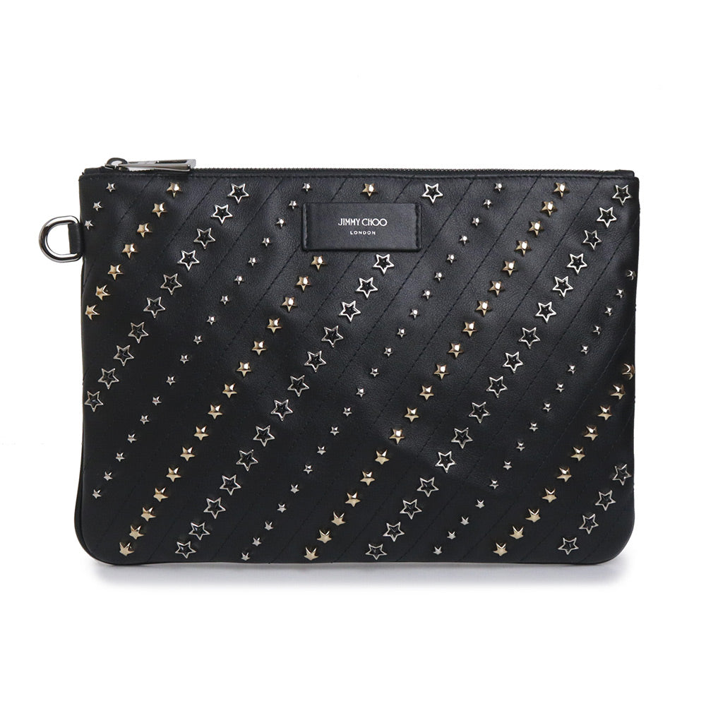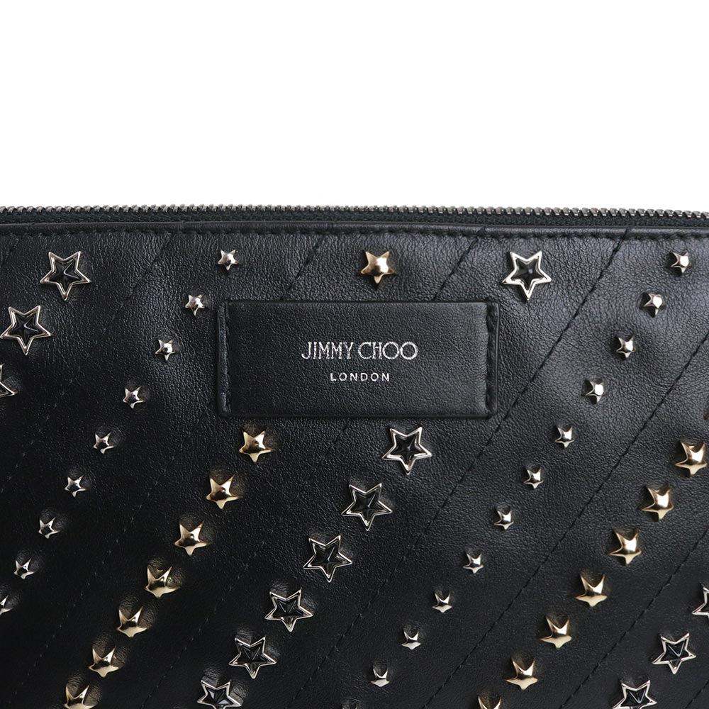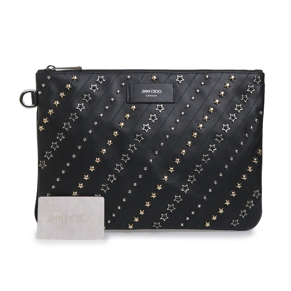 【未使用 展示品】JIMMY CHOO ジミーチュウ スター スタッズ レザー ブラック セカンド クラッチバッグ シルバー金具
