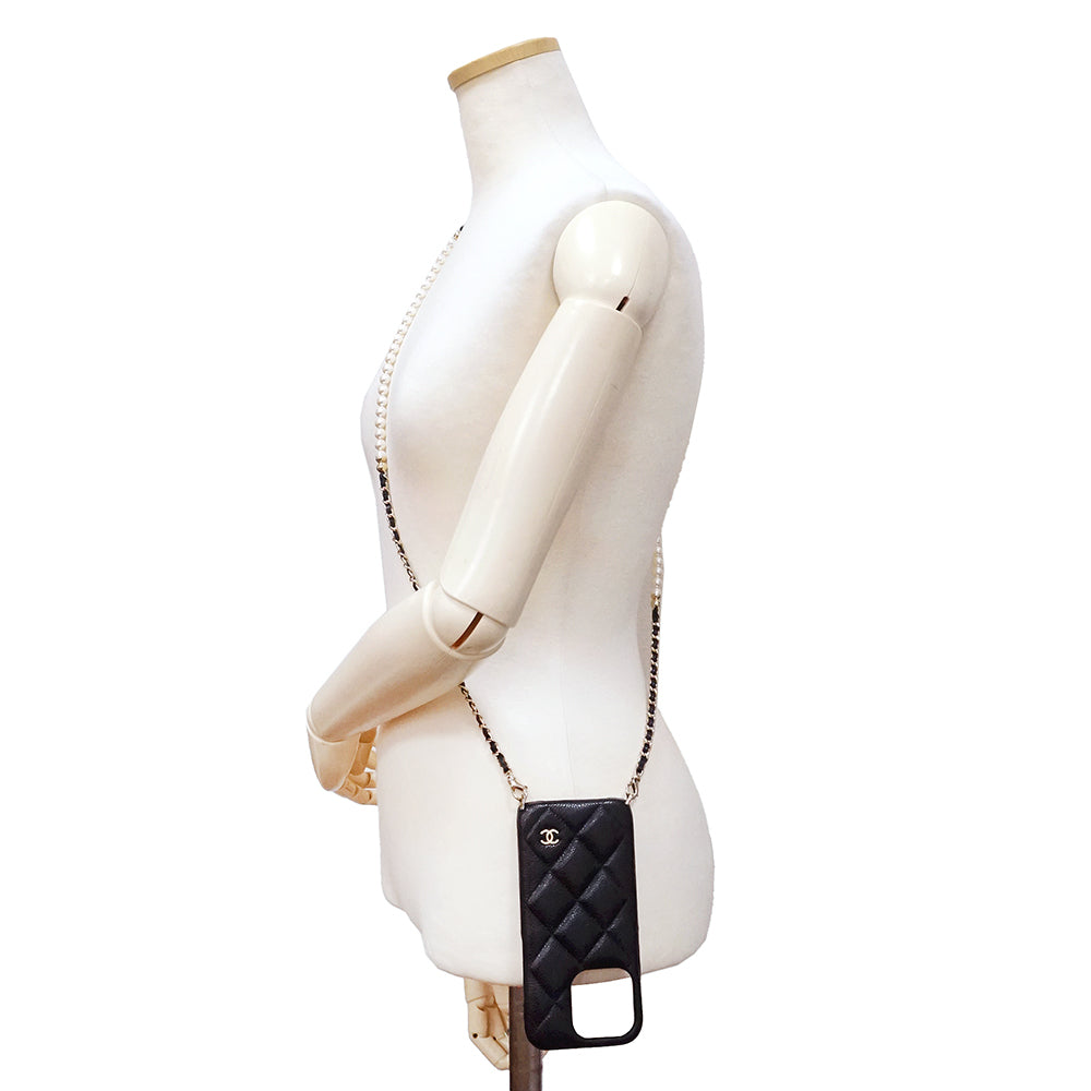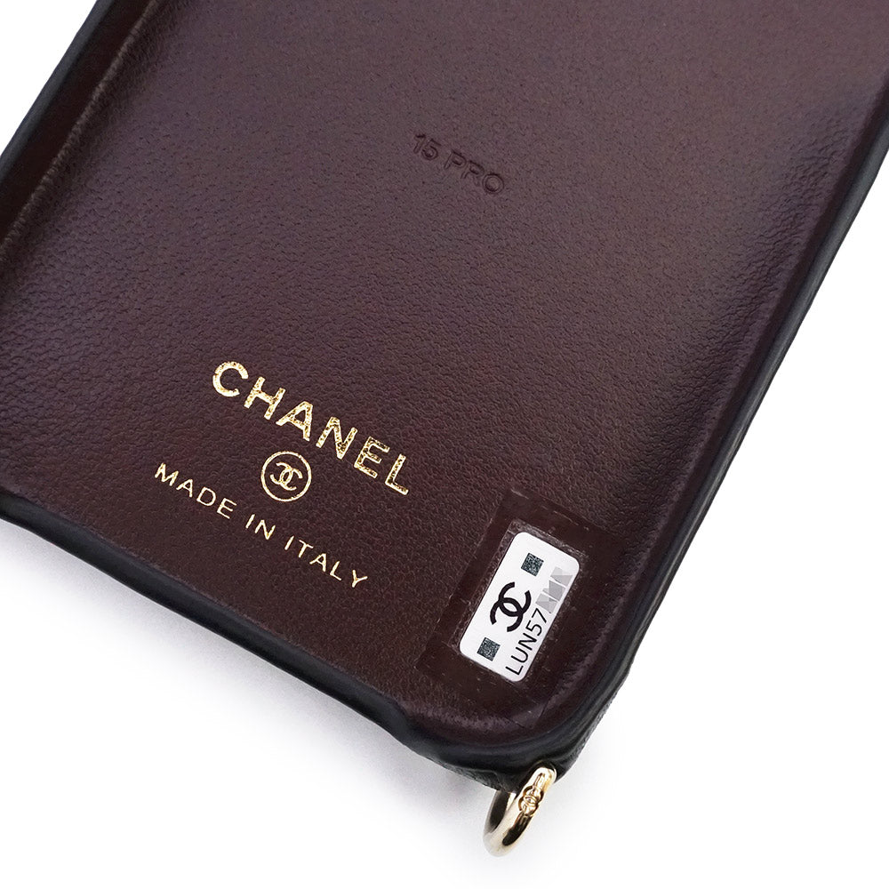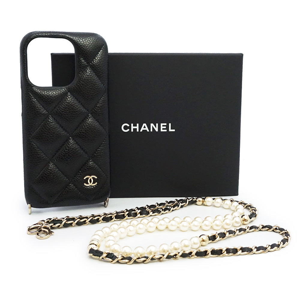 【新品・未使用品】CHANEL シャネル AP4114 マトラッセ パール チェーン ショルダー キャビアスキン ブラック ボルドー 携帯 スマホ スマートフォンケース iPhone 15 Pro レザー ゴールド金具 箱付