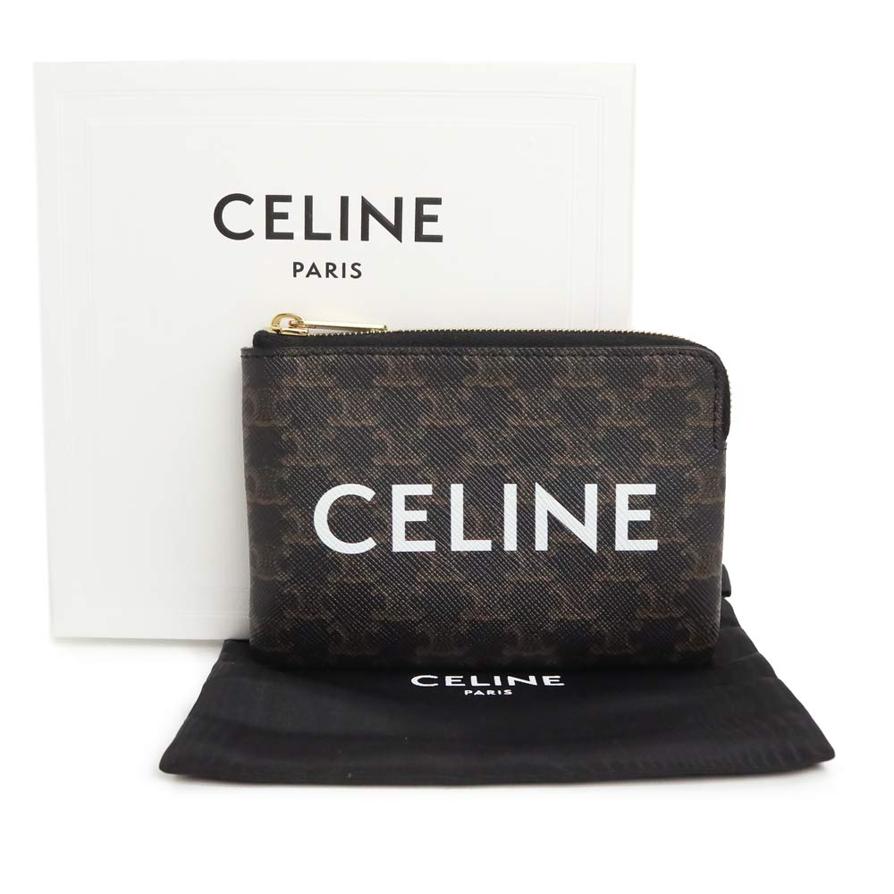 【新品・未使用品】CELINE セリーヌ 10C662CA2 コイン&カードポーチ トリオンフキャンバス ブラック フック付き コインケース 小銭入れ 財布 ゴールド金具 箱付