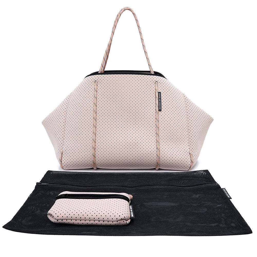 【美品】STATE OF ESCAPE ステートオブエスケープ 9911100101 エスケープ トート ネオプレン ブラッシュ ベージュ 2Way ショルダー トート ハンドバッグ 斜め掛け シルバー金具