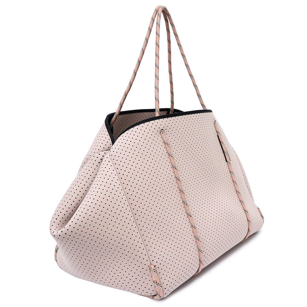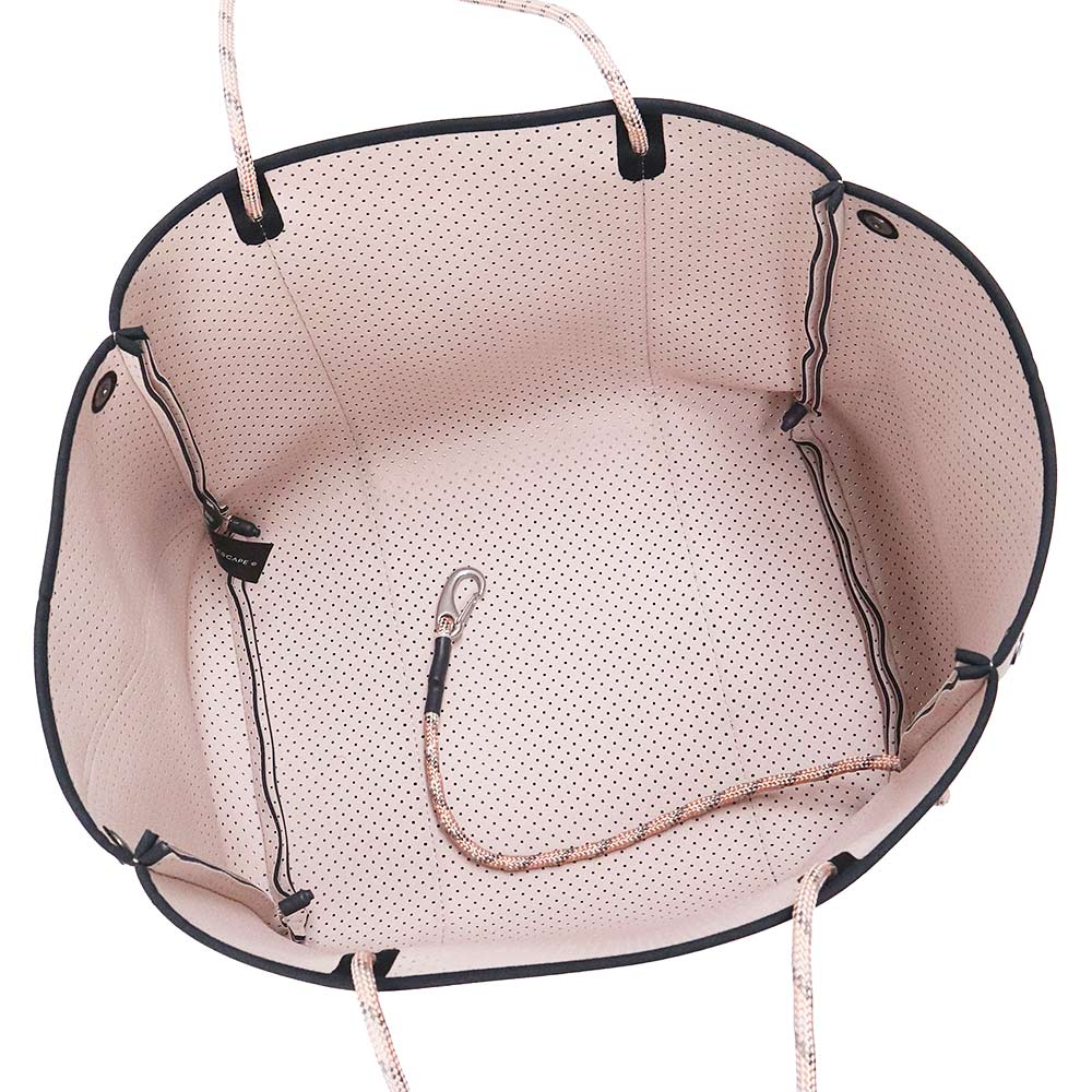 トレンドに左右されない、エレガントな佇まいが印象的な「エスケープ トート」。ウェットスーツにも使われる柔らかで耐久性のあるネオプレン素材のバッグです。付属のメッシュケースは収納に使ったり、バッグを入れて洗濯する事もできます。サイドのスナップボタンで、バッグの形状をコンパクトに調節可能です。 |