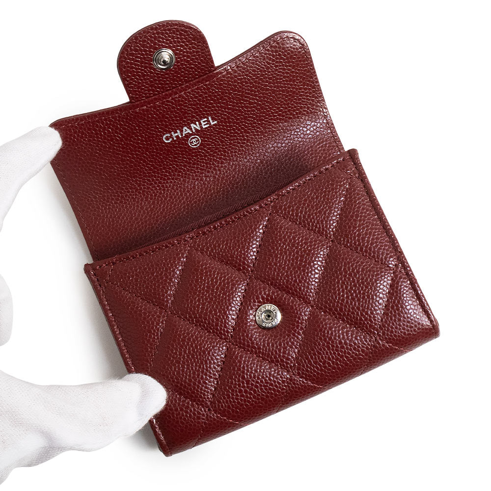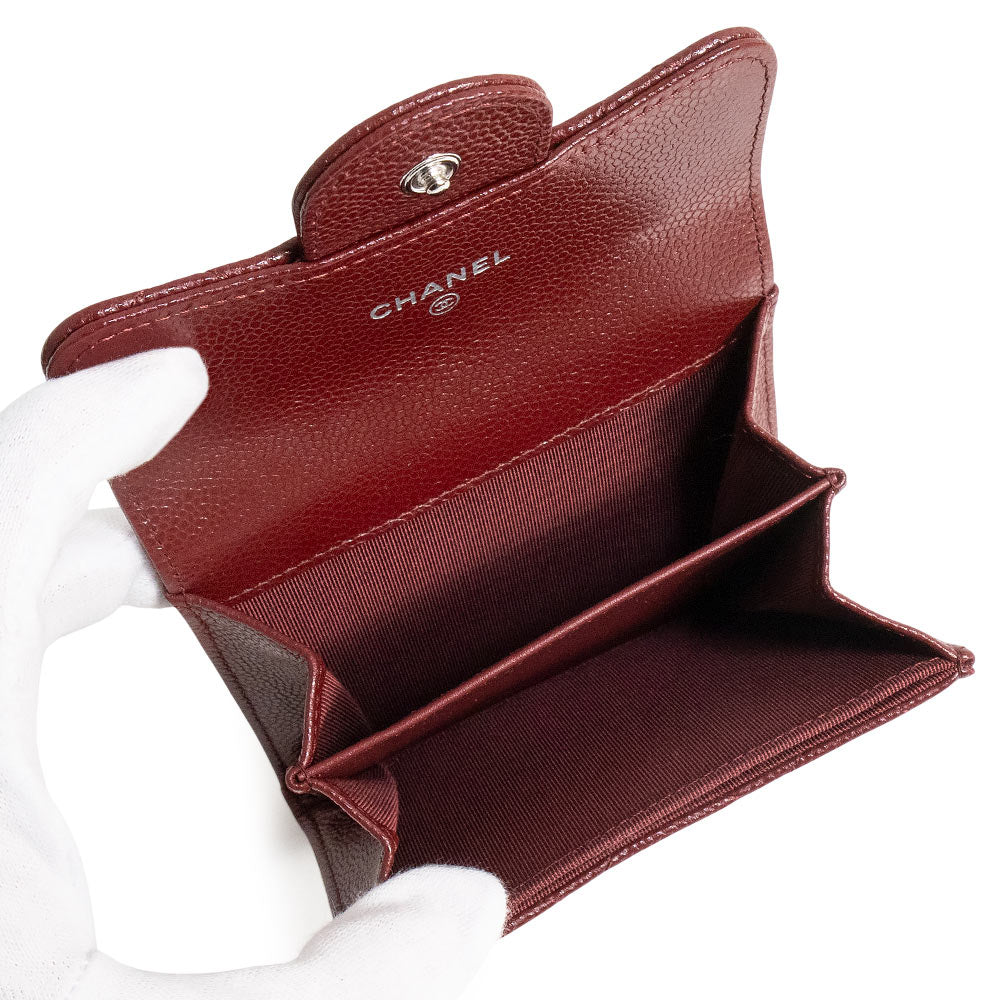【新品・未使用品】CHANEL シャネル AP0220 クラシック フラップ カードケース キャビアスキン ボルドー コインケース 小銭入れ 財布 レザー シルバー金具 箱付