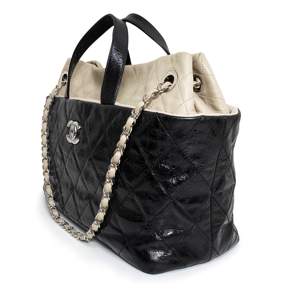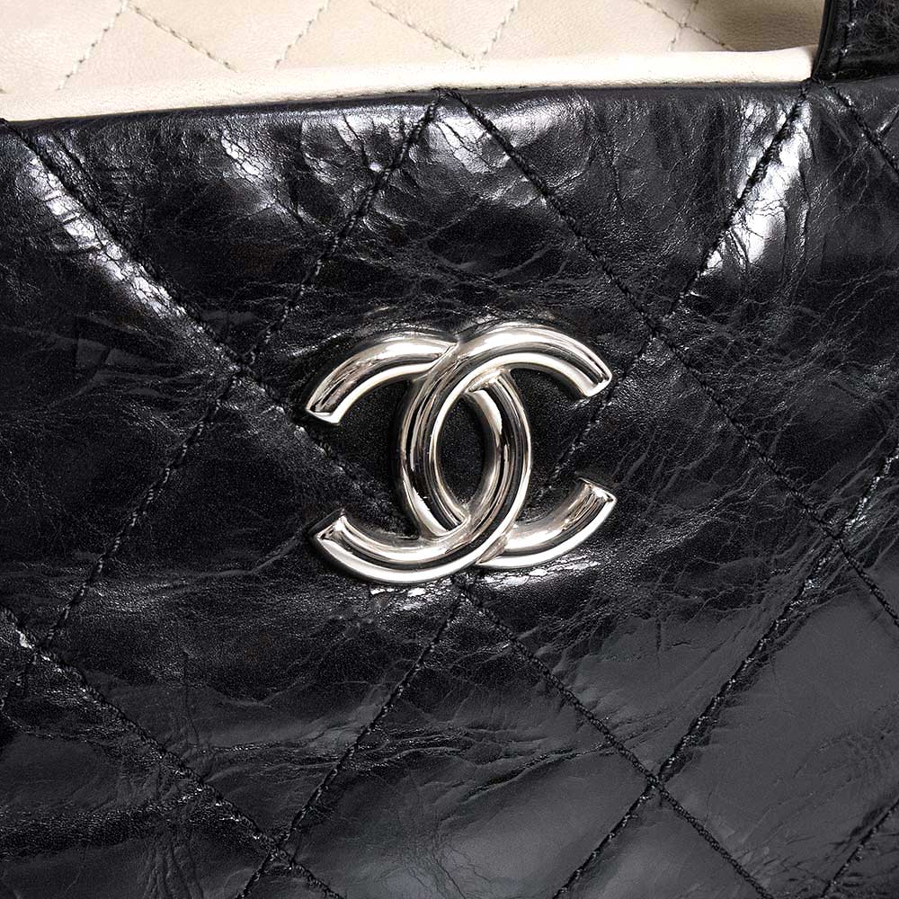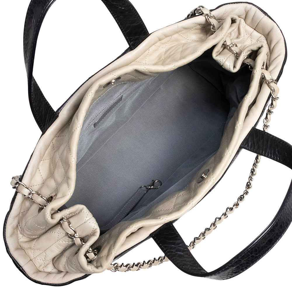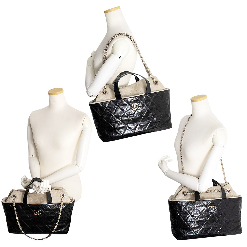 【中古】CHANEL シャネル ポートベロー エイジドカーフスキン ラムスキン レザー ブラック ベージュ チェーン 3Way ショルダー ハンドバッグ 斜め掛け シルバー金具