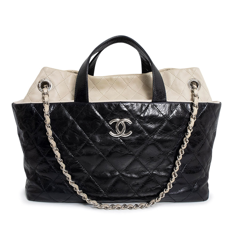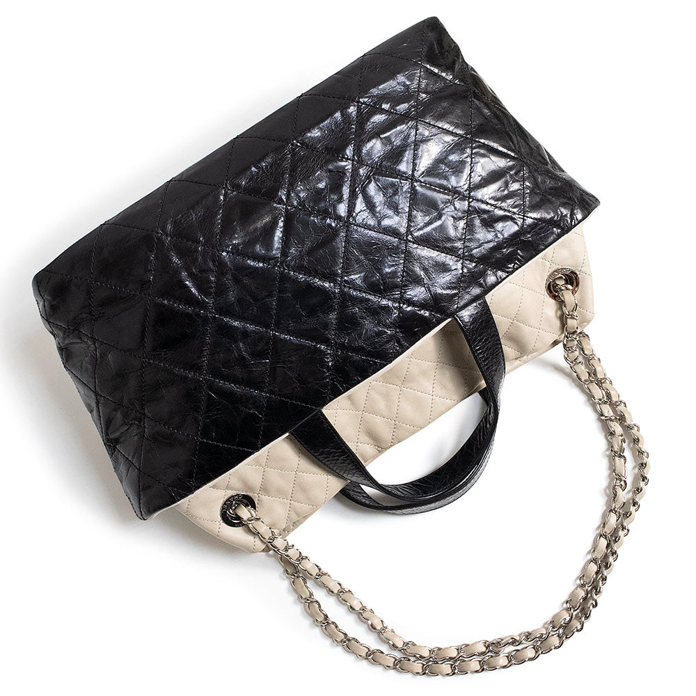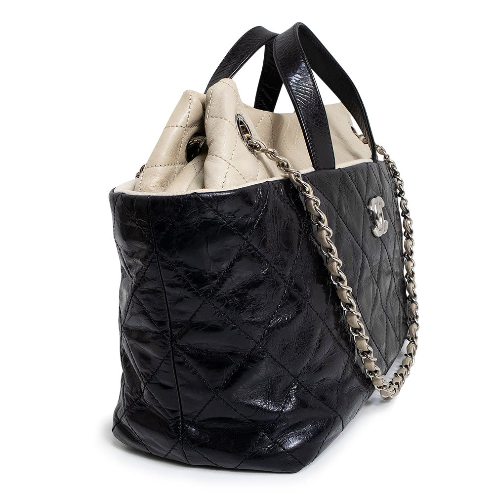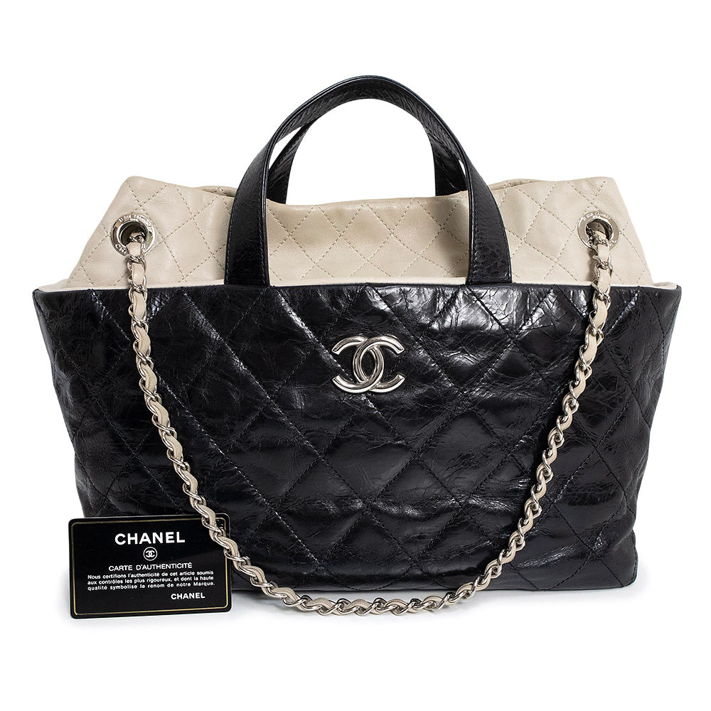 【中古】CHANEL シャネル ポートベロー エイジドカーフスキン ラムスキン レザー ブラック ベージュ チェーン 3Way ショルダー ハンドバッグ 斜め掛け シルバー金具