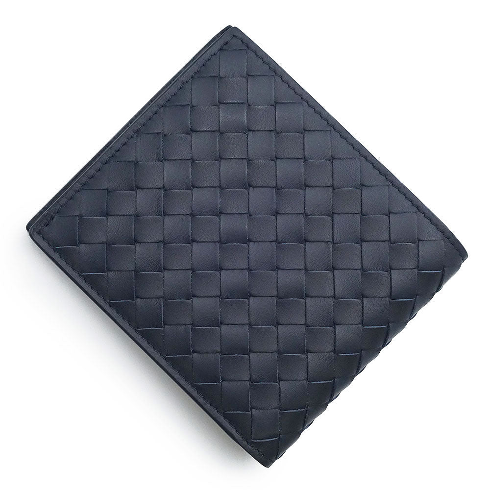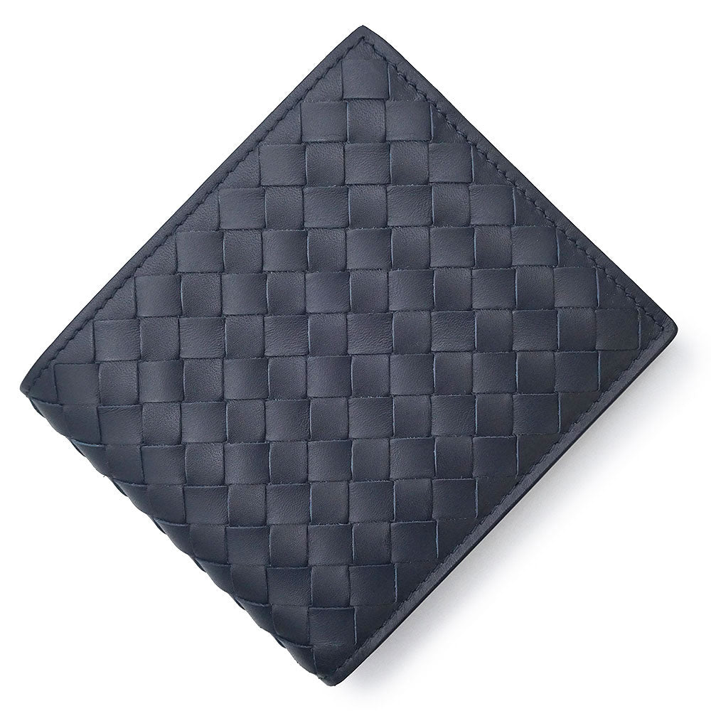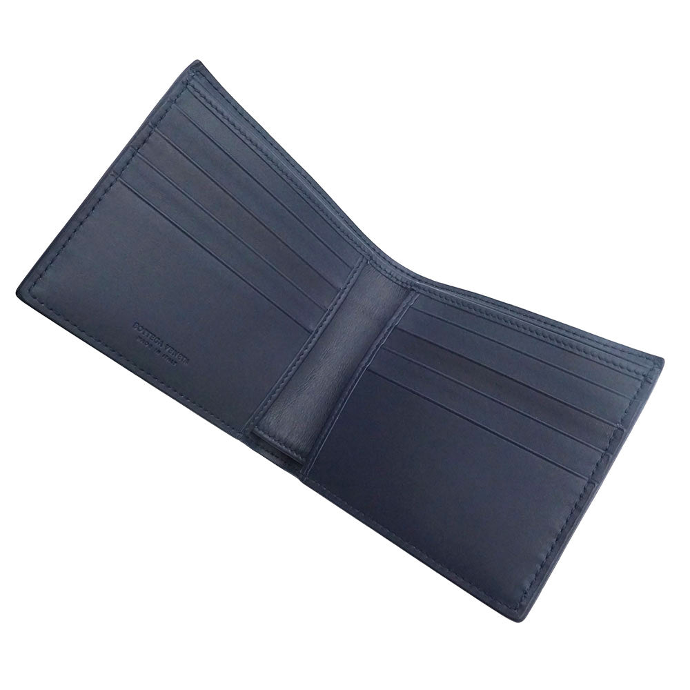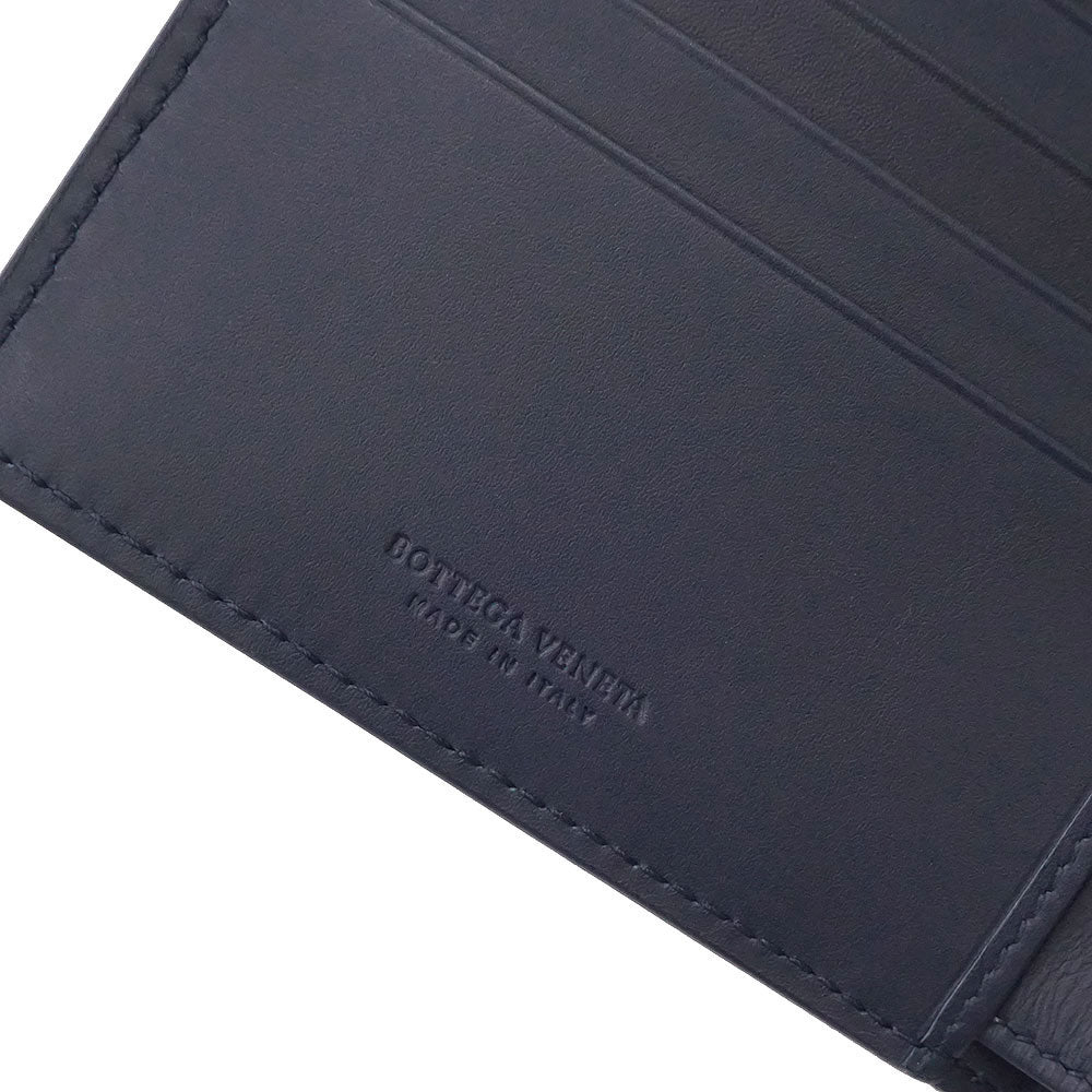 【未使用 展示品】BOTTEGA VENETA ボッテガヴェネタ 196207 イントレチャート カーフスキン ライトトルマリン ネイビー 札入れ 二つ折り財布 レザー
