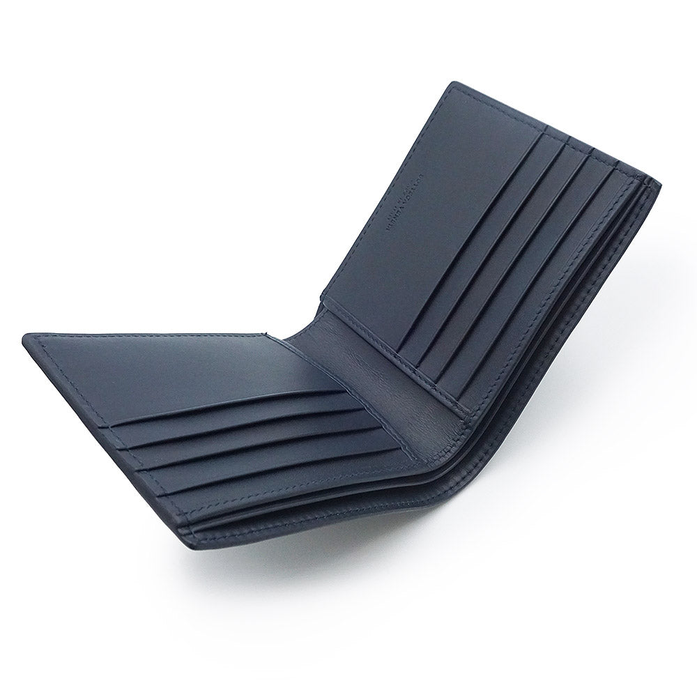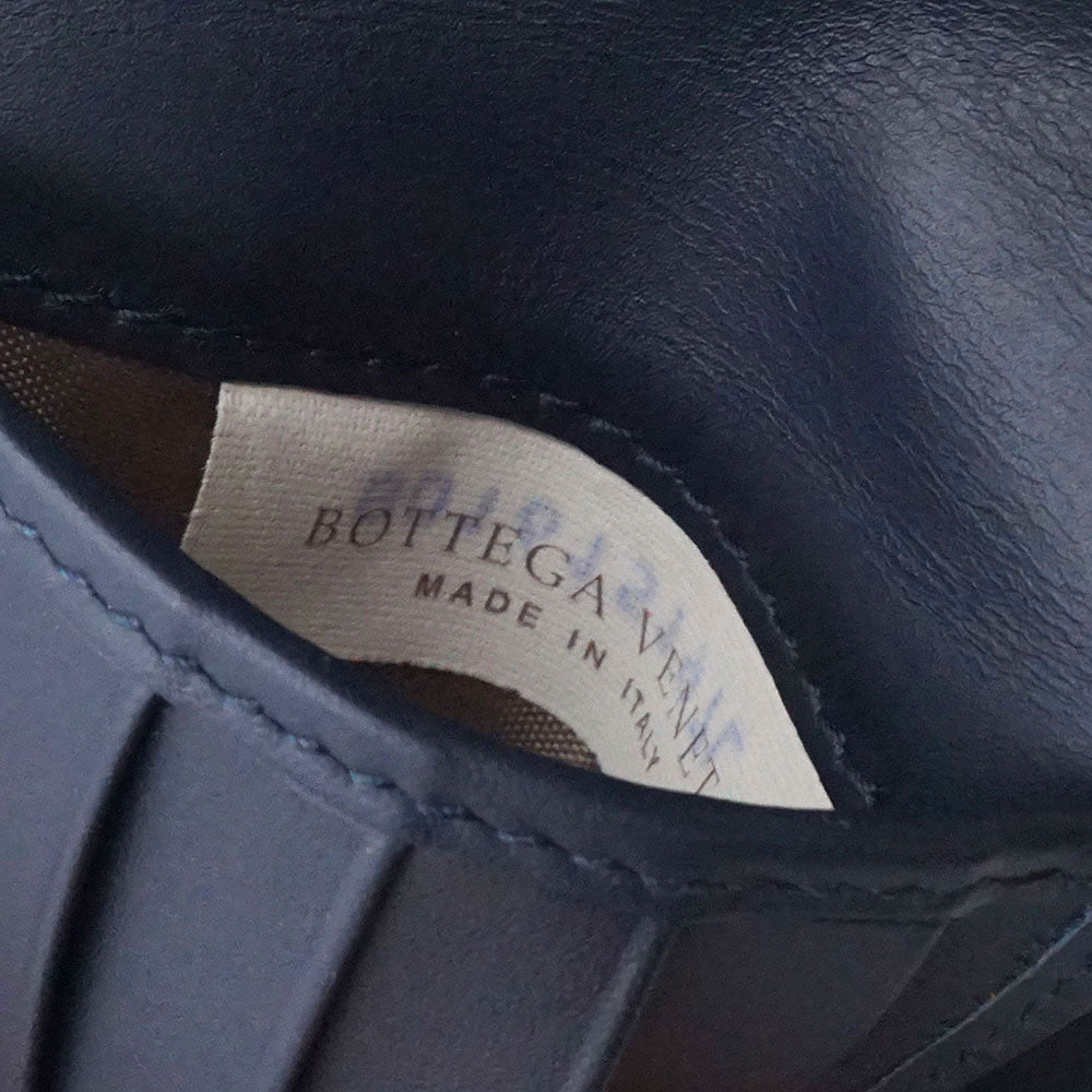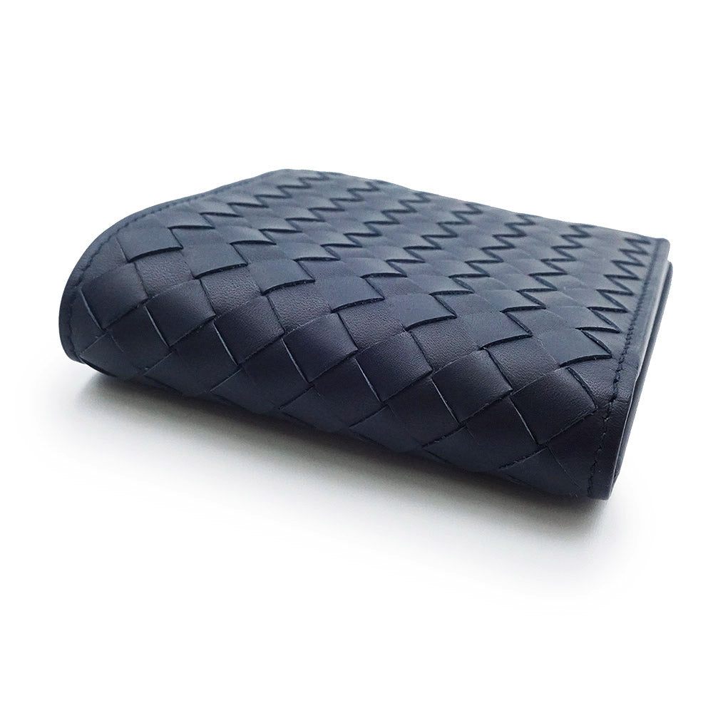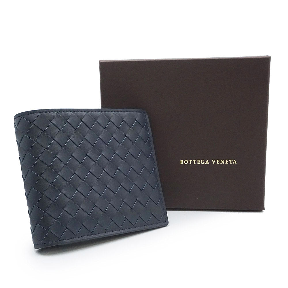 【未使用 展示品】BOTTEGA VENETA ボッテガヴェネタ 196207 イントレチャート カーフスキン ライトトルマリン ネイビー 札入れ 二つ折り財布 レザー