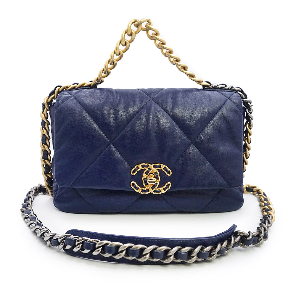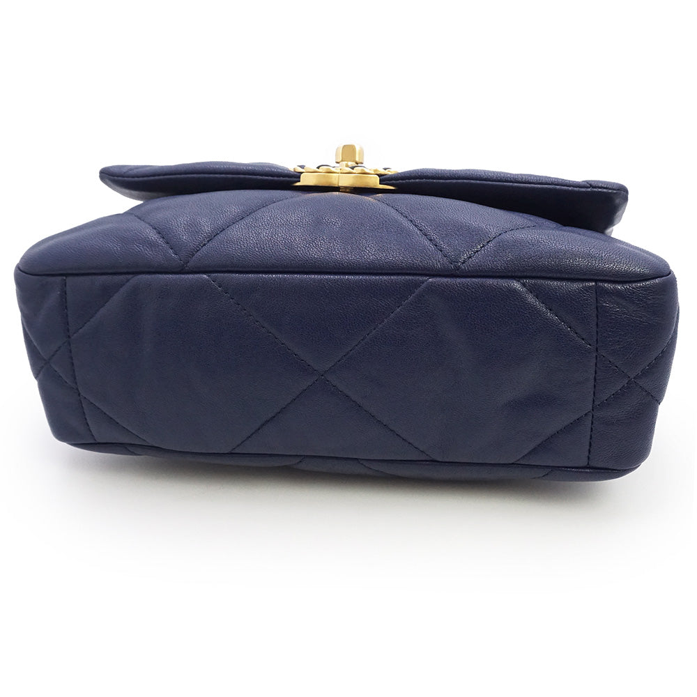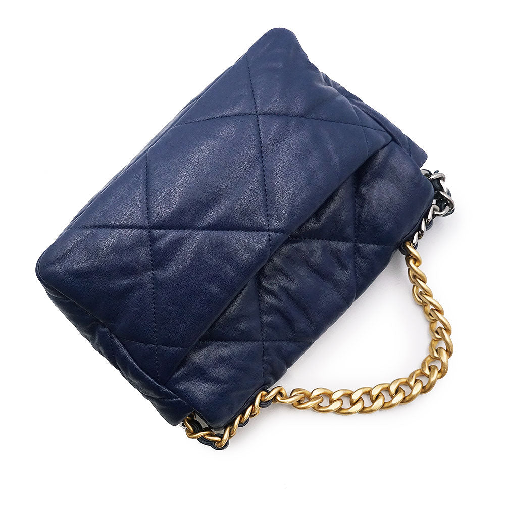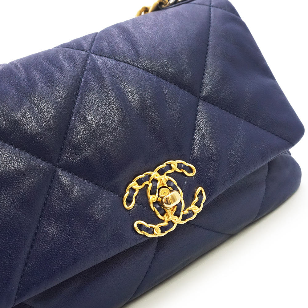 【美品】CHANEL シャネル AS1160 CHANEL19 ナインティーン シャイニーラムスキン ネイビーブルー 2Way 斜め掛け チェーン ショルダー ハンドバッグ アンティークゴールド金具