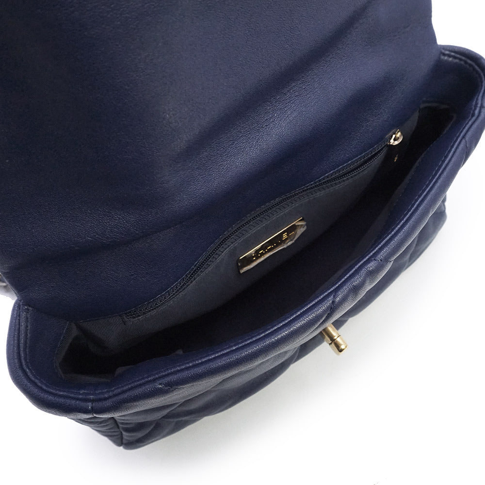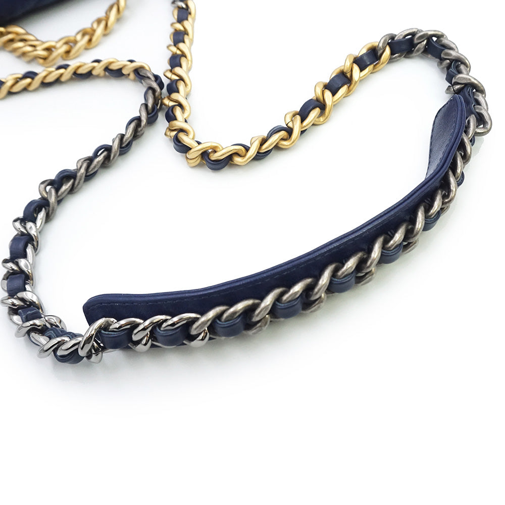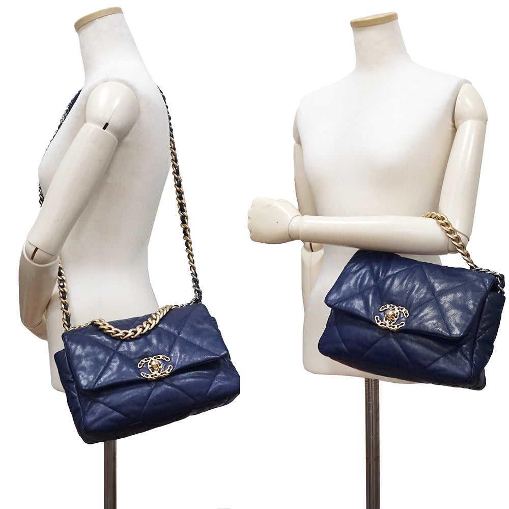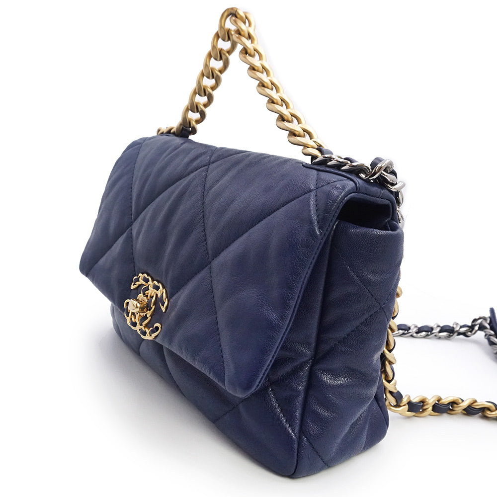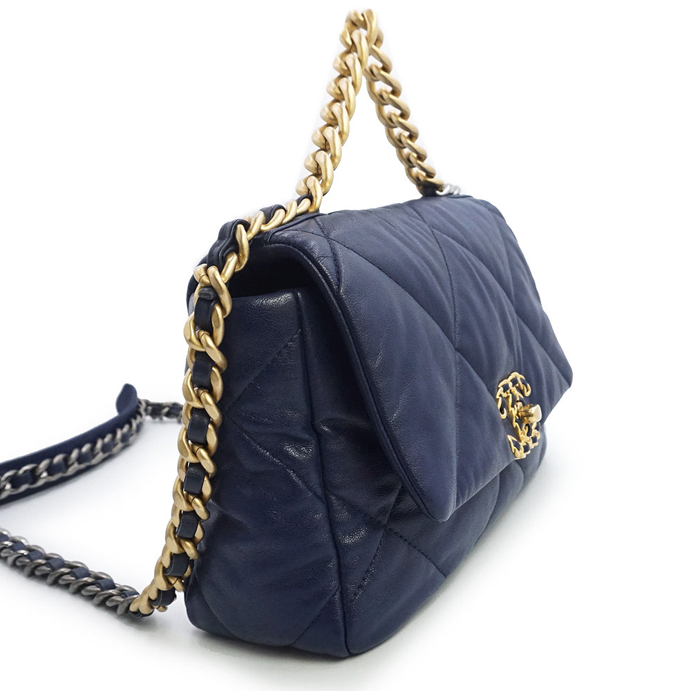 【美品】CHANEL シャネル AS1160 CHANEL19 ナインティーン シャイニーラムスキン ネイビーブルー 2Way 斜め掛け チェーン ショルダー ハンドバッグ アンティークゴールド金具