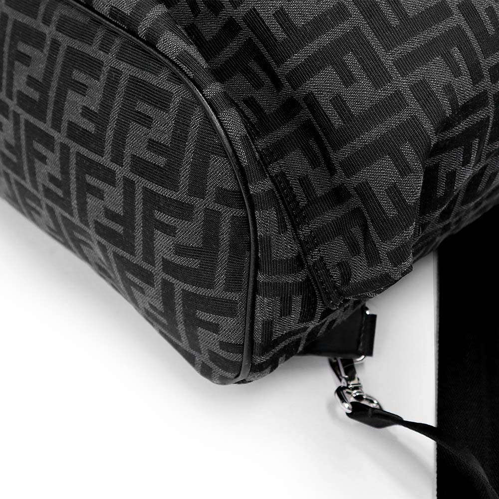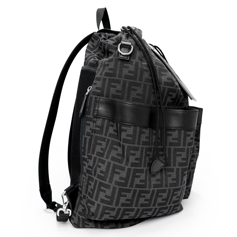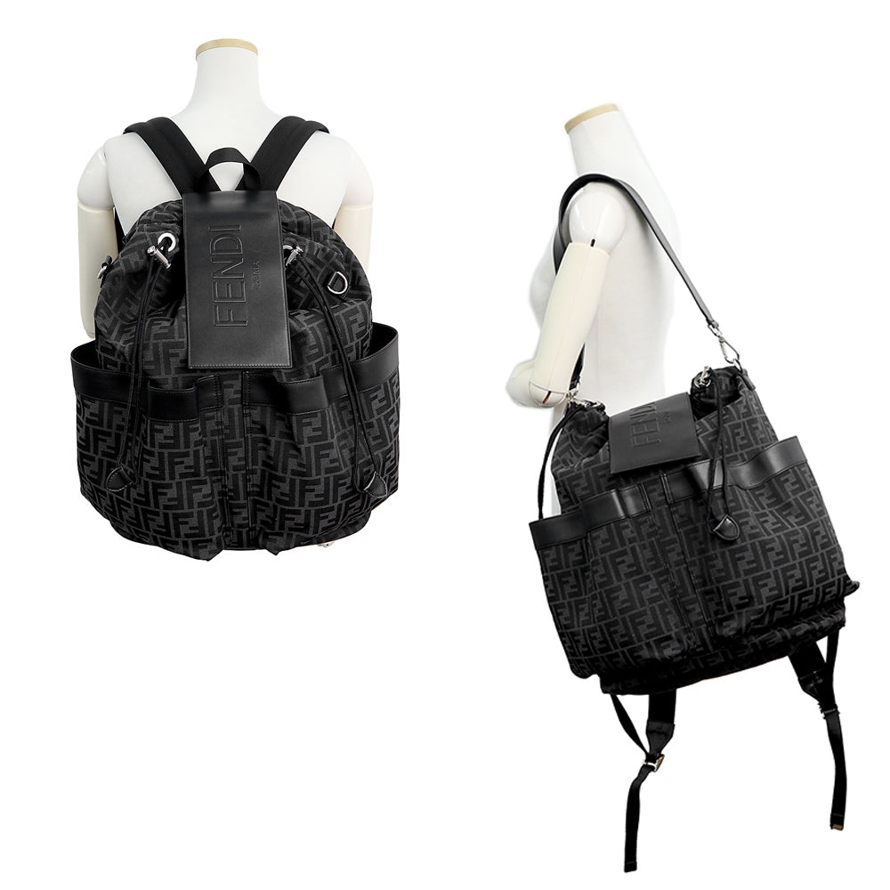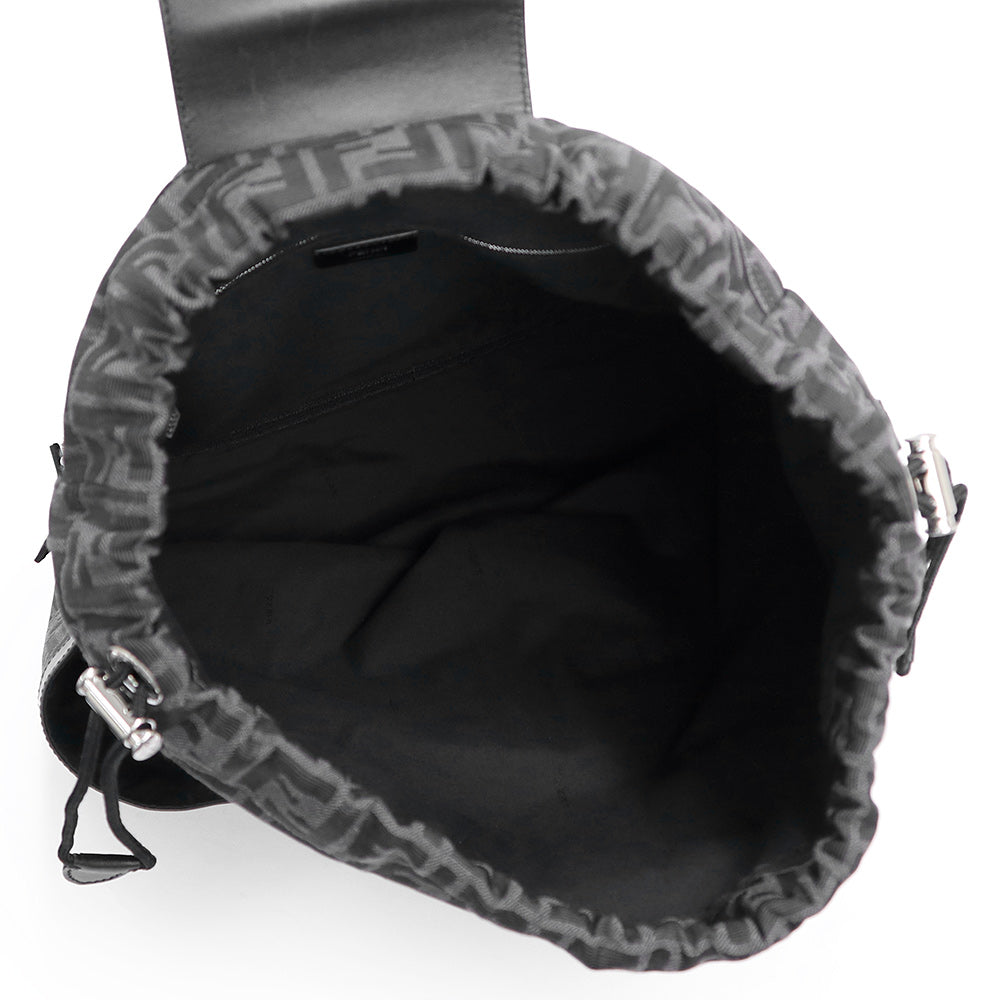 【美品】FENDI フェンディ 7VZ070 ストライク ミディアム ジャカードFF ファブリック カーフスキン ブラック グレー 2WAY リュック デイ バックパック レザー シルバー金具