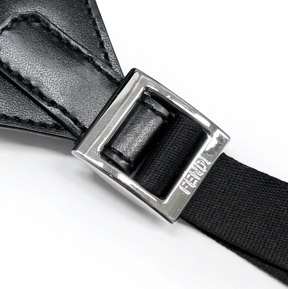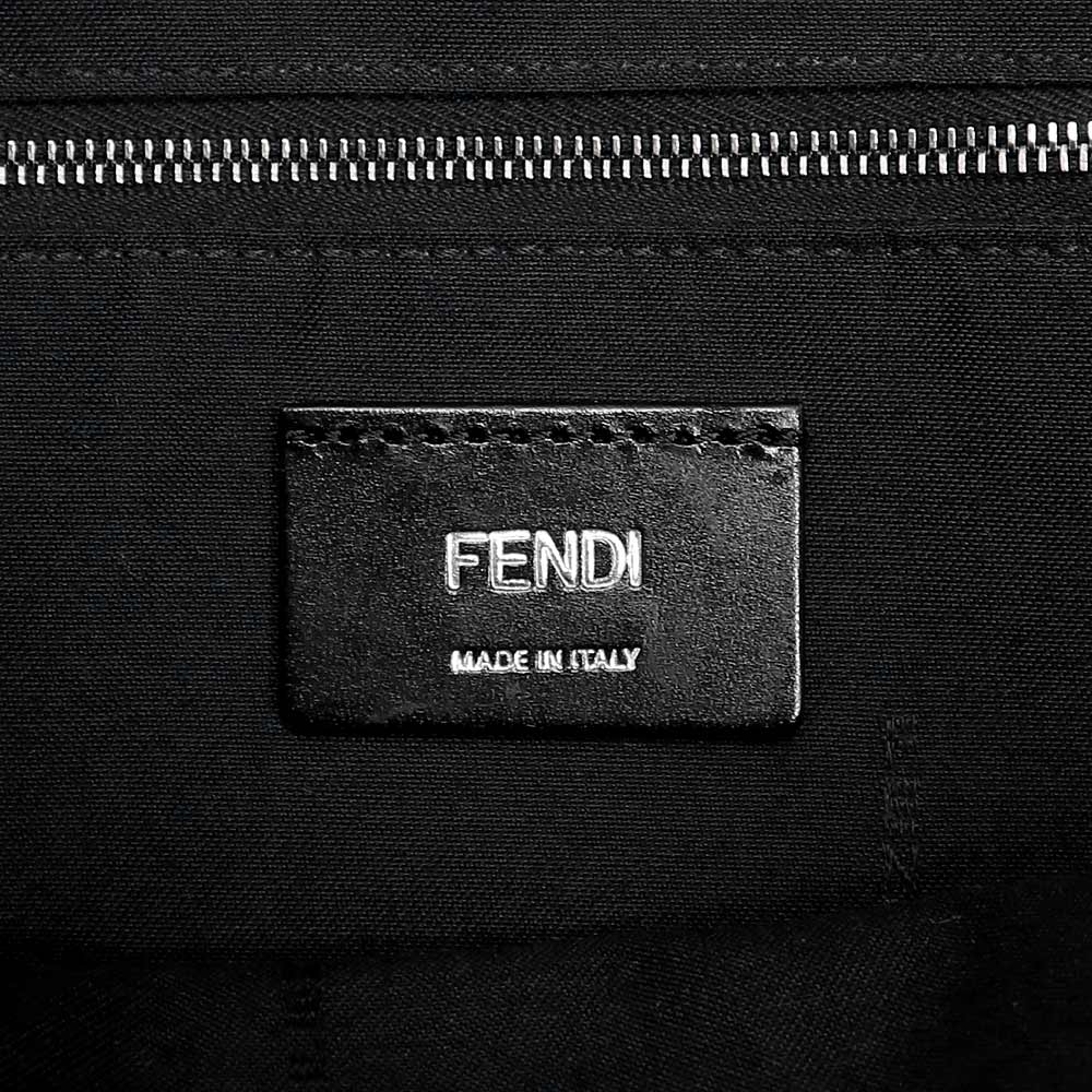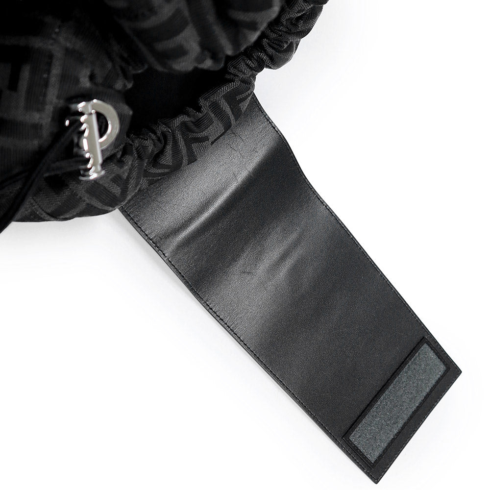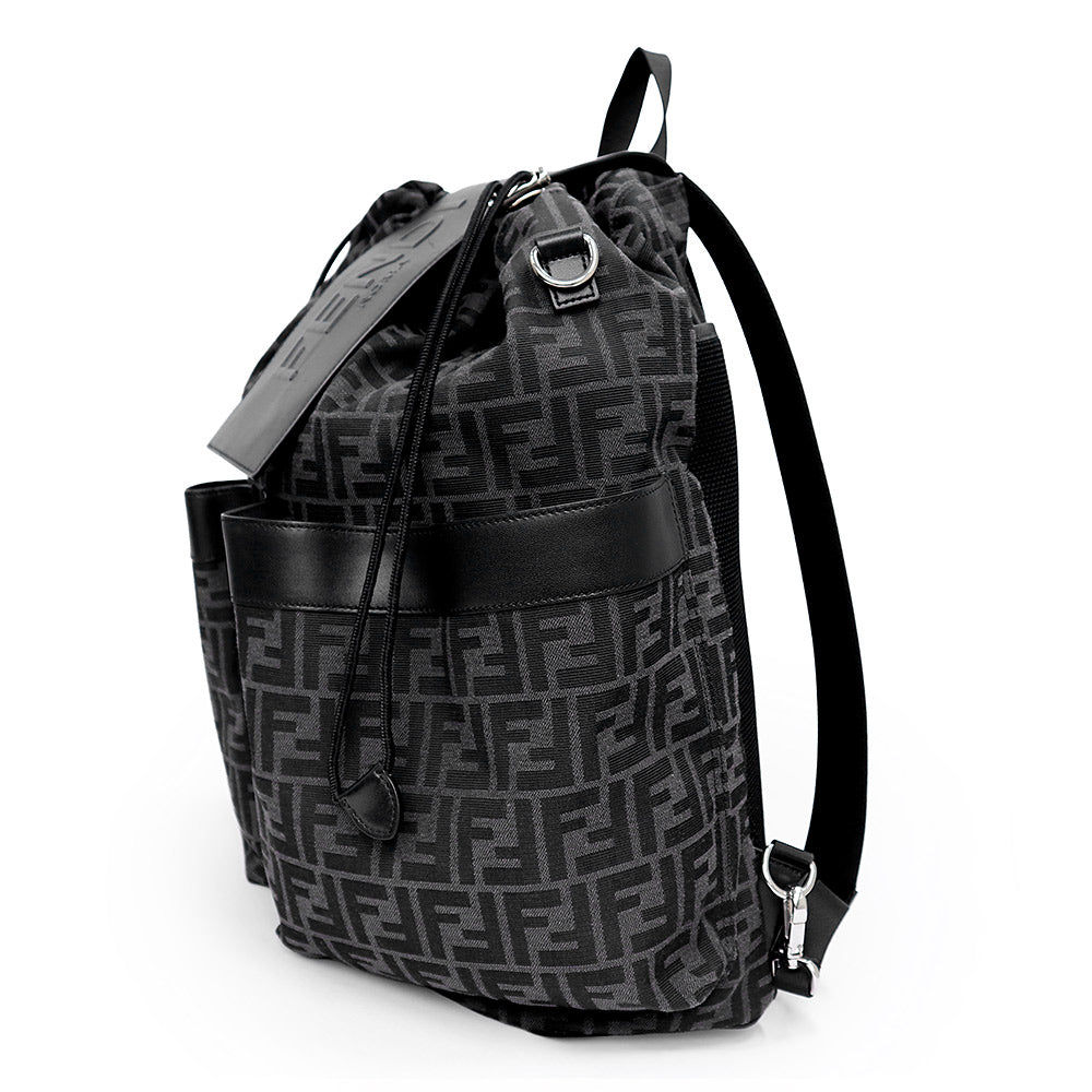 【美品】FENDI フェンディ 7VZ070 ストライク ミディアム ジャカードFF ファブリック カーフスキン ブラック グレー 2WAY リュック デイ バックパック レザー シルバー金具