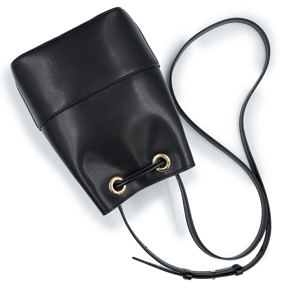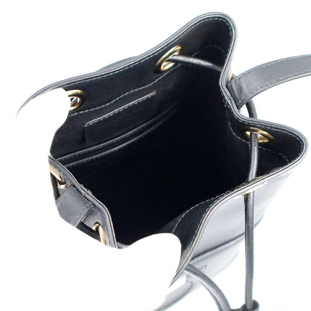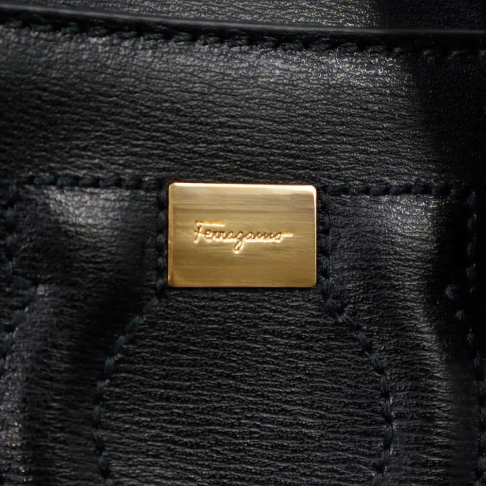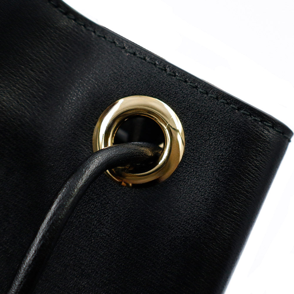 【美品】Salvatore Ferragamo サルヴァトーレフェラガモ AU-21H484 ガンチーニ ミニ バケット カーフスキン ネロ ブラック ドローストリング ショルダーバッグ 巾着 斜め掛け レザー ゴールド金具