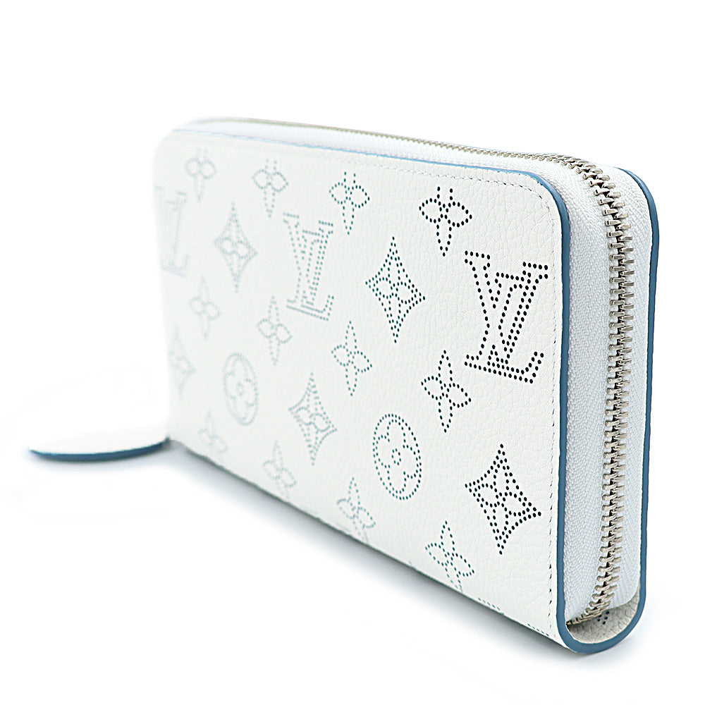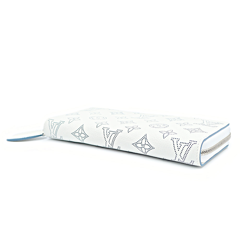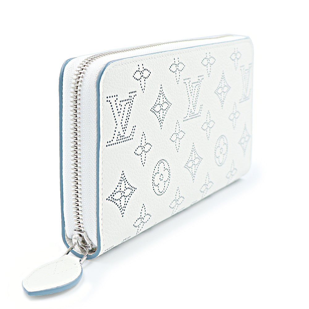 パンチングで彩られたモノグラム柄が特徴のマヒナ・レザーが使われたルイ ヴィトンの「ジッピーウォレット」です。しなやかで柔らかい手触りが魅力でオーソドックスな使い勝手の良い機能性が魅力です。スマートフォンなどが入る小さなクラッチバッグとしてもお使いいただくことが出来るサイズです。雪のような白いレザーと内部の爽やかな青いレザーとの対比がとても美しく目を引く長財布です。 |