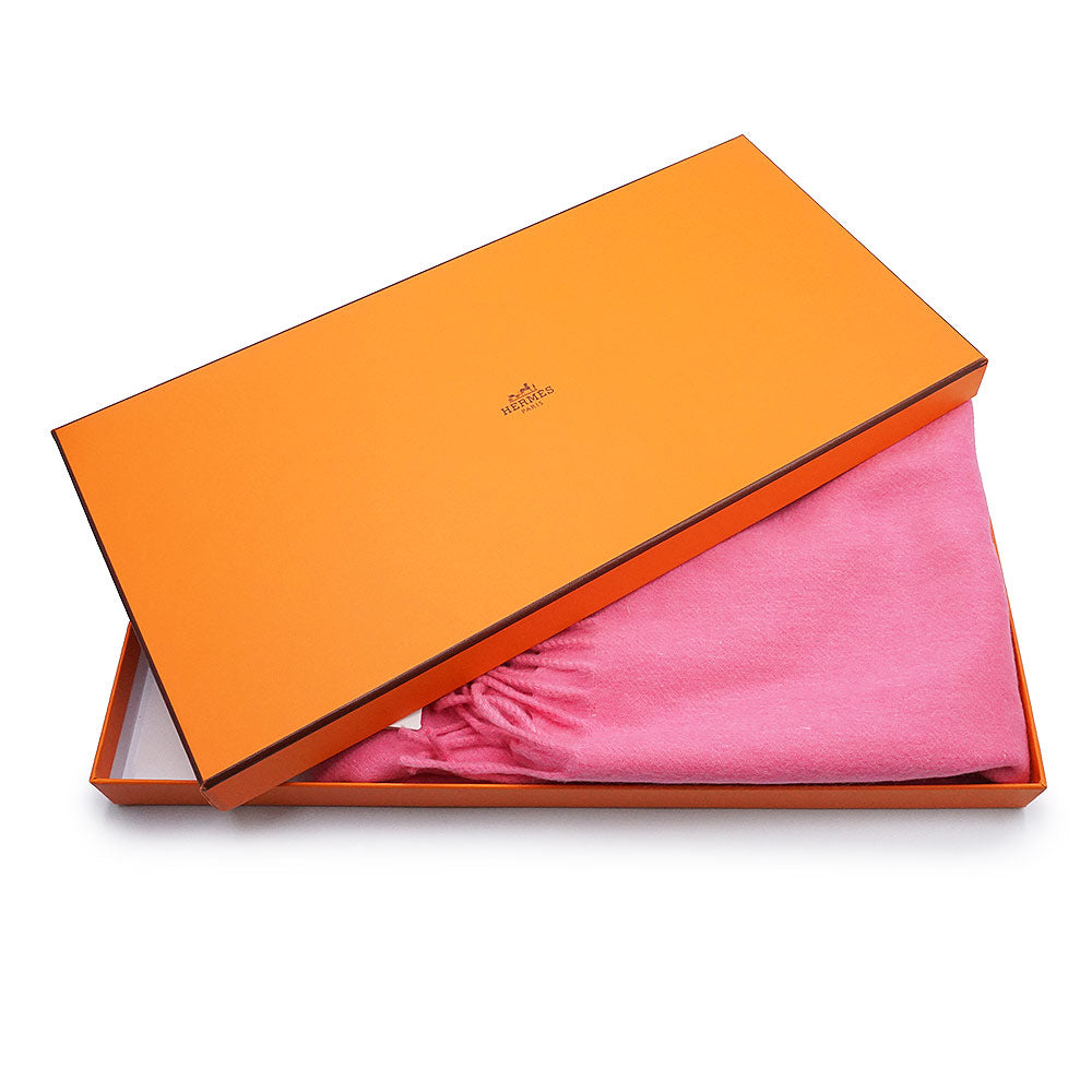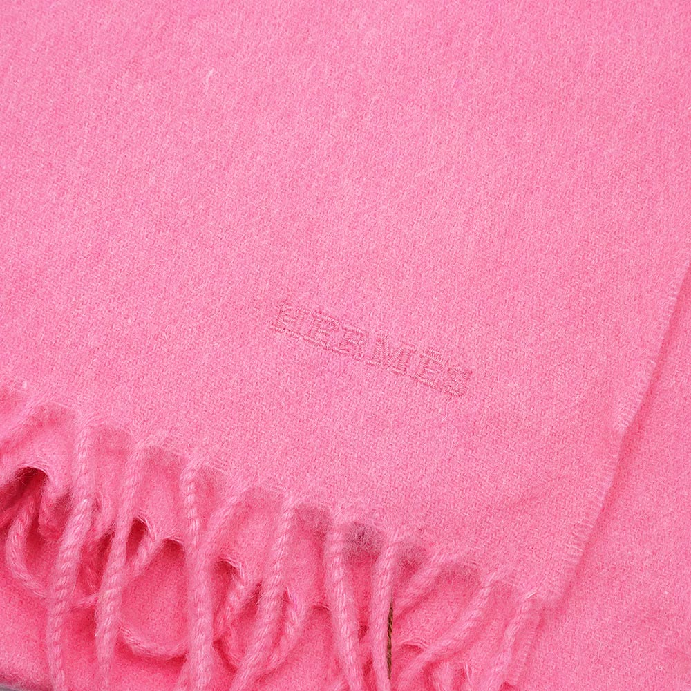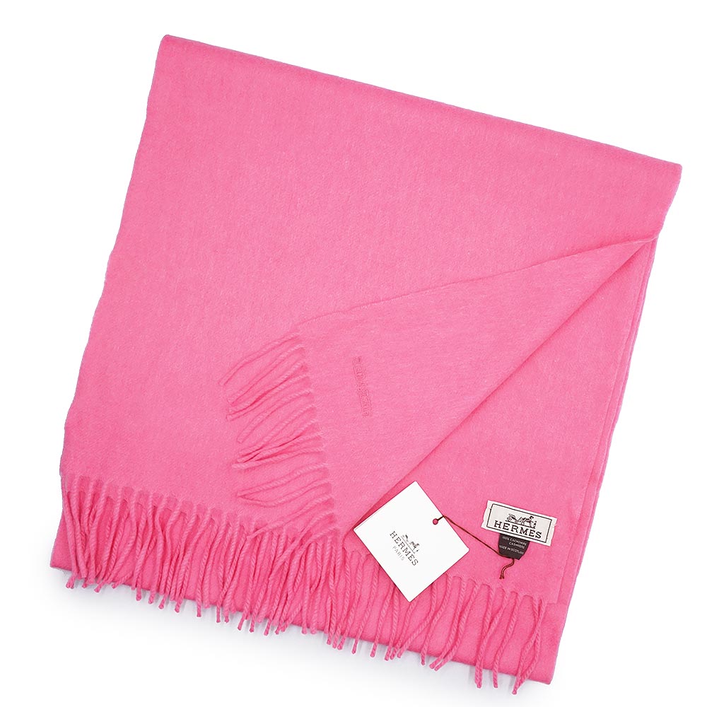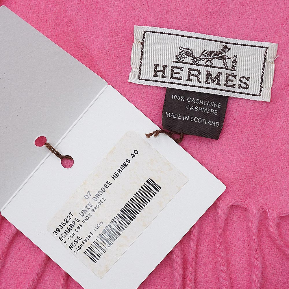 【新品・未使用品】HERMES エルメス ユニ ブロデ カシミヤ 100% ローズ ピンク フリンジ マフラー 箱付