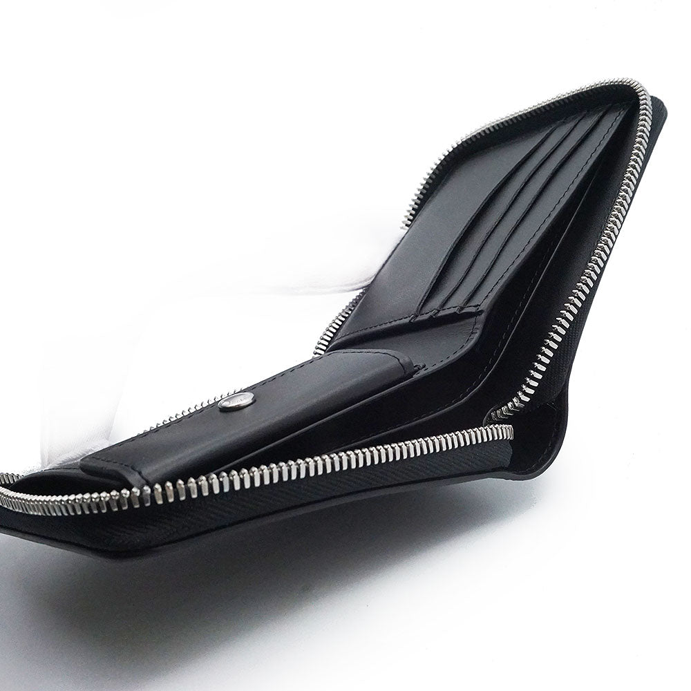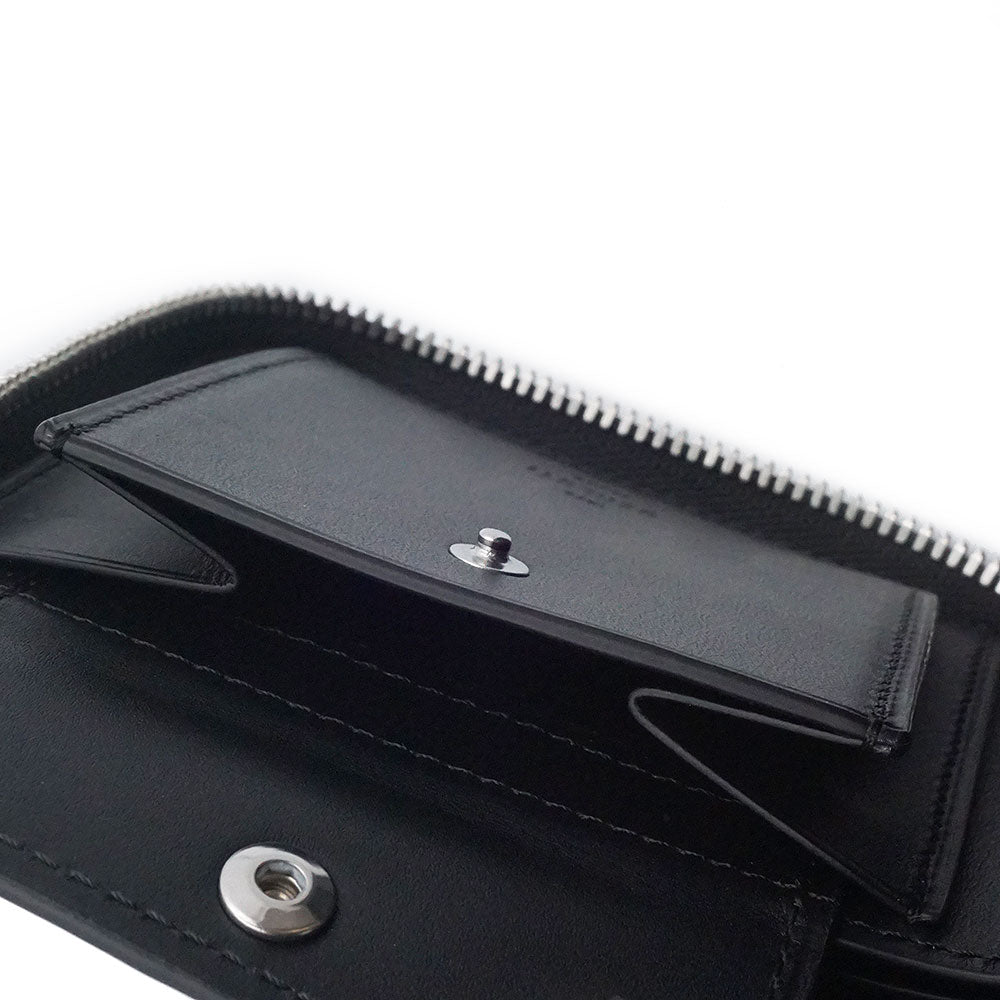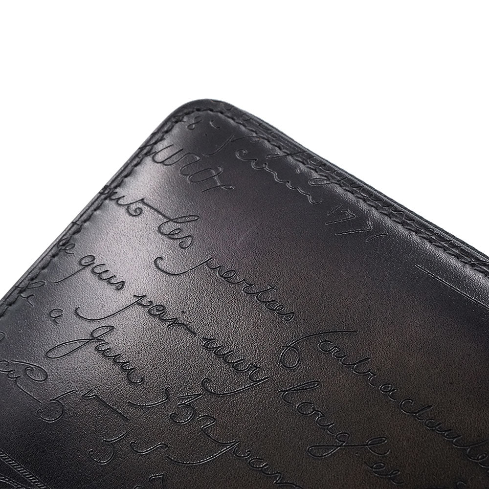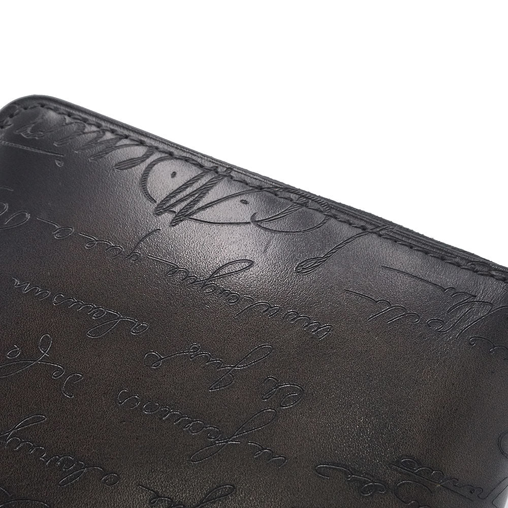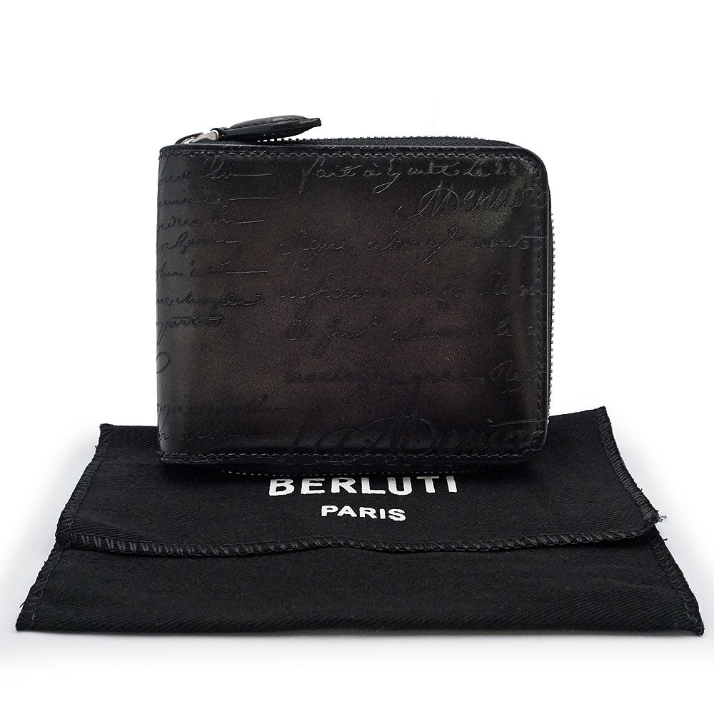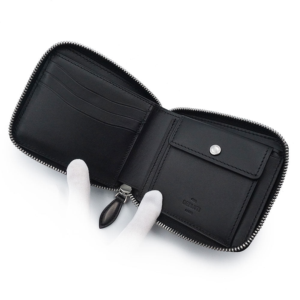【未使用 展示品】Berluti ベルルッティ カリグラフィ イタウバ スクエア コンパクトジップウォレット ヴェネチアカーフレザー ネログリージョ ブラック ラウンドファスナー 二つ折り財布 シルバー金具