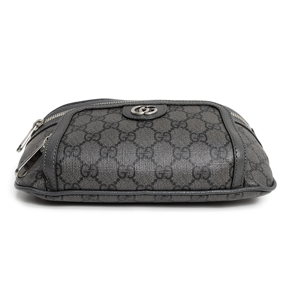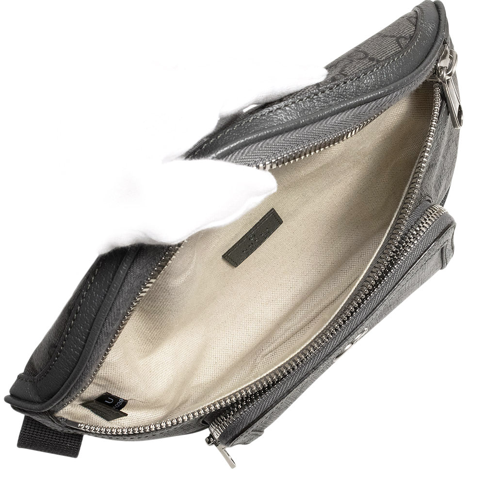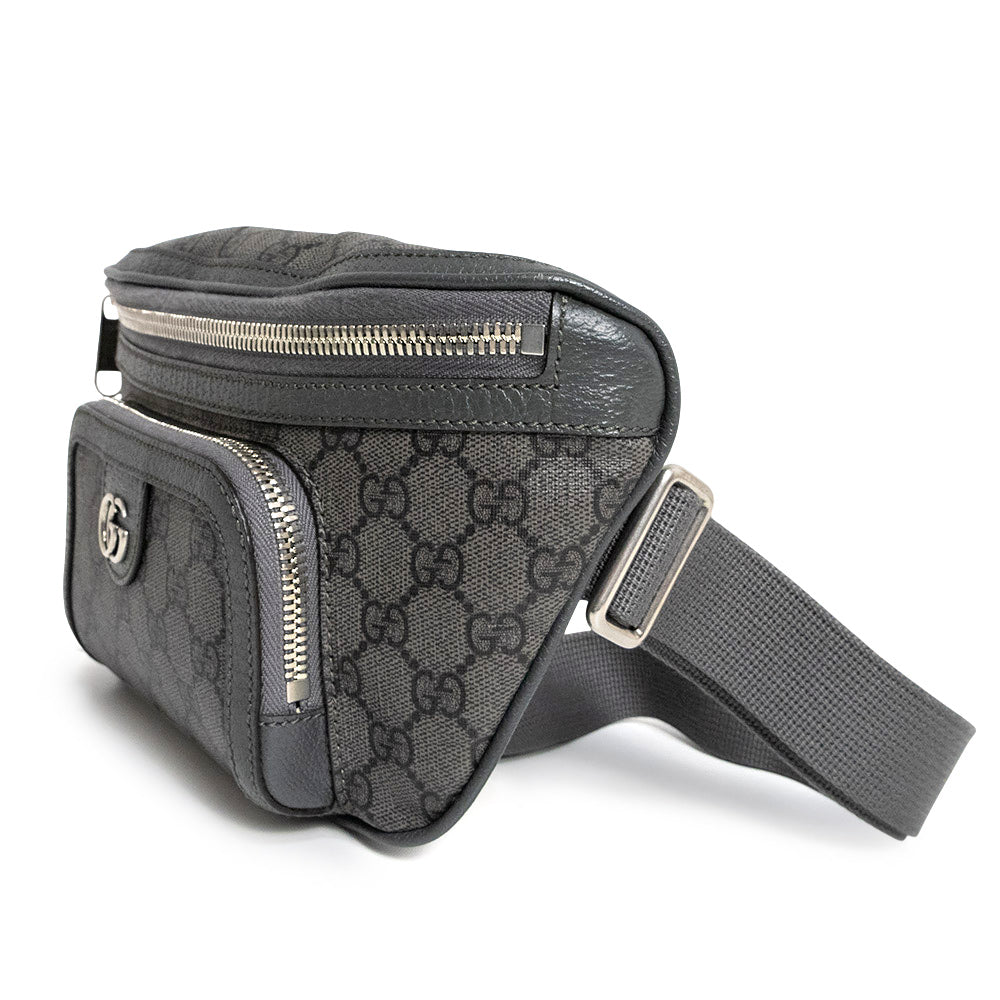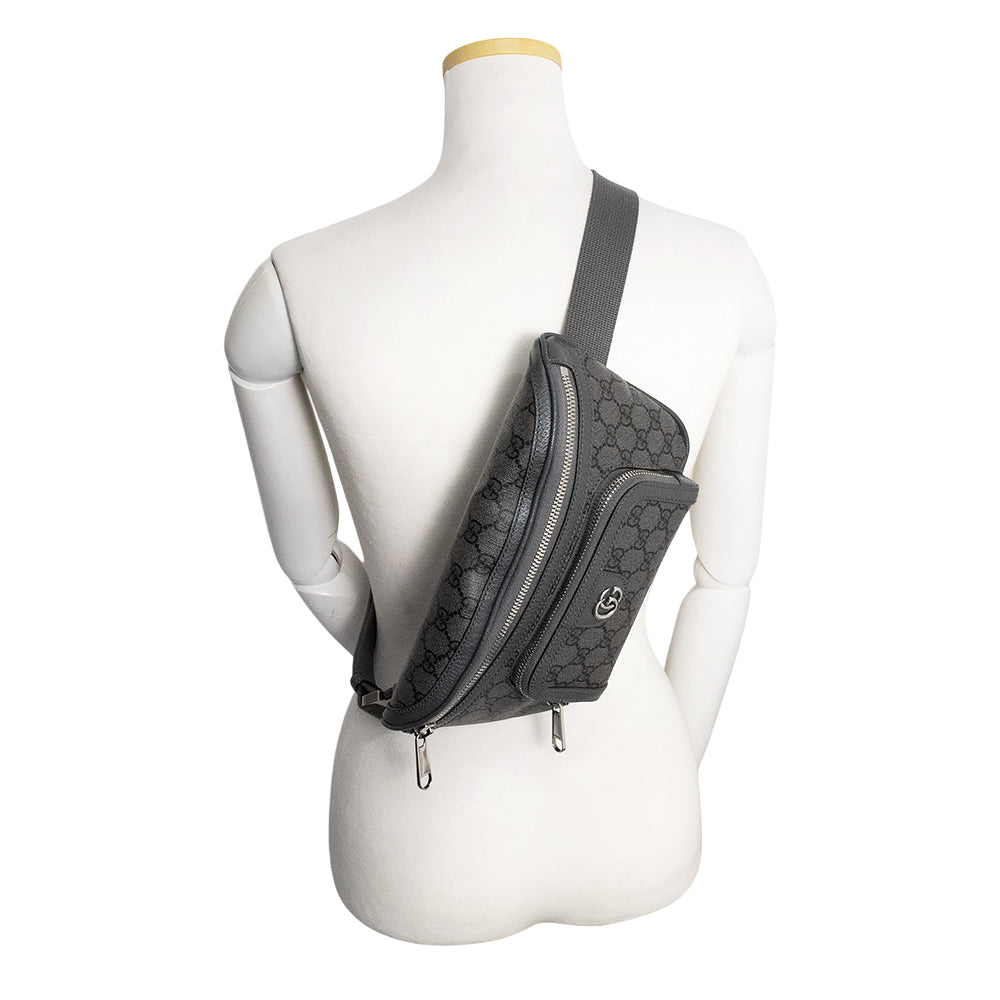 【未使用 展示品】GUCCI グッチ 733868 ダブルG オフィディア GGスプリームキャンバス レザー グレー ベルト ウエスト ボディバッグ 斜め掛け アンティークシルバー金具