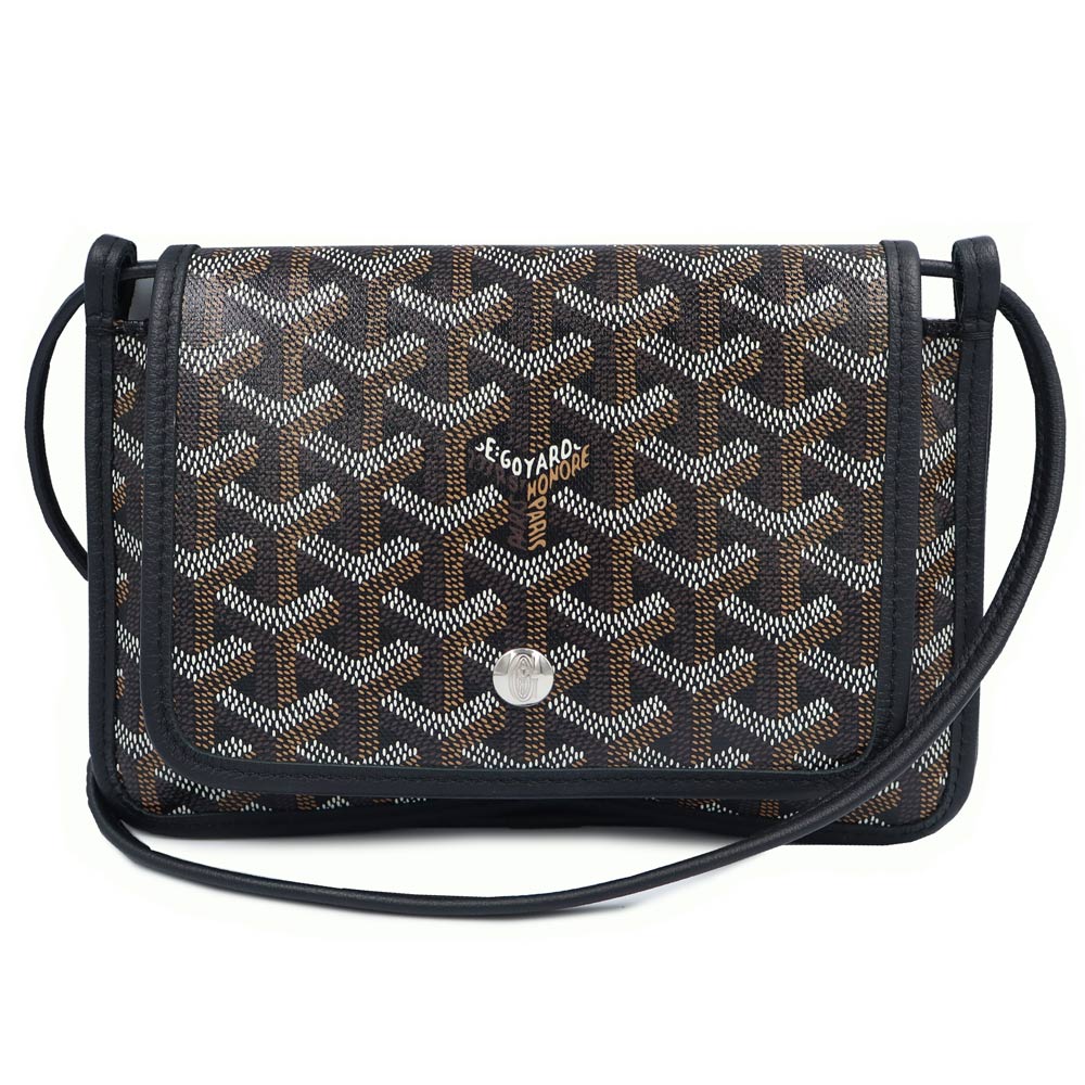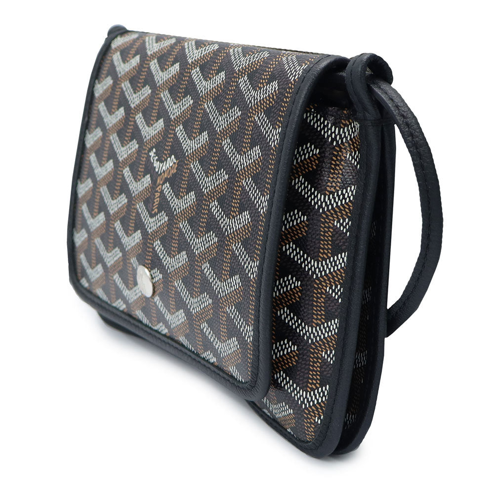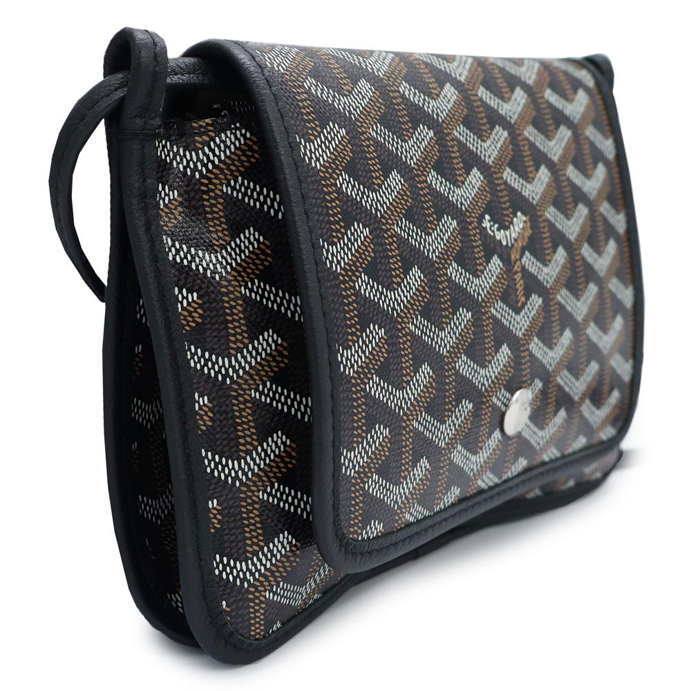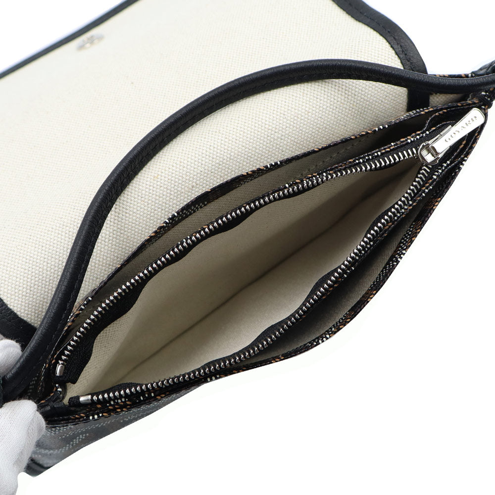 【未使用保管品】GOYARD ゴヤール PLUMETPMLTY01CL01P ヘリンボーン プリュメ ポーチウォレット PVCコーティングキャンバス カーフスキン ブラック ショルダーバッグ 斜め掛け レザー シルバー金具