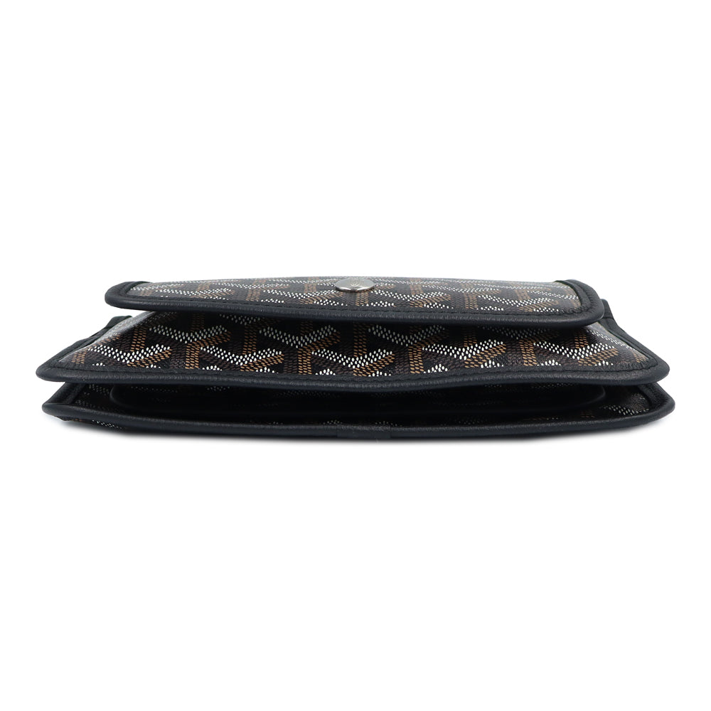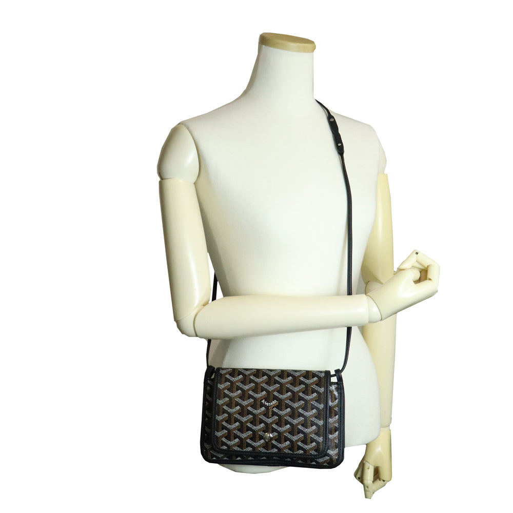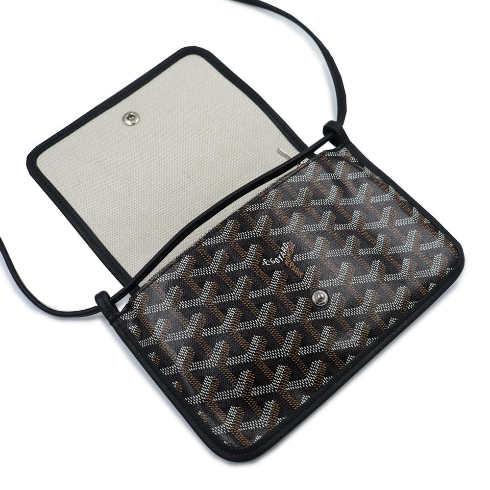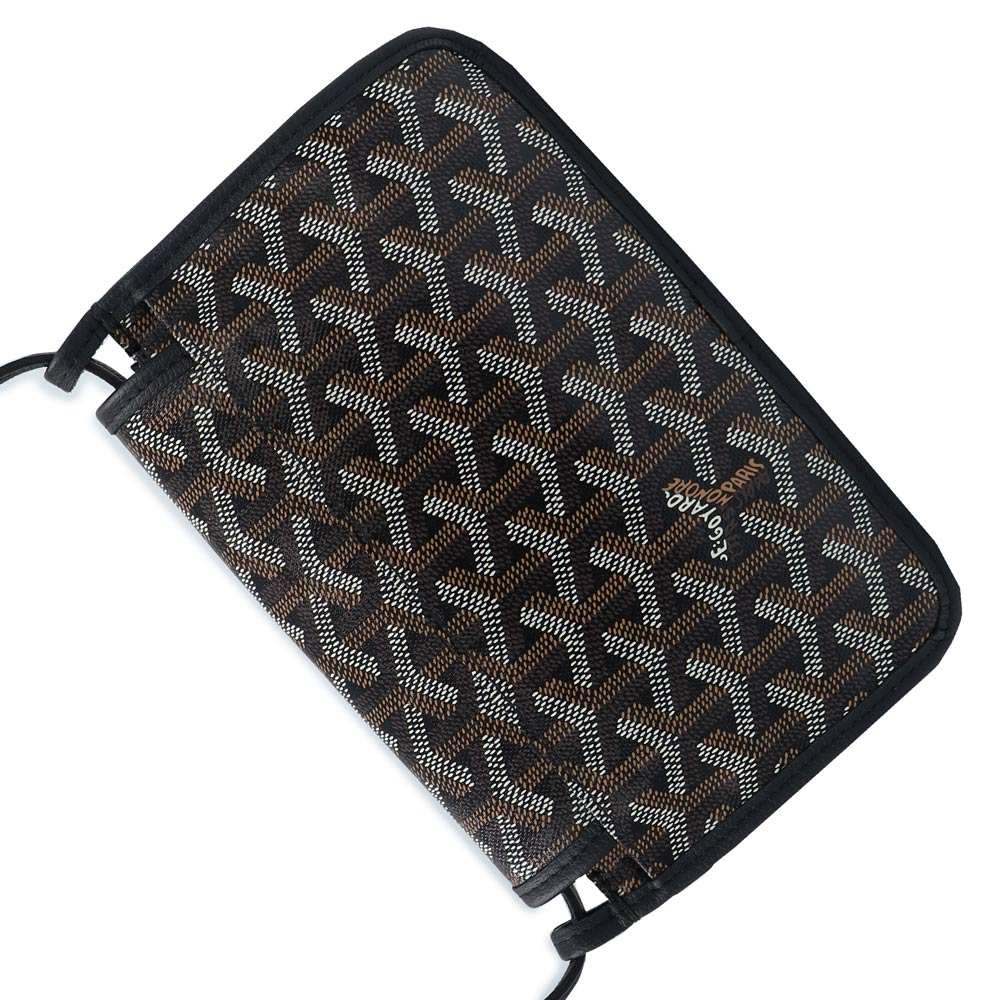 【未使用保管品】GOYARD ゴヤール PLUMETPMLTY01CL01P ヘリンボーン プリュメ ポーチウォレット PVCコーティングキャンバス カーフスキン ブラック ショルダーバッグ 斜め掛け レザー シルバー金具