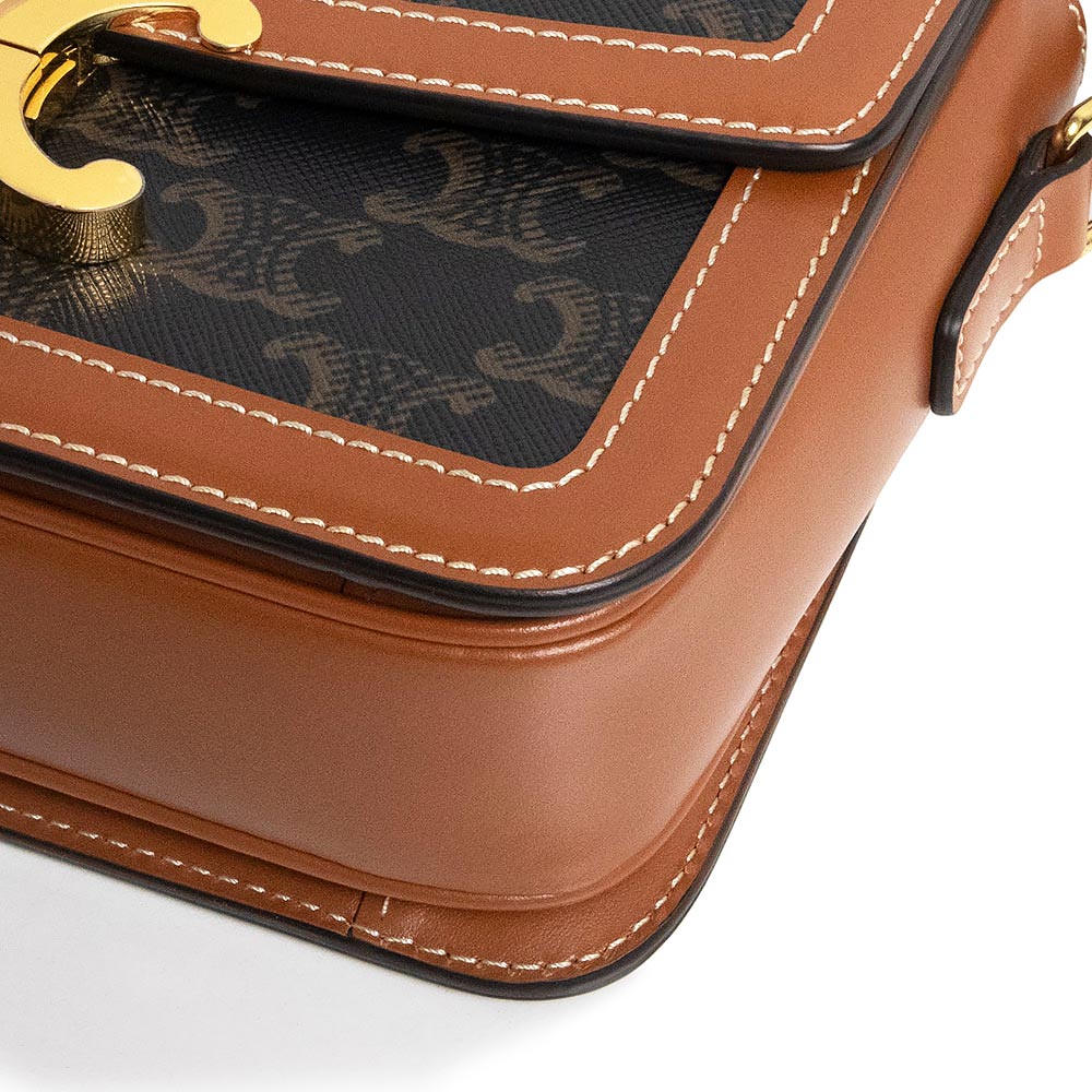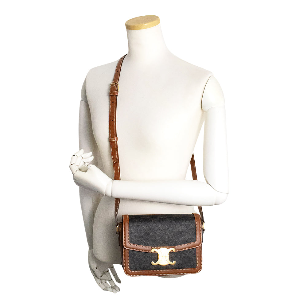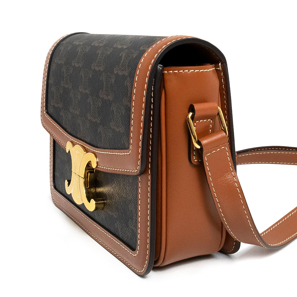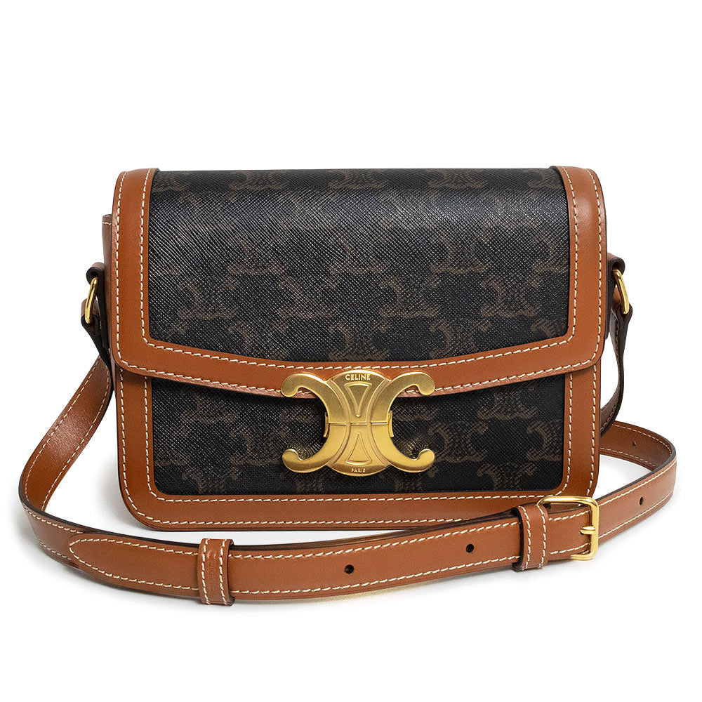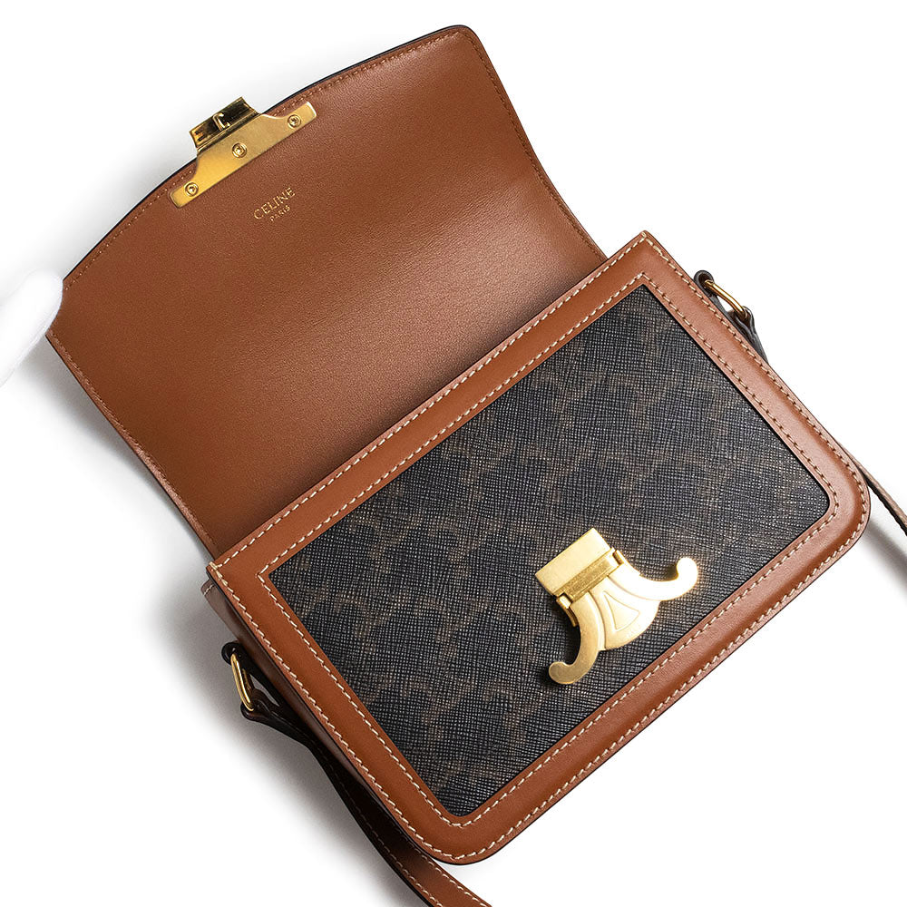 【未使用 展示品】CELINE セリーヌ 188882BZ4 ティーン トリオンフ トリオンフキャンバス カーフスキン レザー タン ブラウン ショルダーバッグ 斜め掛け ゴールド金具