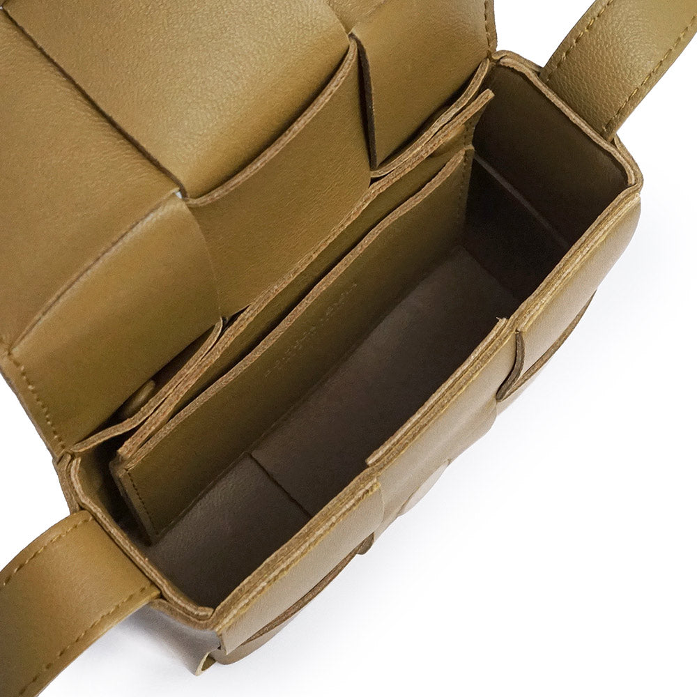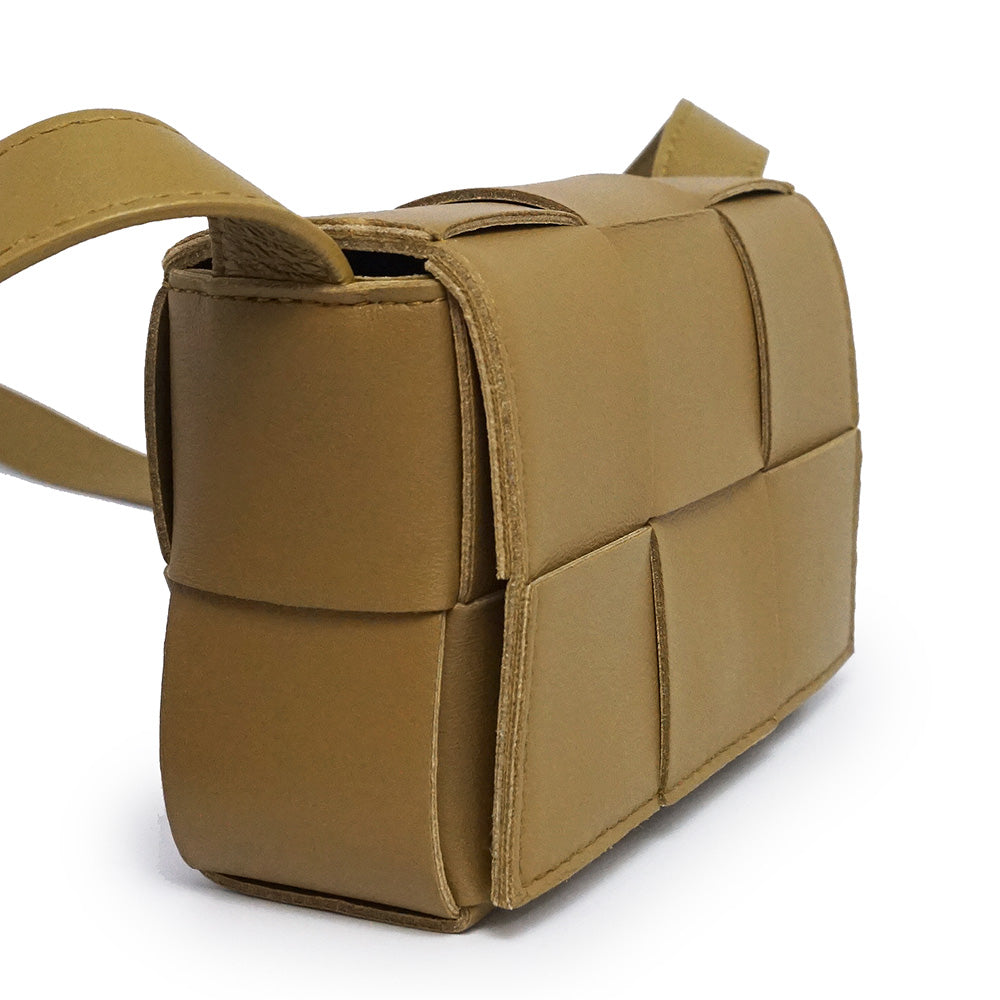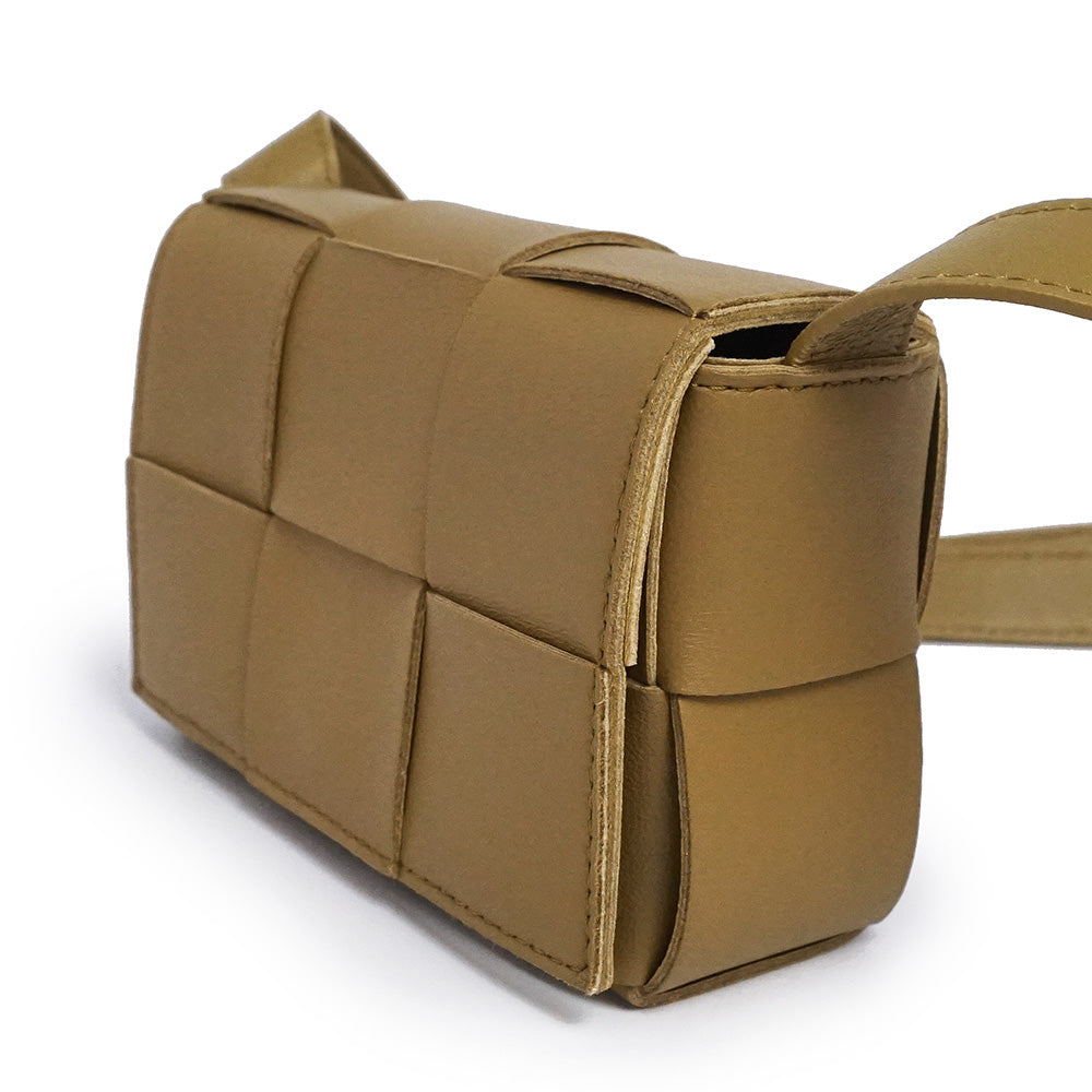 「CASSETTE(カセット)」キャンディ ミニバッグ クロスボディ ポーチ。こちらは非常にコンパクトなシリーズで最も小さい「キャンディ」です。アイコニックなイントレチャートは2×3の編み込みでより存在感のあるデザインに。アクセサリー感覚で身に着けられます。 |