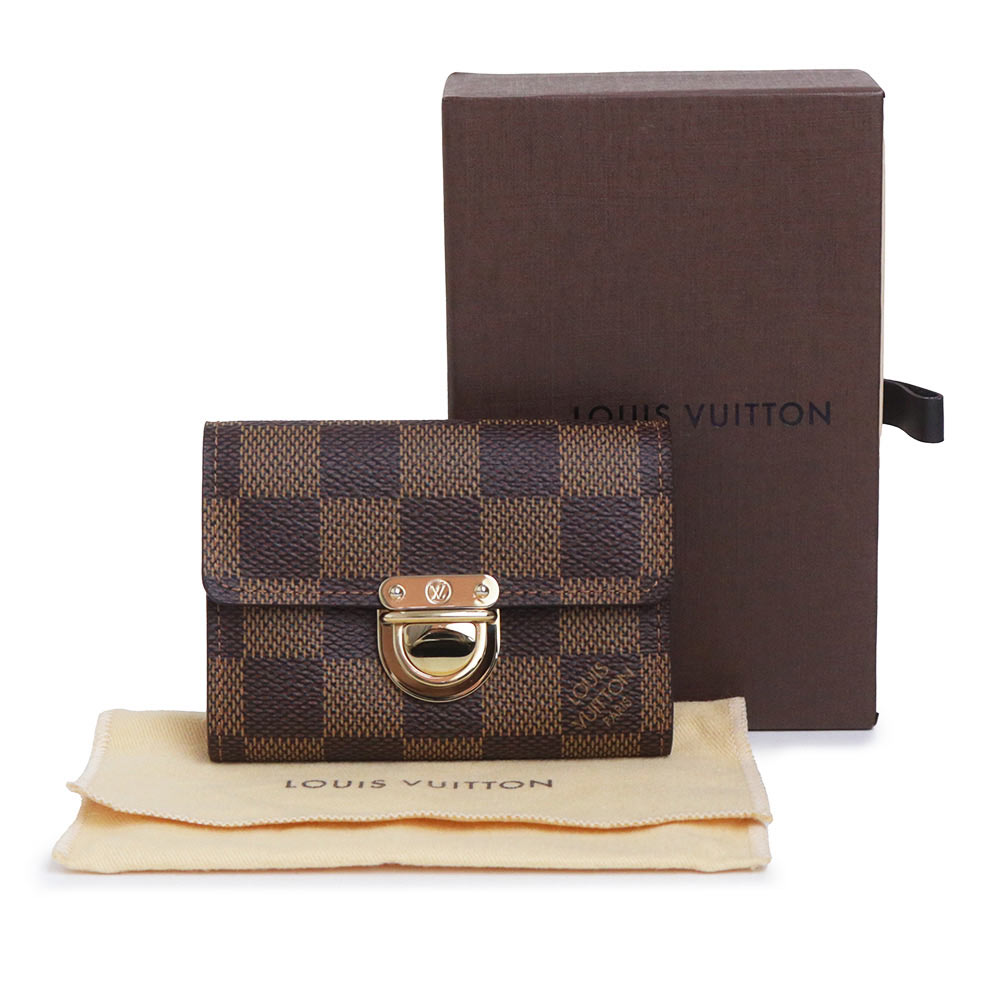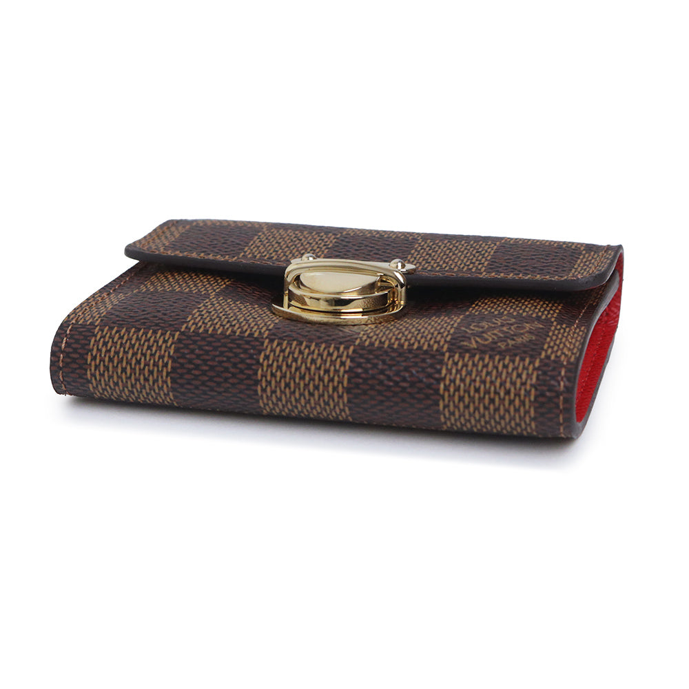 シックなダミエ・キャンバスのコンパクトなコインケース「ポルトモネ・コアラ」。ゴールド金具のフラップを開けると、赤いライニングでモダンな女性の毎日のお供にぴったりのアイテムです。ミニサイズで、バッグやコートのポケットにもすっきりと入ります。 |