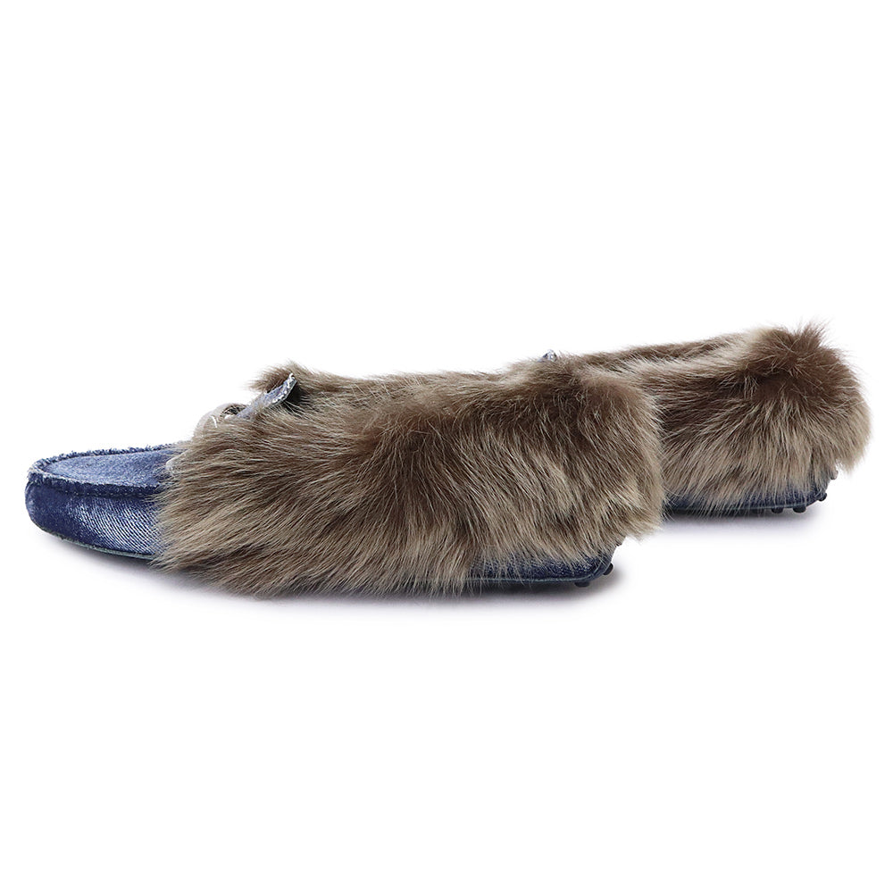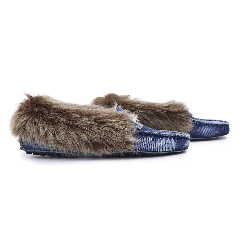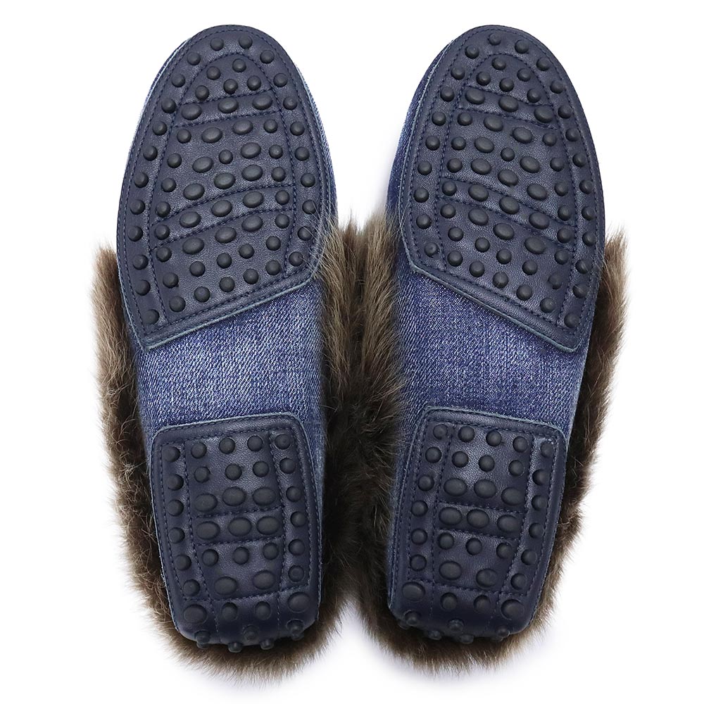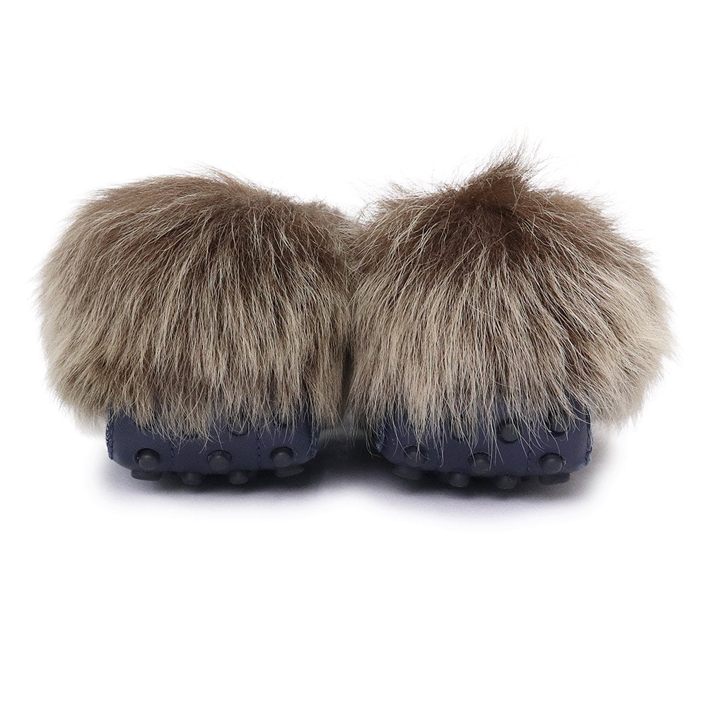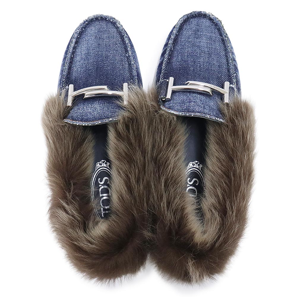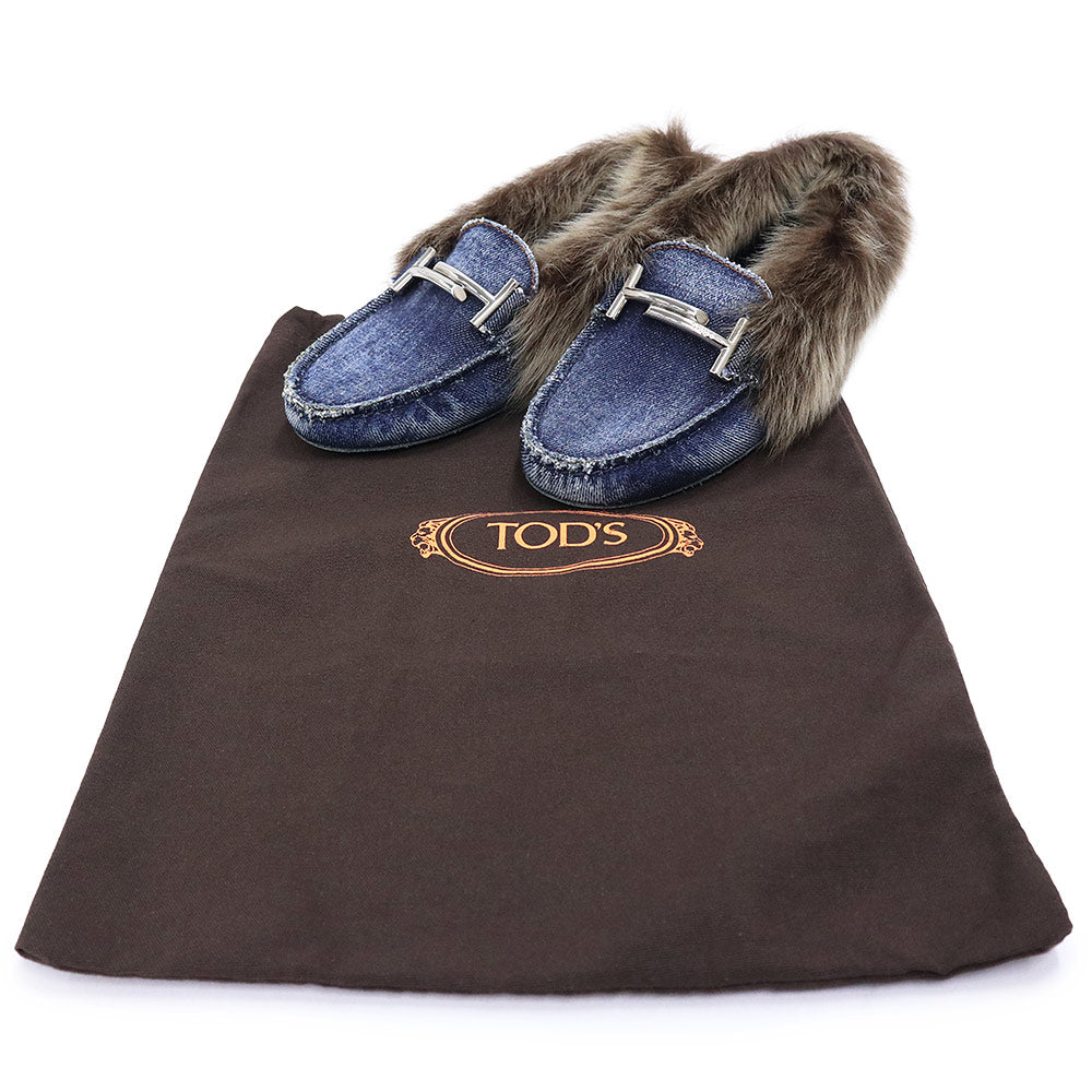 【未使用保管品】TOD’S トッズ XXW00G0X880IUB9999 Gommini ゴンミーニ ドライビングシューズ デニム ムートン インディゴ ブラウン ローファー モカシン フラット 靴 #35.5 22.5cm シルバー金具