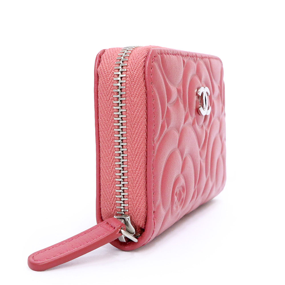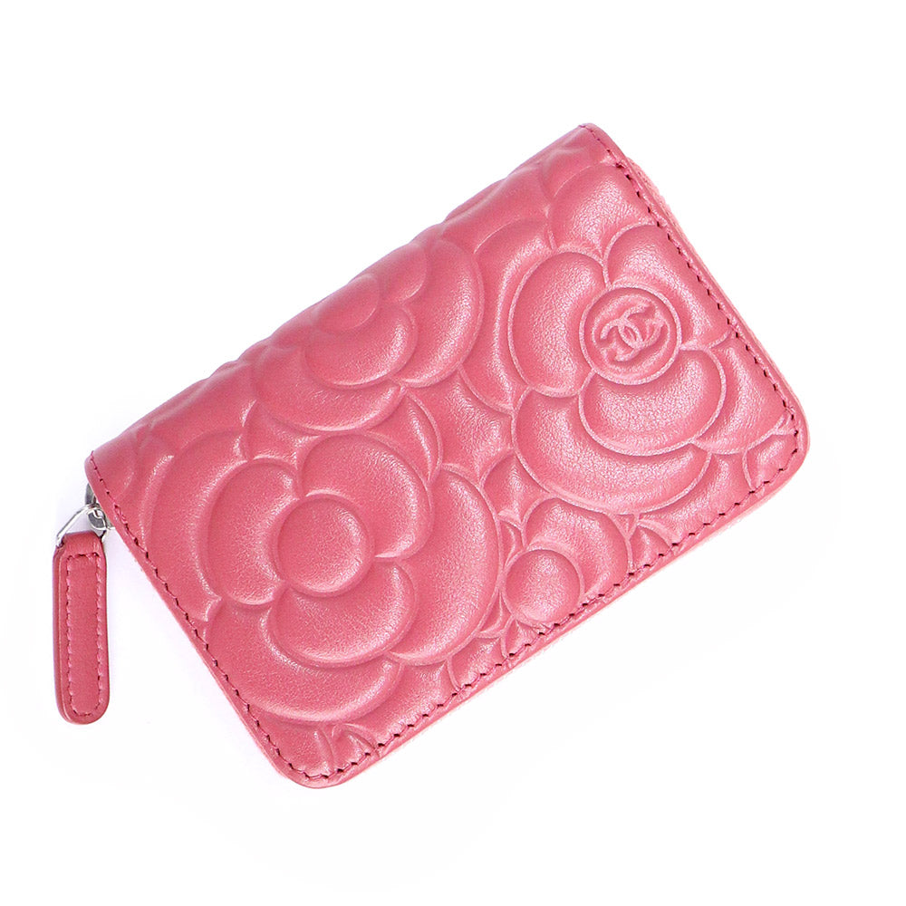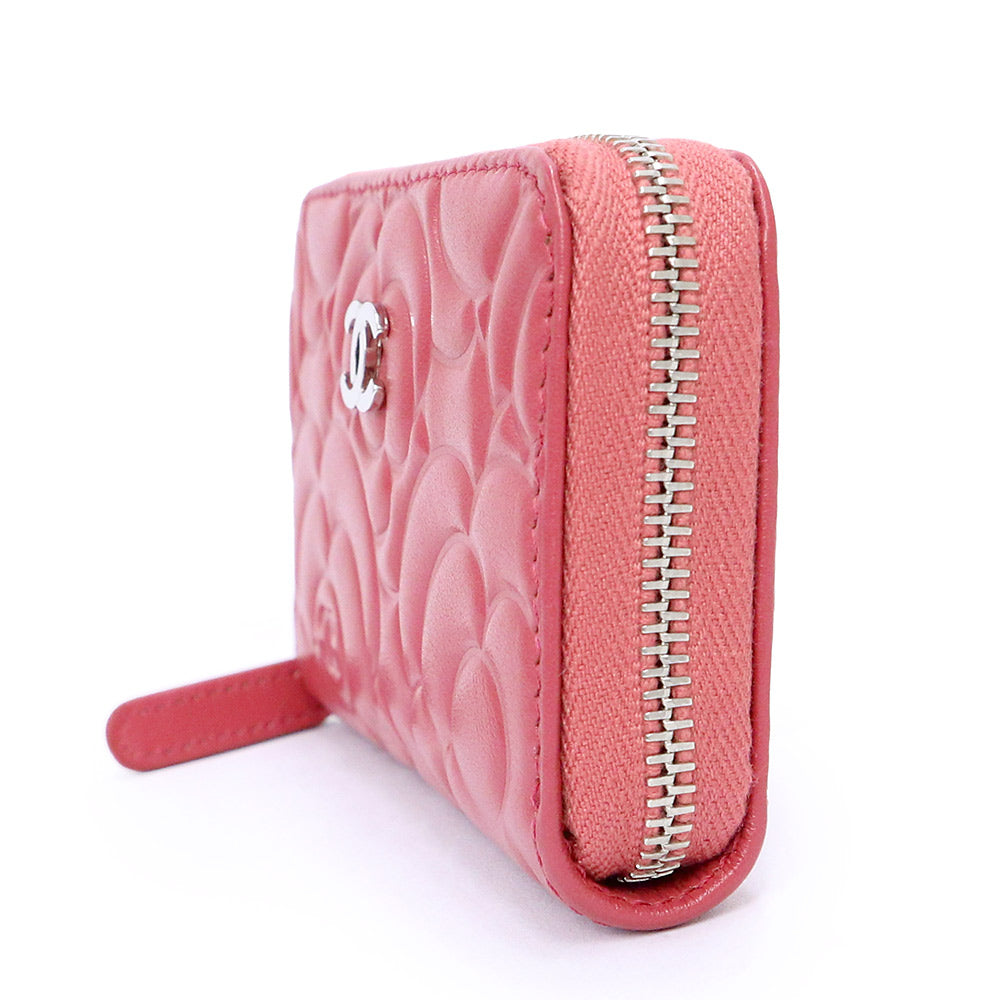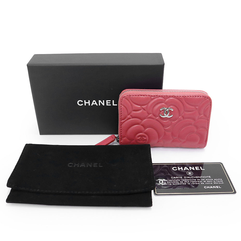 【新品・未使用品】CHANEL シャネル A82551 ココマーク カメリア エンボス ラムスキン ピンク コインケース 小銭入れ 財布 レザー シルバー金具 箱付
