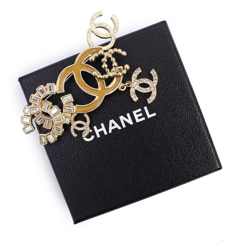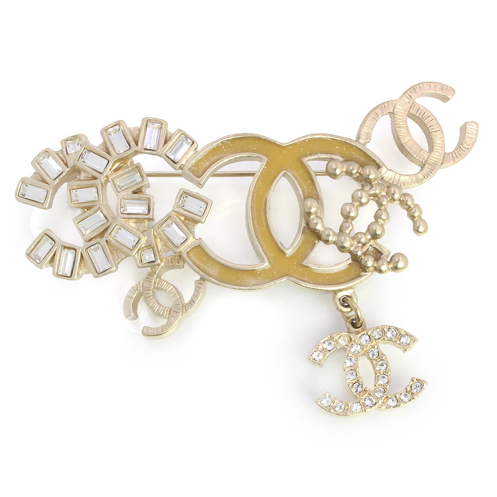 【美品】CHANEL シャネル ラインストーン ココマーク クリスタル シャンパンゴールド ブローチ 箱付