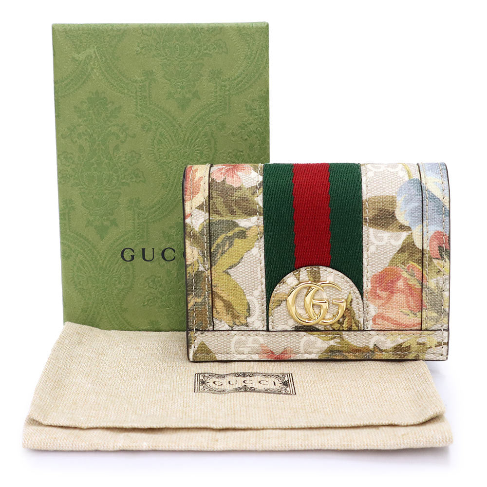 【新品・未使用品】GUCCI グッチ 523155 オフィディア GGフローラ GGスプリームキャンバス レザー ベージュ 二つ折り財布 ゴールド金具 箱付