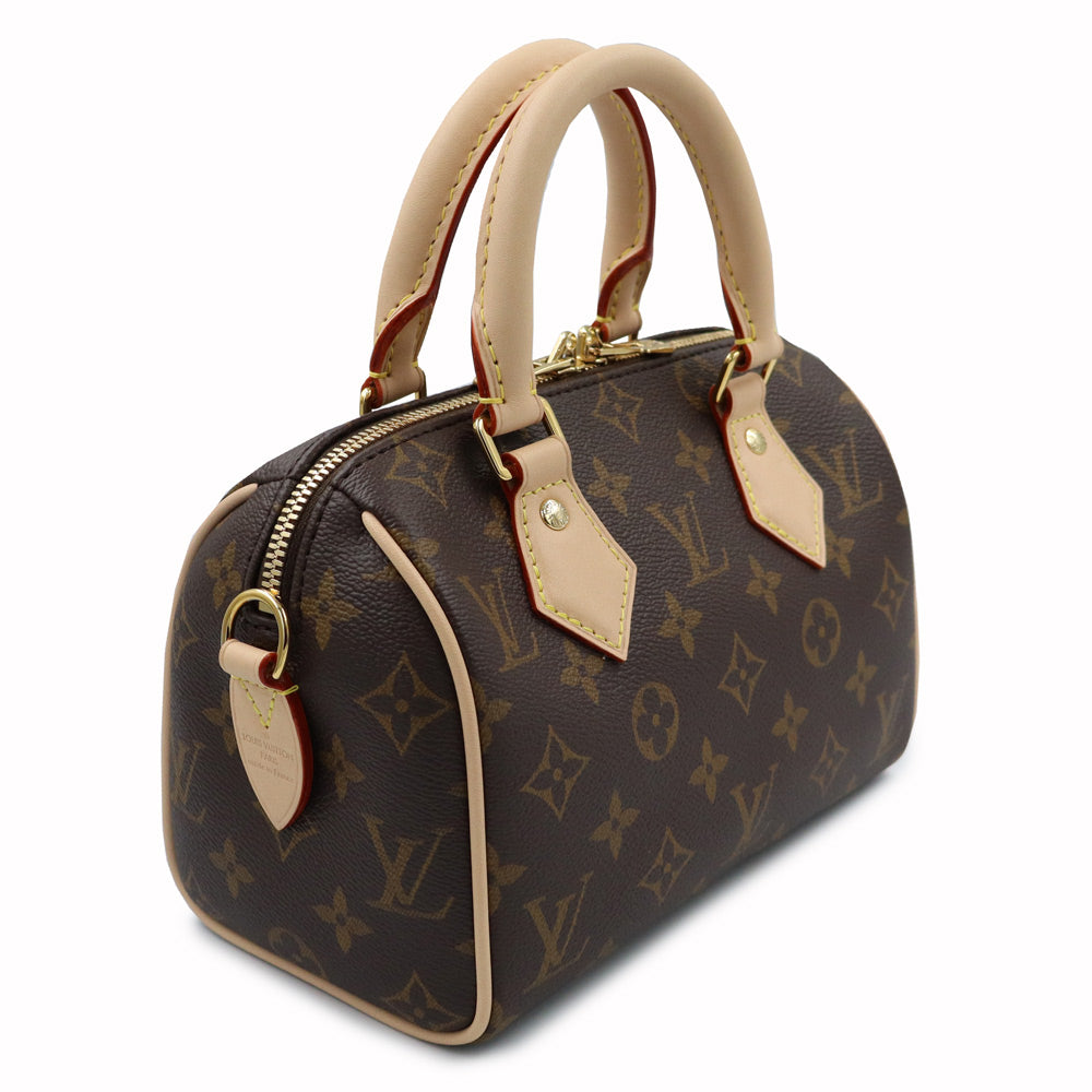 モノグラム・キャンバスにヌメ革のトリミングとゴールドカラーのメタルパーツを組み合わされた「スピーディ・バンドリエール 20」。かわいいサイズで、収納スペースにもある程度余裕があり、外出にぴったりなバッグです。 |