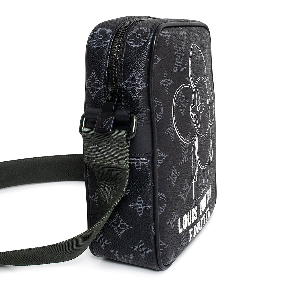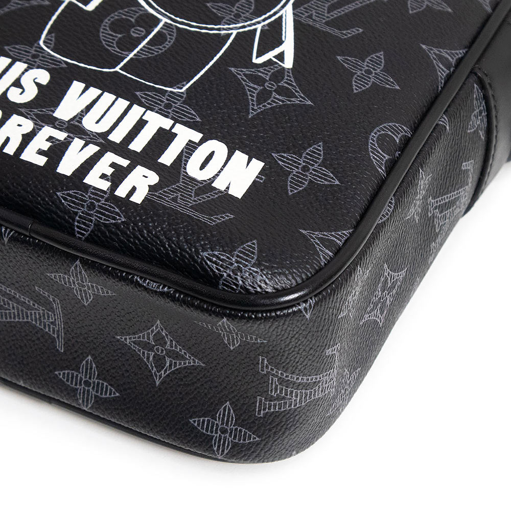 メンズ・プレコレクションのためにデザインされた「ダヌーヴ PM」。ブラックを基調とし、金具やショルダーはアクセントカラーにグリーンを。ルイ・ヴィトンのキャラクター「ヴィヴィエンヌ」が大胆にプリントされたバッグです。 |