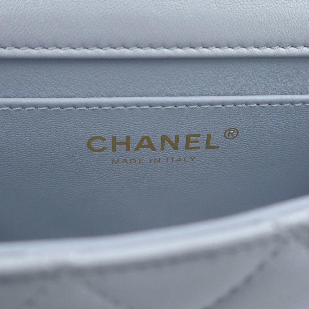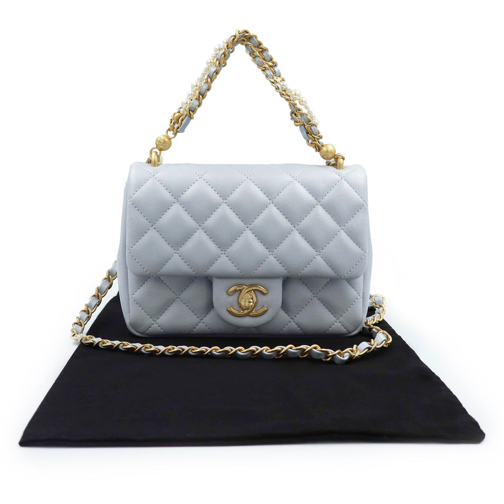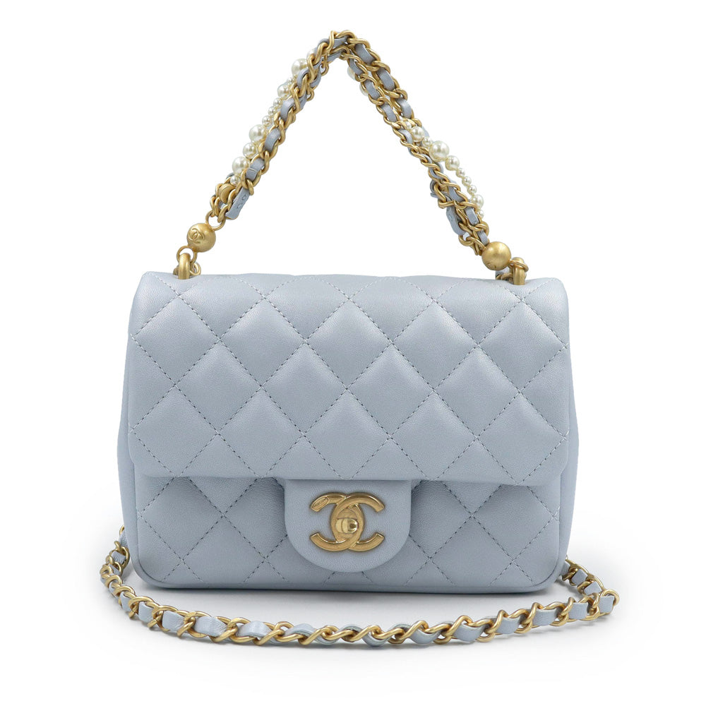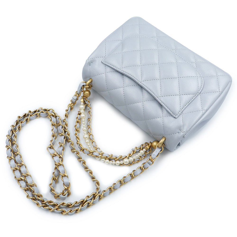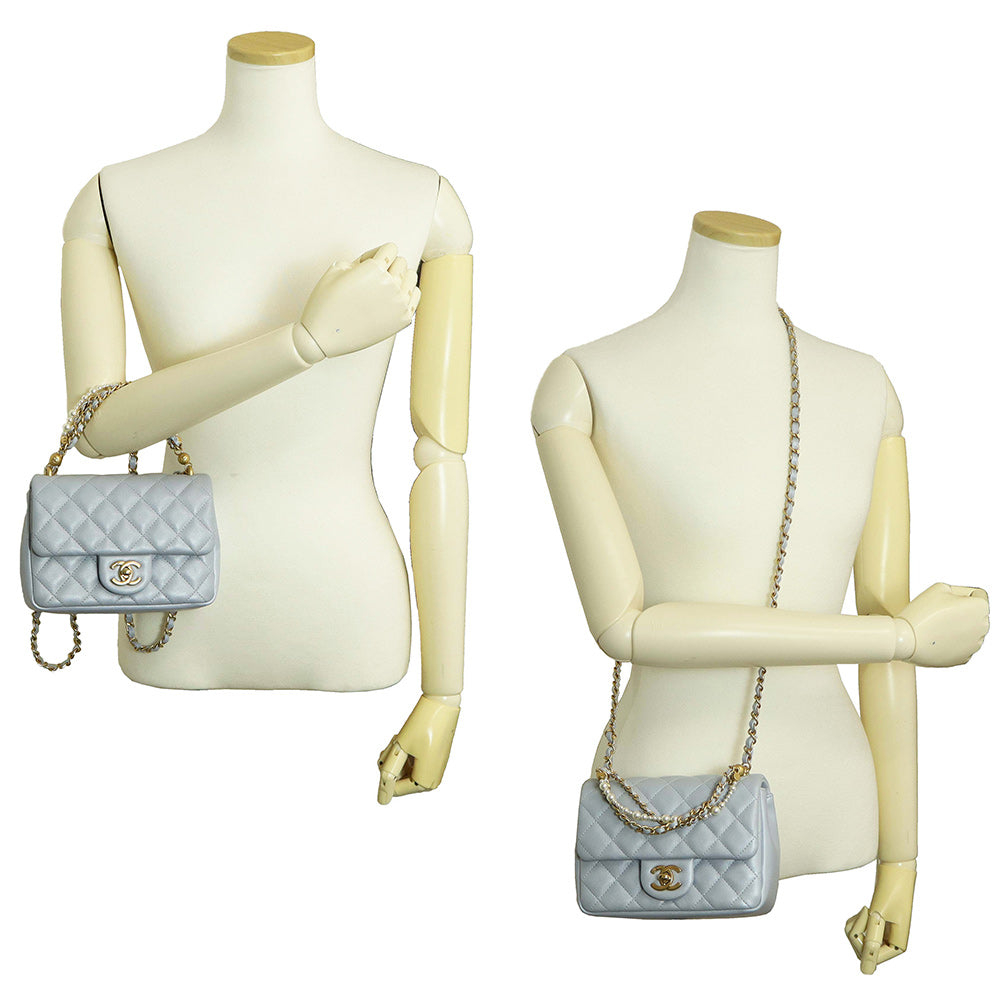 【未使用 展示品】CHANEL シャネル AS4385 マトラッセ ココマーク ミニフラップバッグ パール チェーン ラムスキン ブルーグレー 2WAY ショルダー ハンドバッグ 斜め掛け レザー ゴールド金具