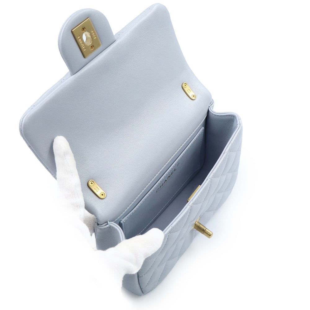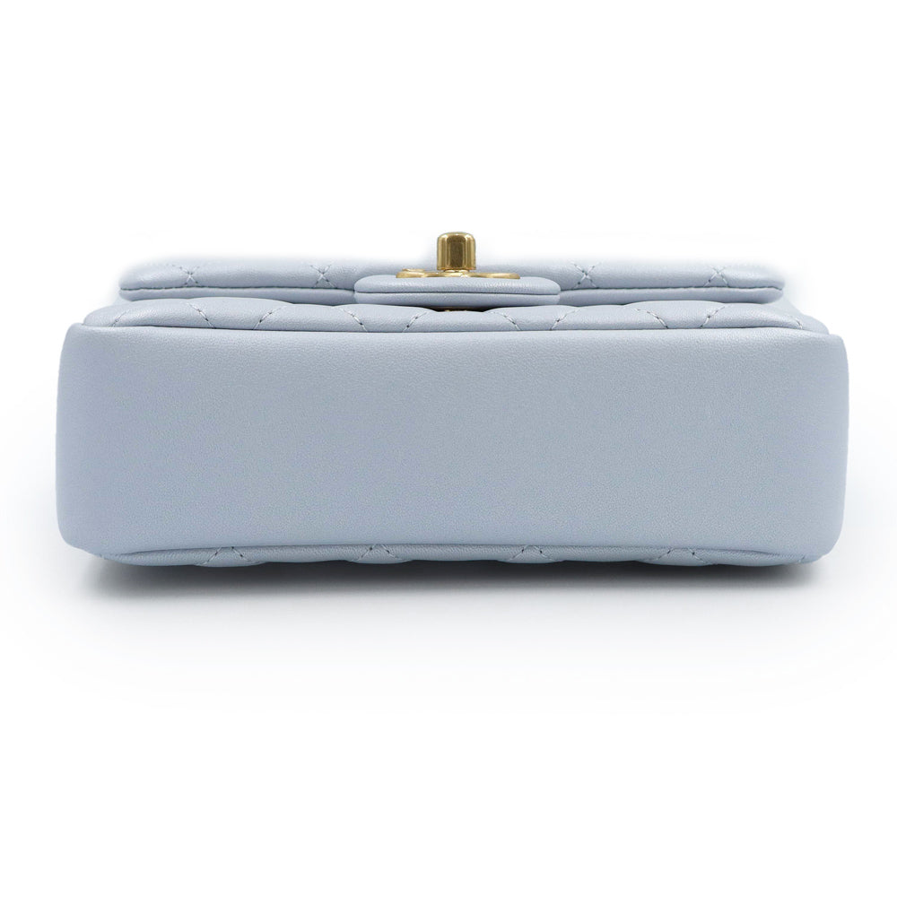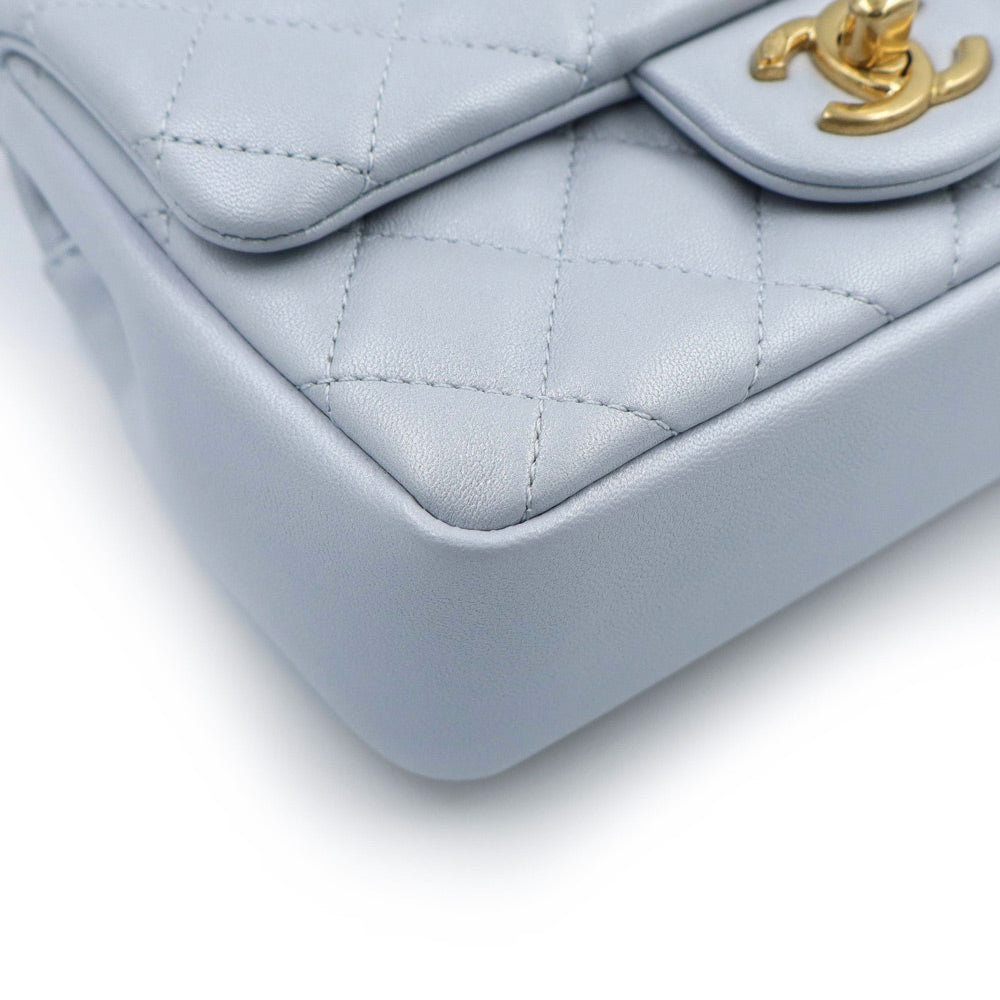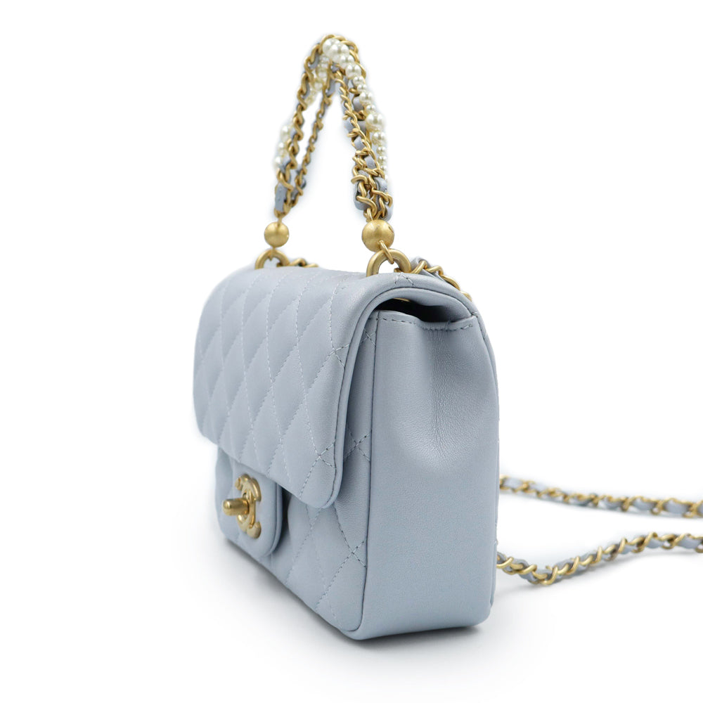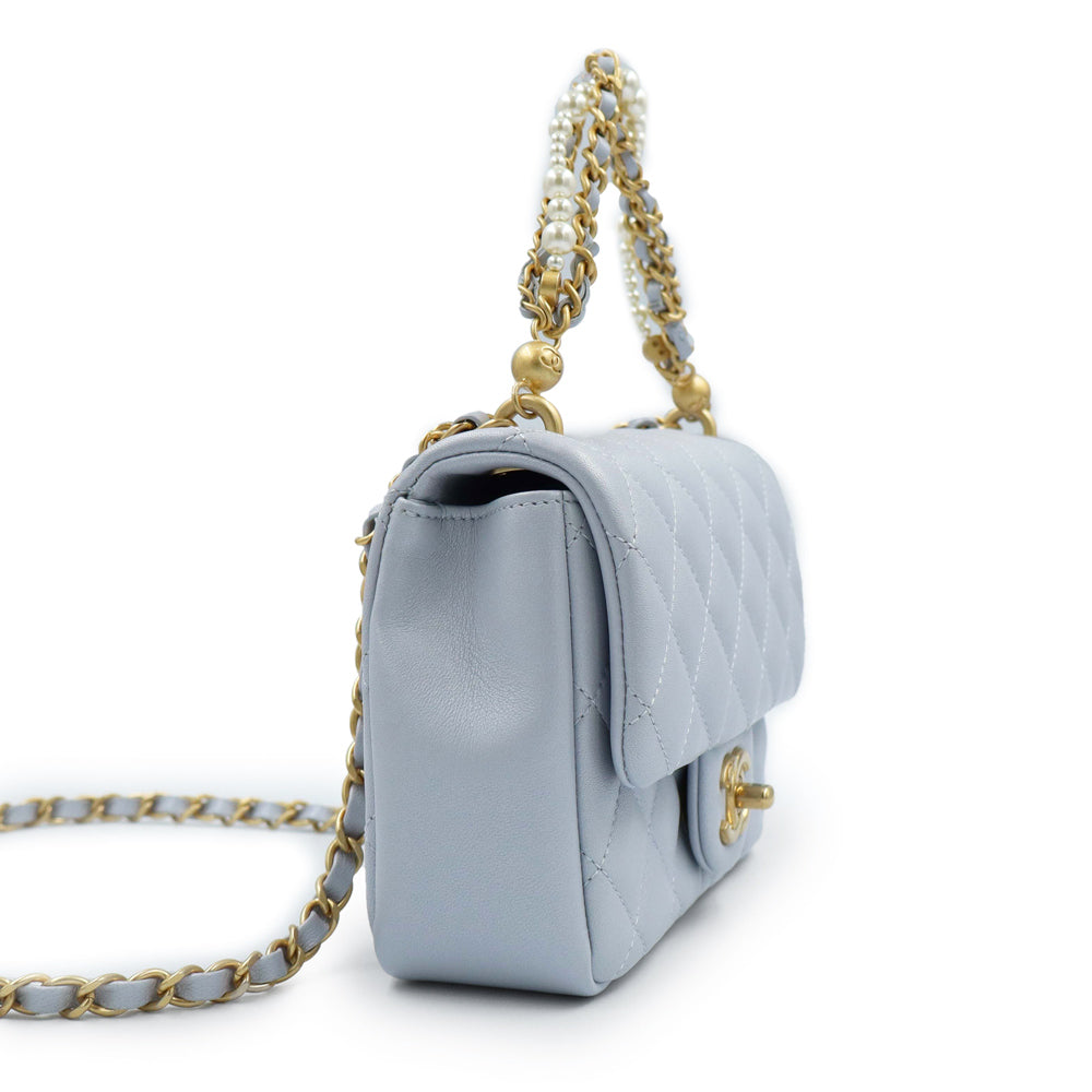【未使用 展示品】CHANEL シャネル AS4385 マトラッセ ココマーク ミニフラップバッグ パール チェーン ラムスキン ブルーグレー 2WAY ショルダー ハンドバッグ 斜め掛け レザー ゴールド金具
