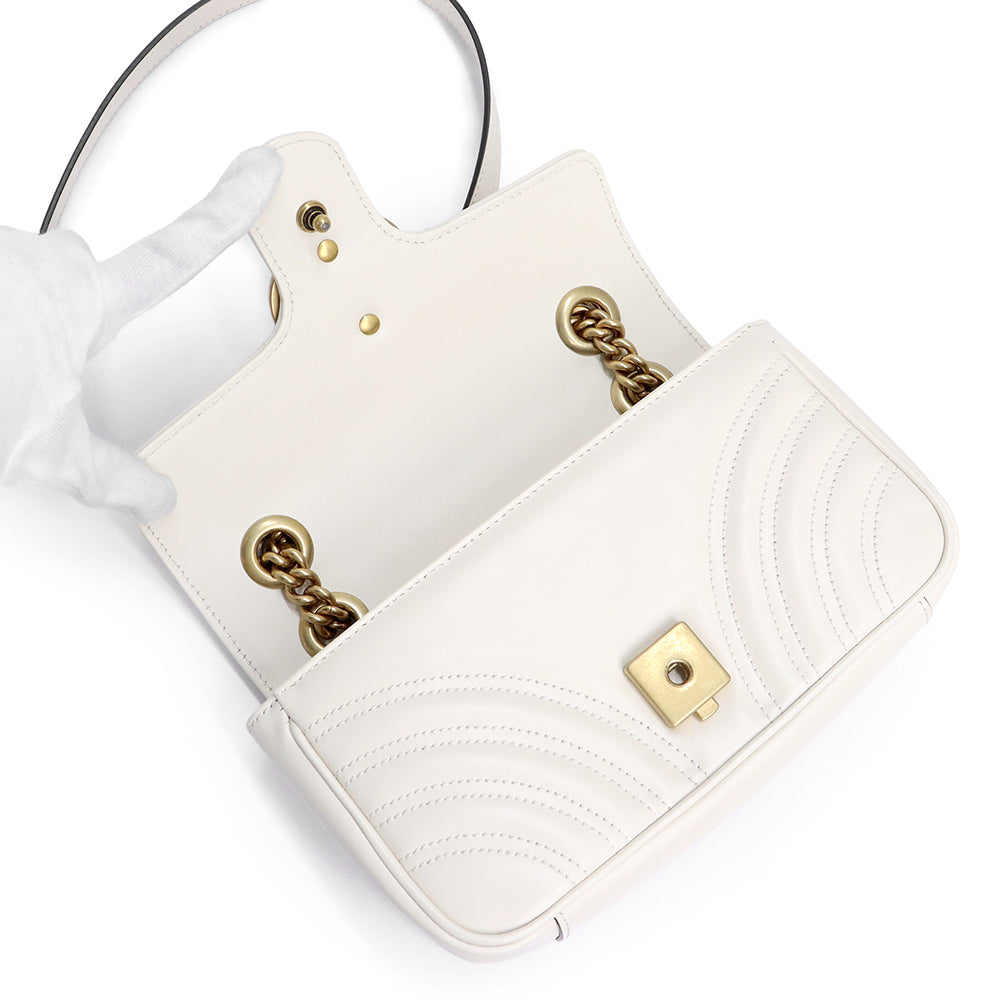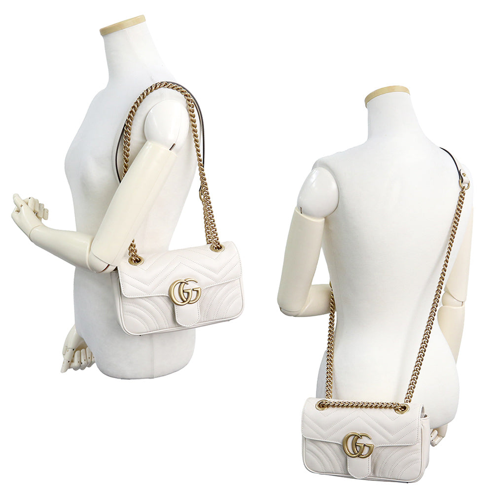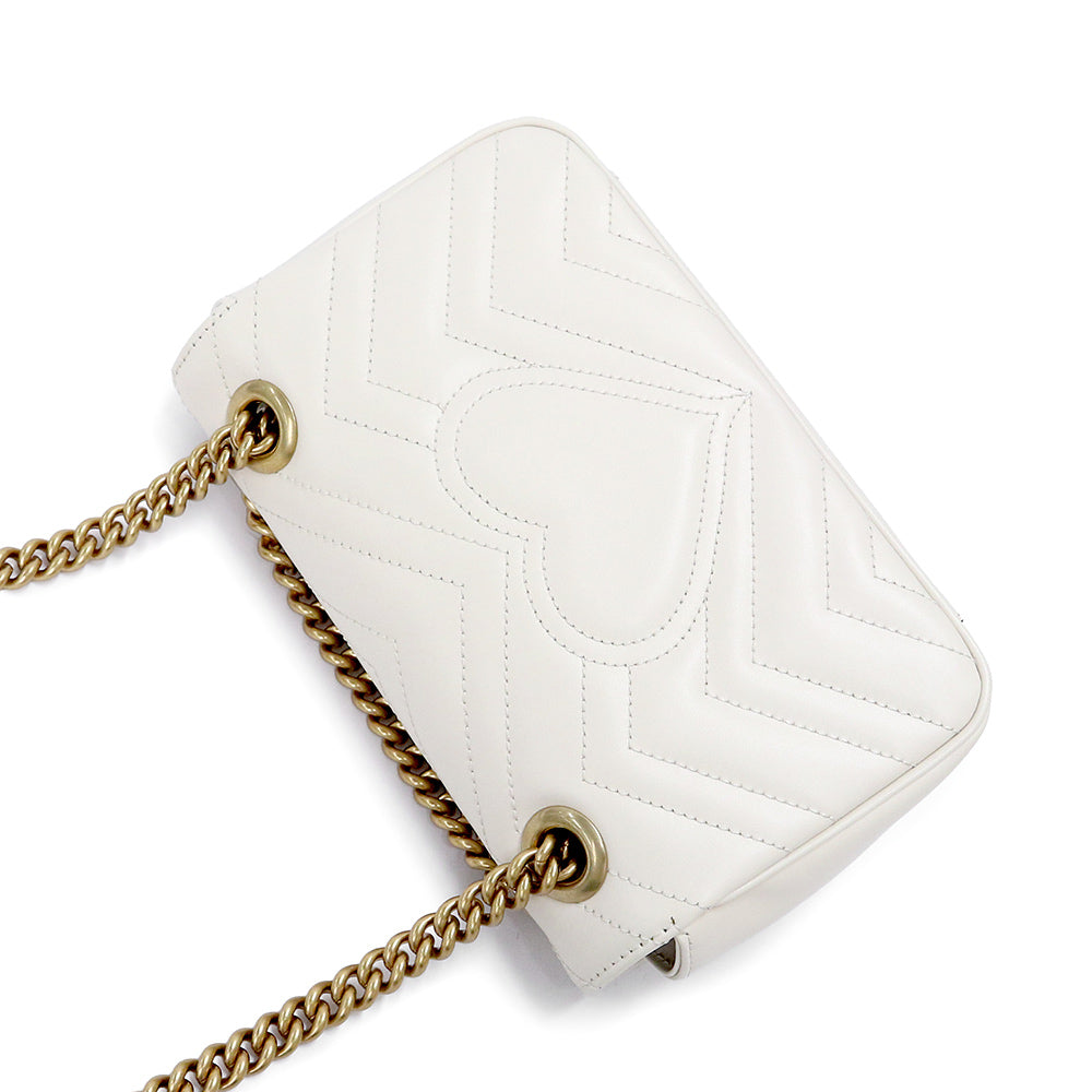 【新品・未使用品】GUCCI グッチ 446744 GGマーモント キルティング ミニ ハート オンライン限定 シェブロンレザー オフホワイト ショルダーバッグ 2WAY 斜め掛け アンティークゴールド金具