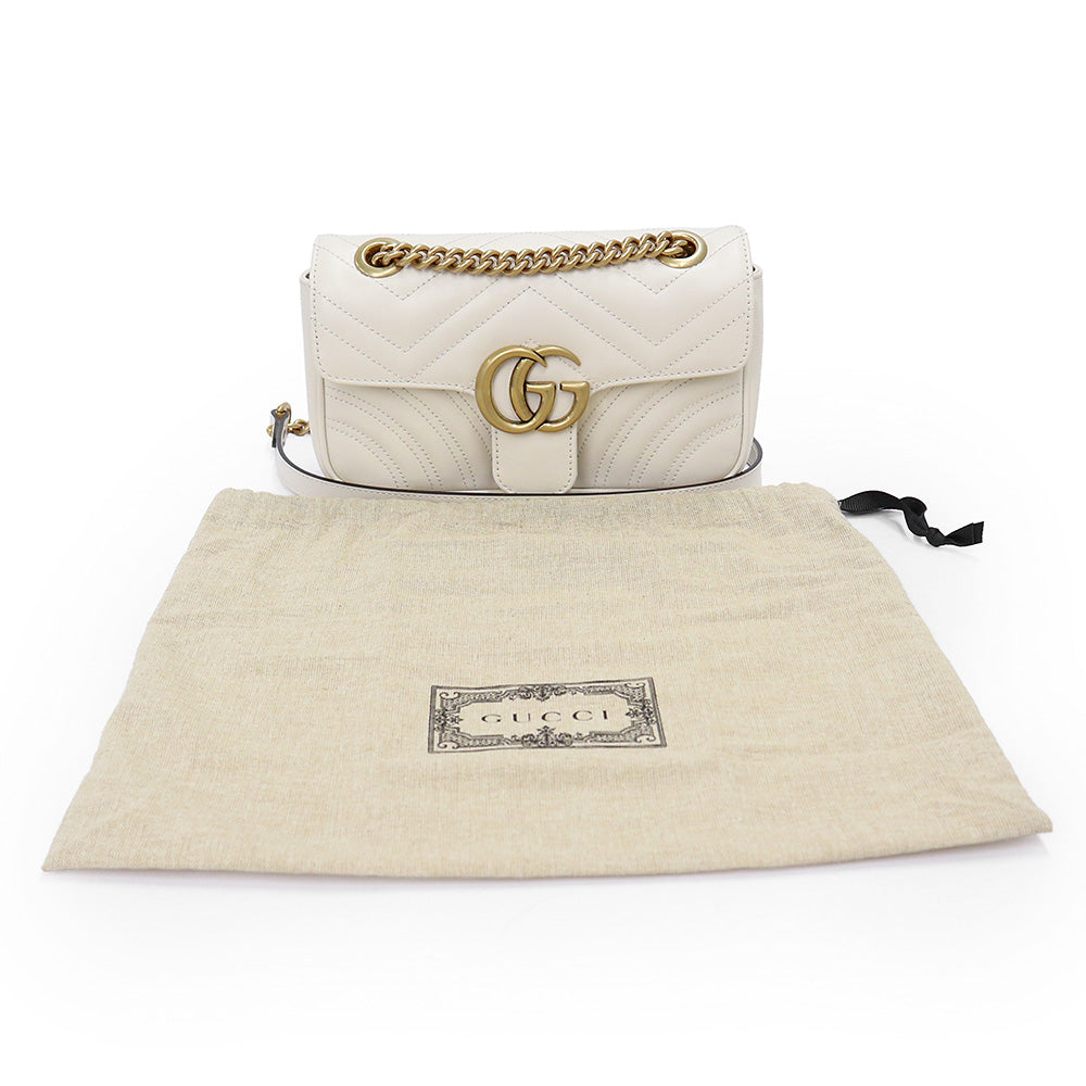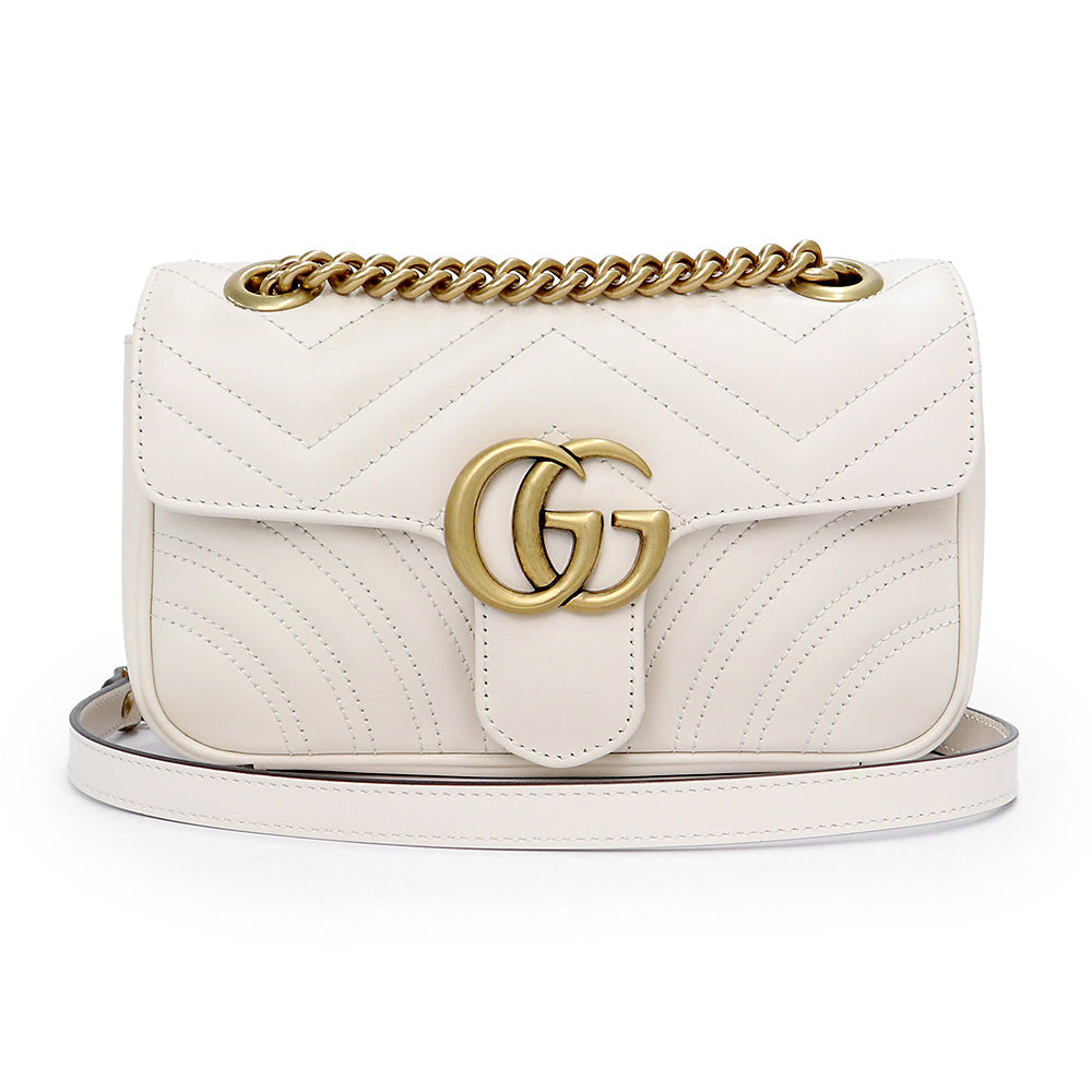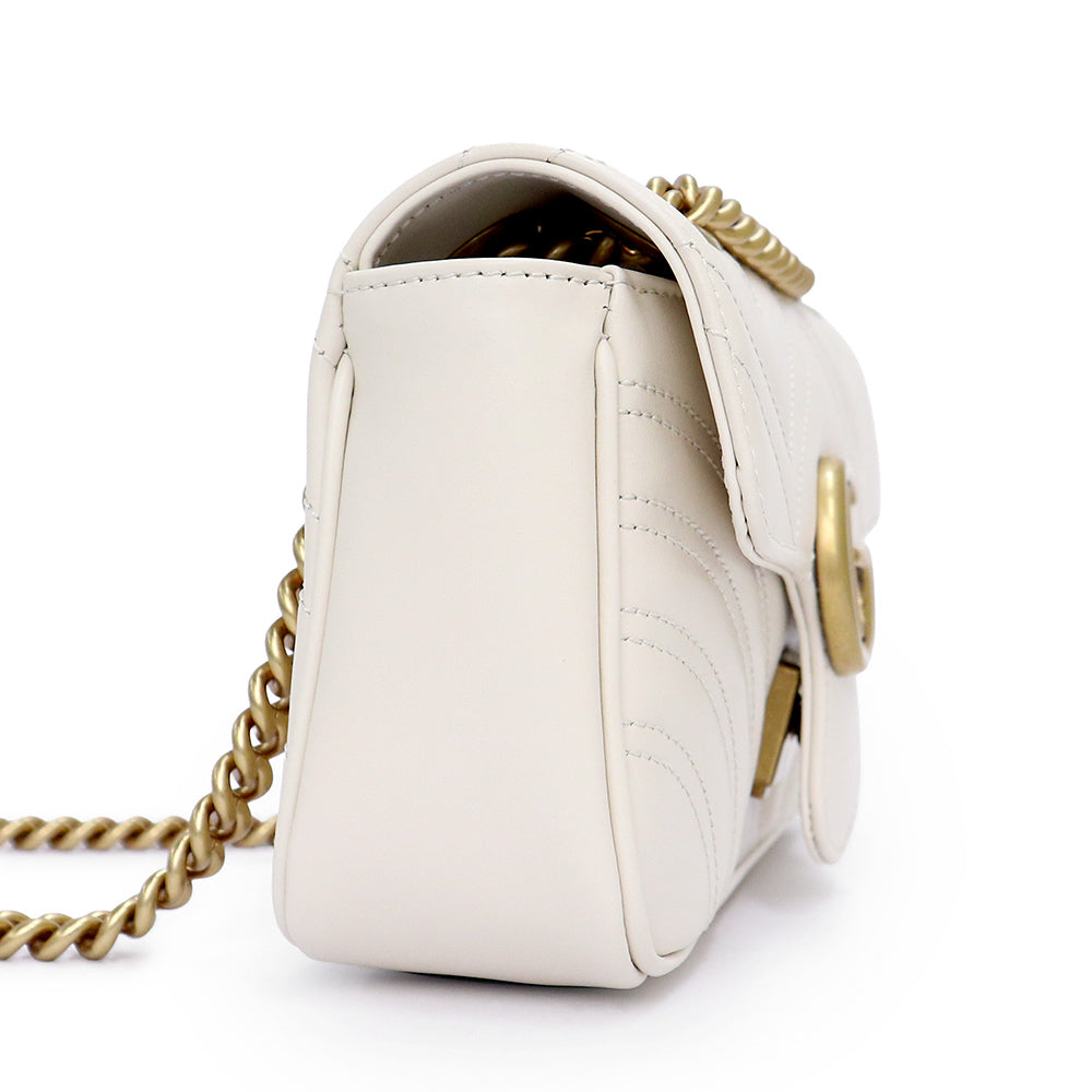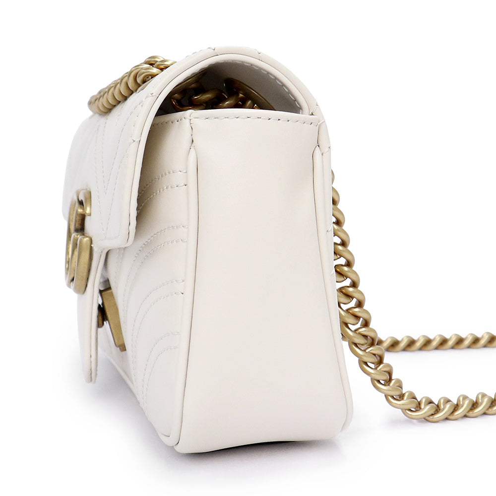 【新品・未使用品】GUCCI グッチ 446744 GGマーモント キルティング ミニ ハート オンライン限定 シェブロンレザー オフホワイト ショルダーバッグ 2WAY 斜め掛け アンティークゴールド金具