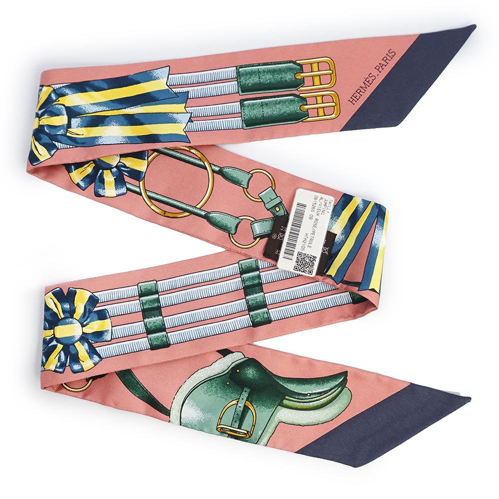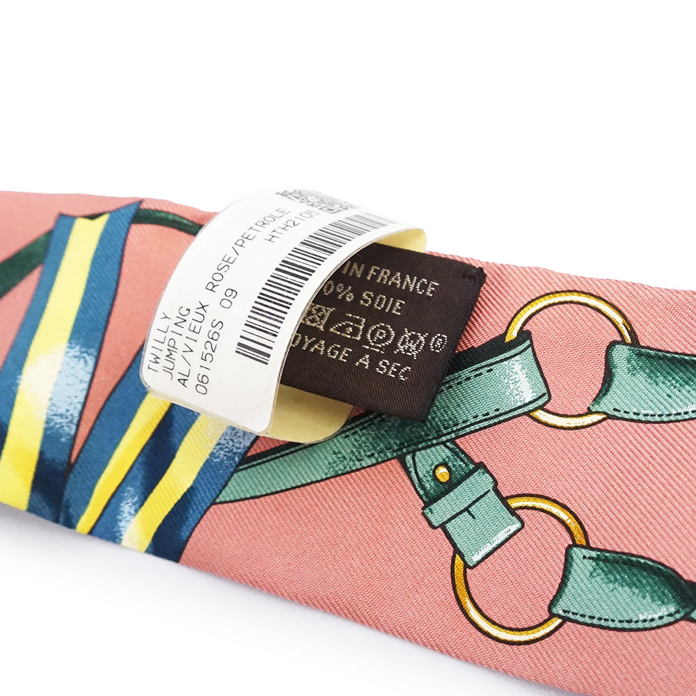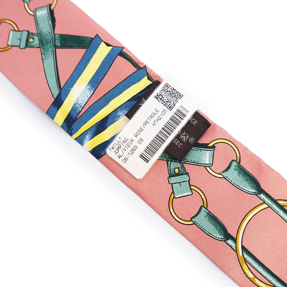 【新品・未使用品】HERMES エルメス ツイリー Jumping ジャンピング シルク100% ビューローズ ペトロール ピンク リボン スカーフ 箱付