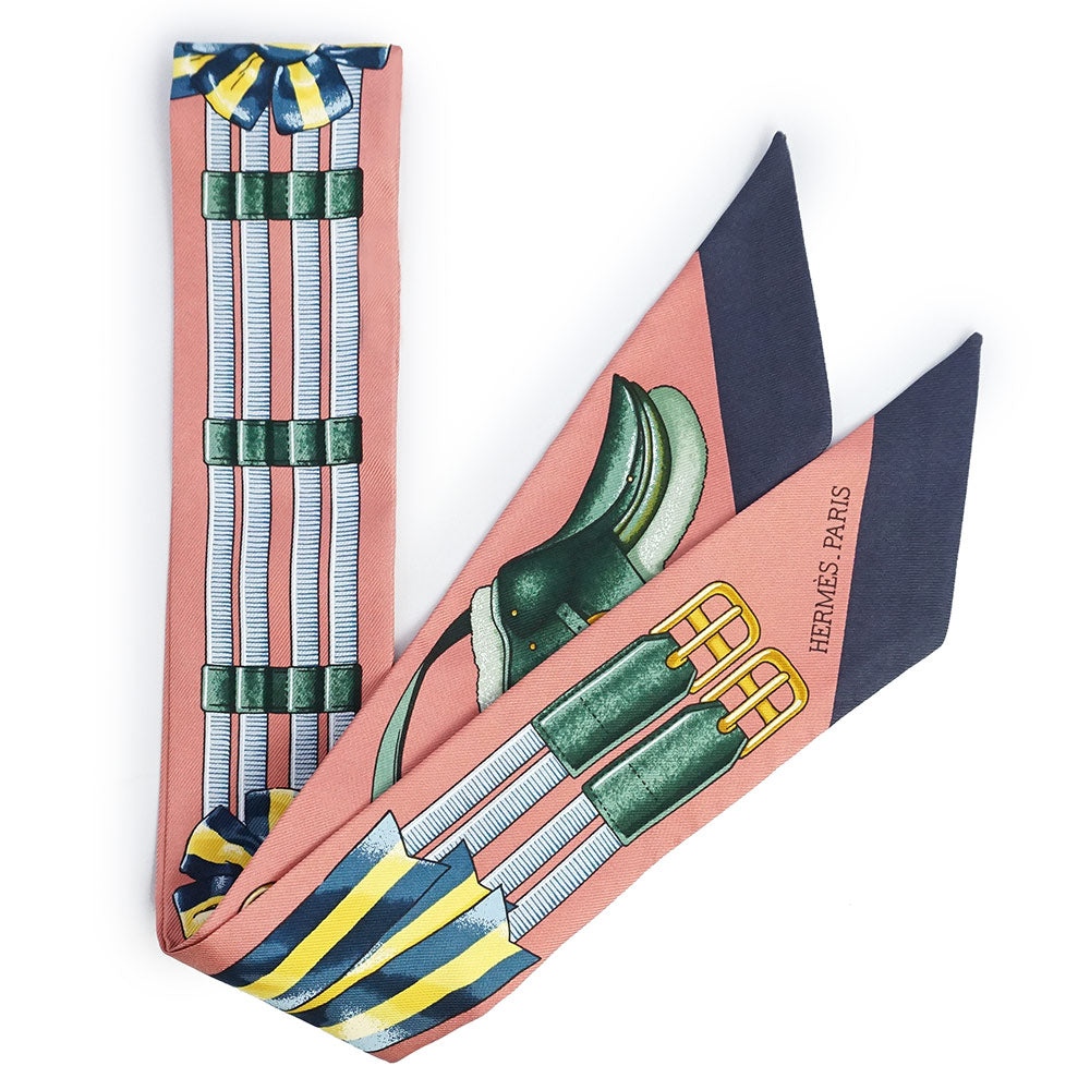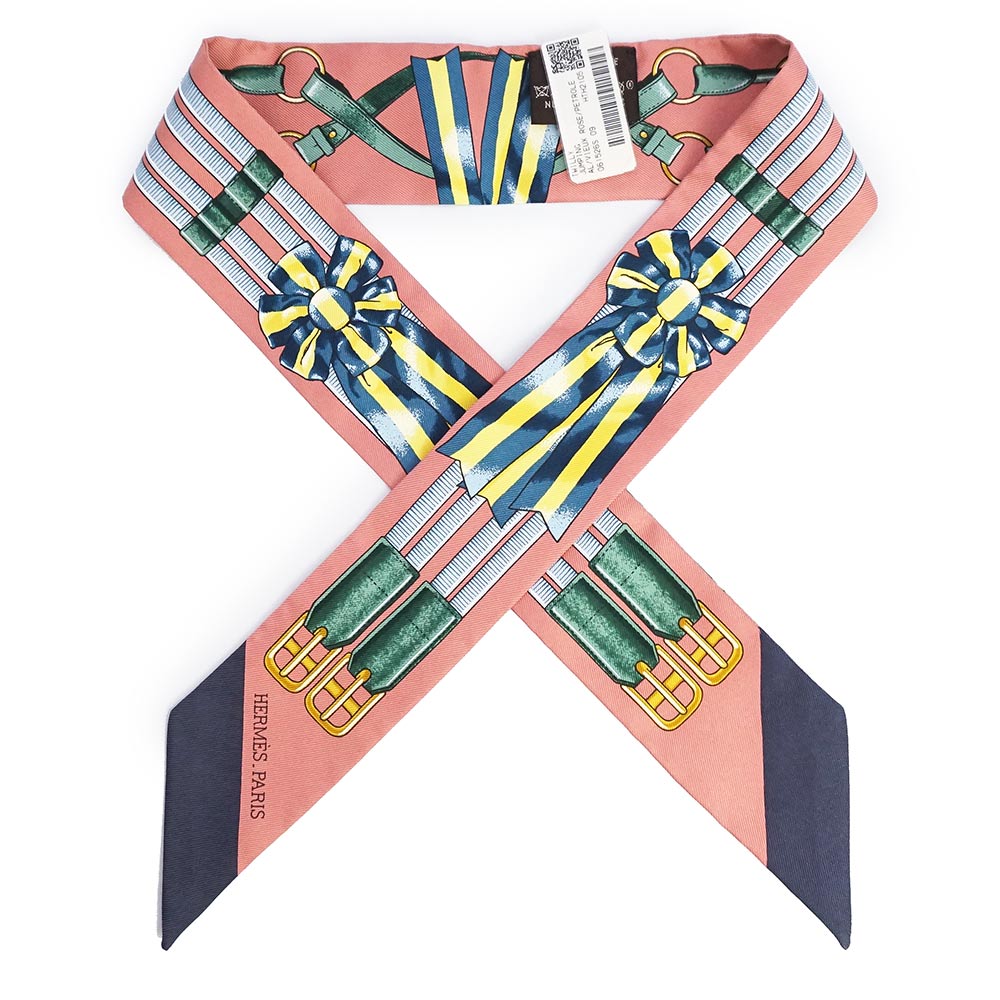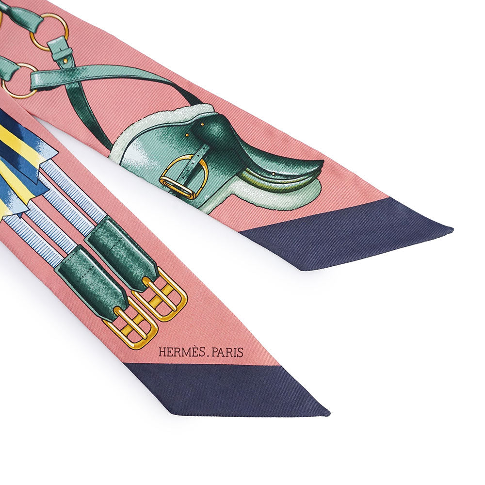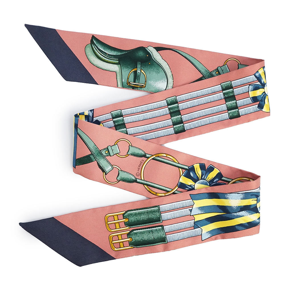 【新品・未使用品】HERMES エルメス ツイリー Jumping ジャンピング シルク100% ビューローズ ペトロール ピンク リボン スカーフ 箱付