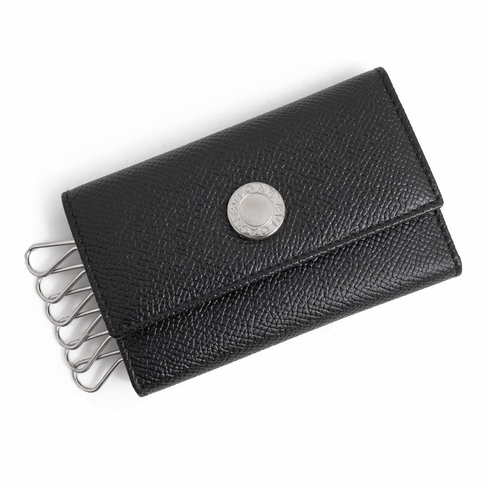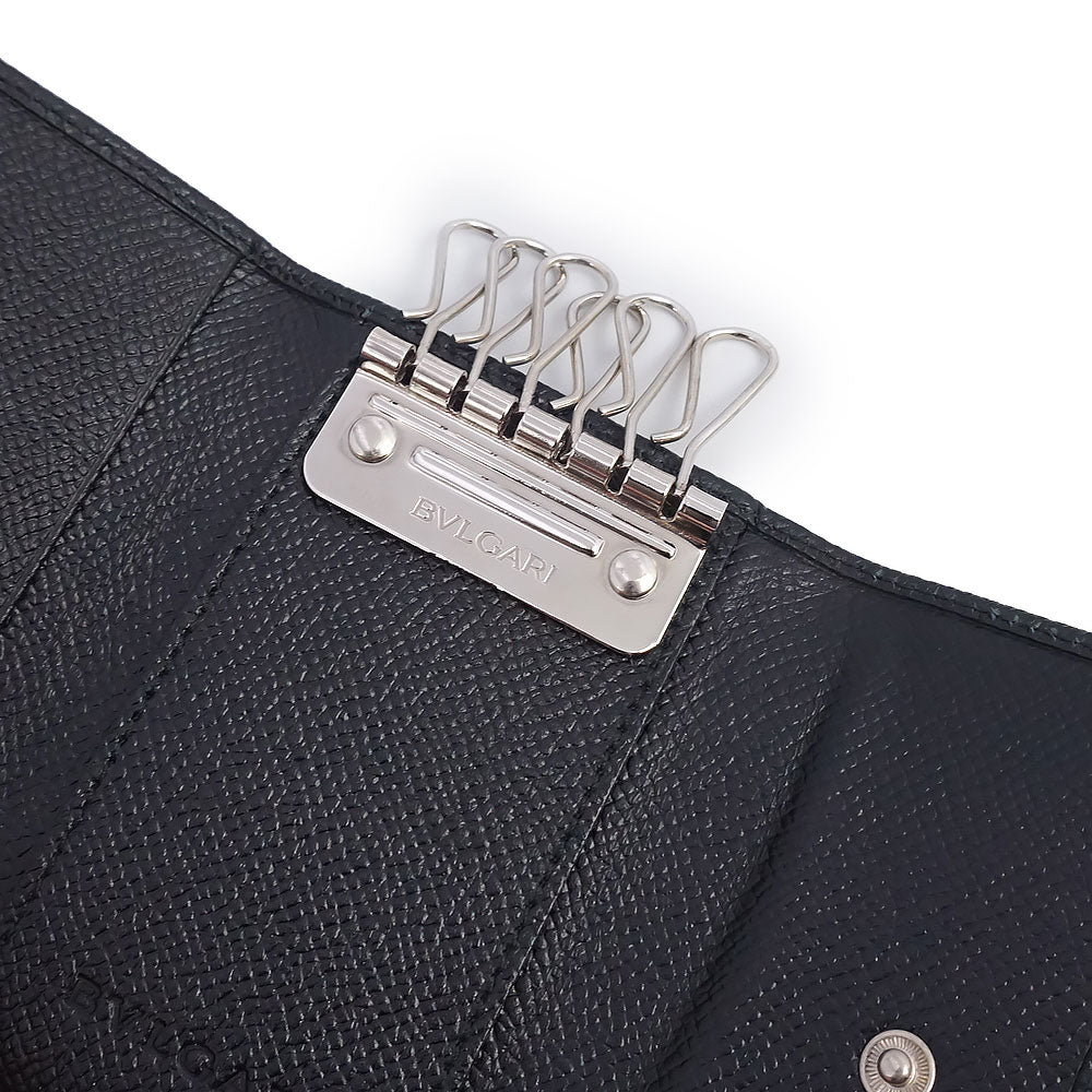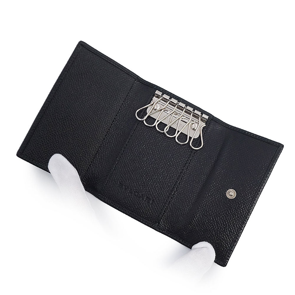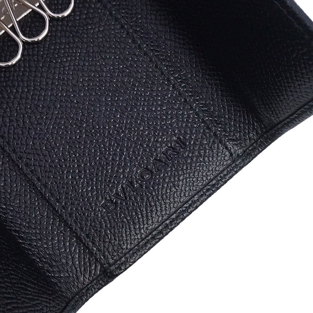 【新品・未使用品】BVLGARI ブルガリ 20234 クラシコ グレインカーフレザー ブラック 6連 キーケース シルバー金具 箱付