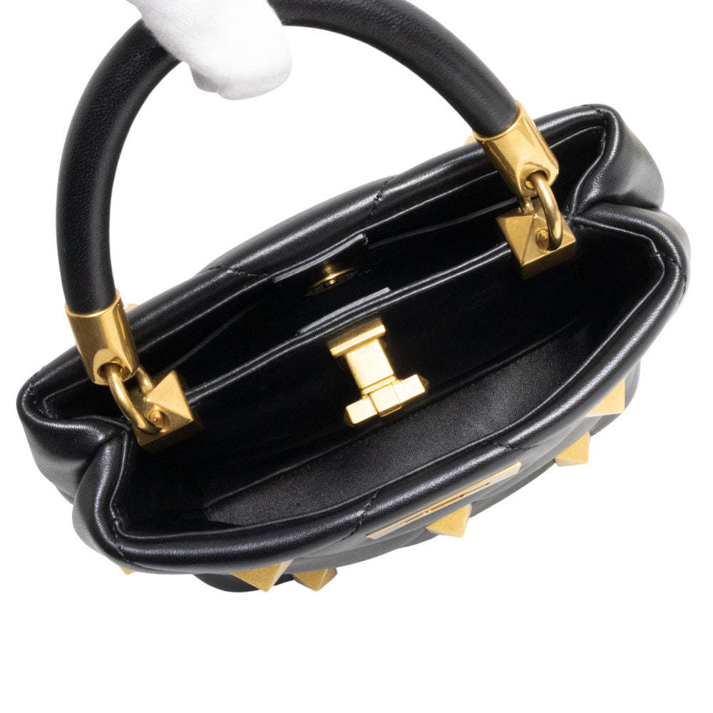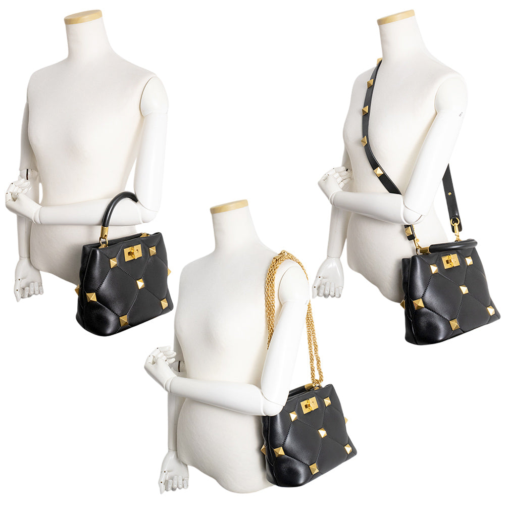 【未使用 展示品】Valentino Garavani ヴァレンティノ ガラヴァーニ 2W2B0I97BSF ローマンスタッズ スモール 3Way ハンドバッグ ナッパレザー ブラック チェーン ショルダーバッグ 斜め掛け アンティークゴールド金具