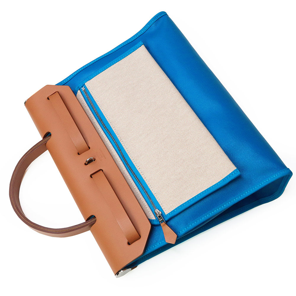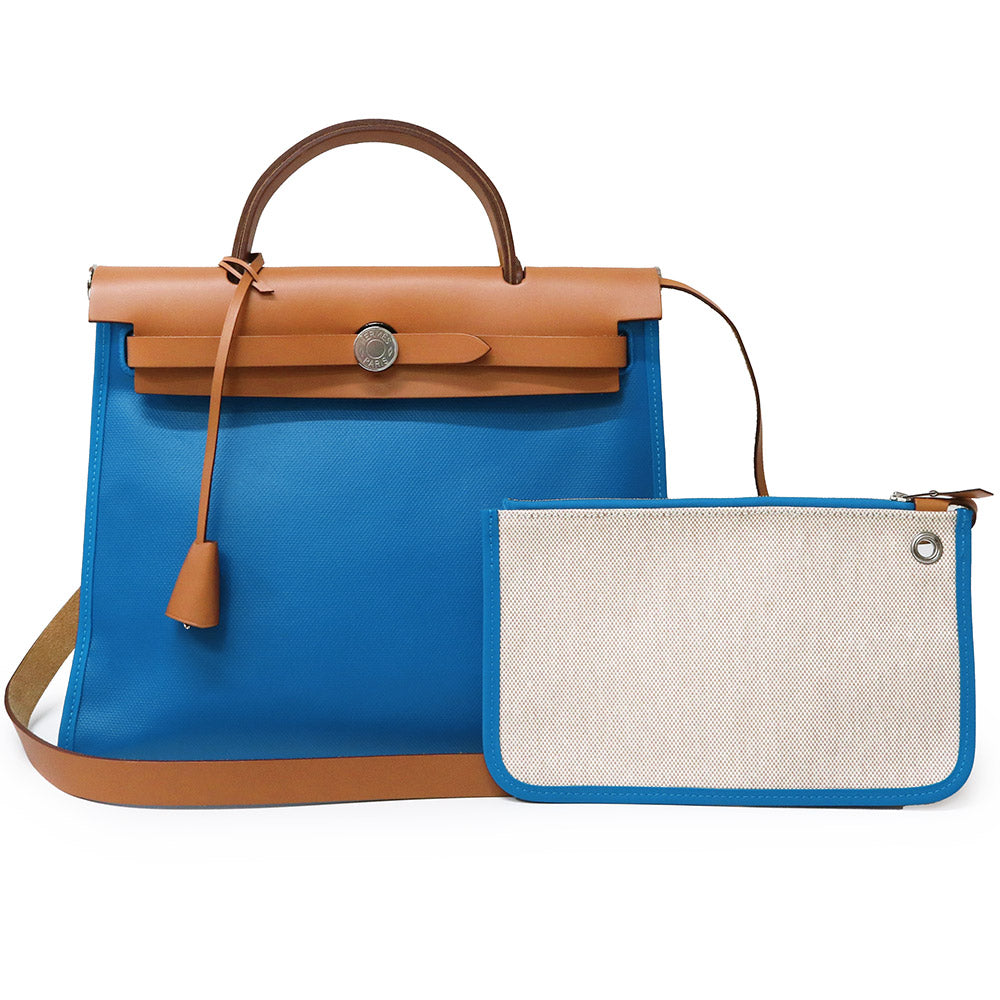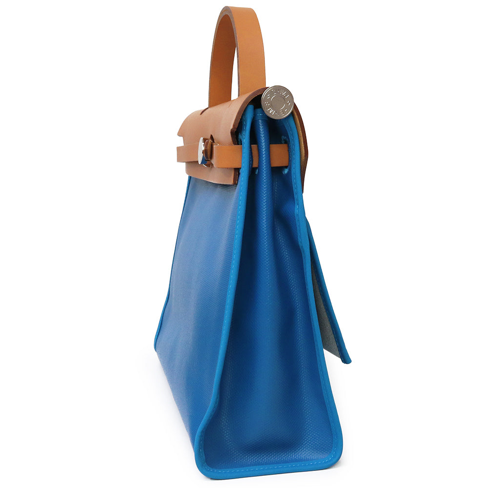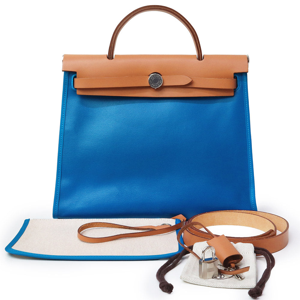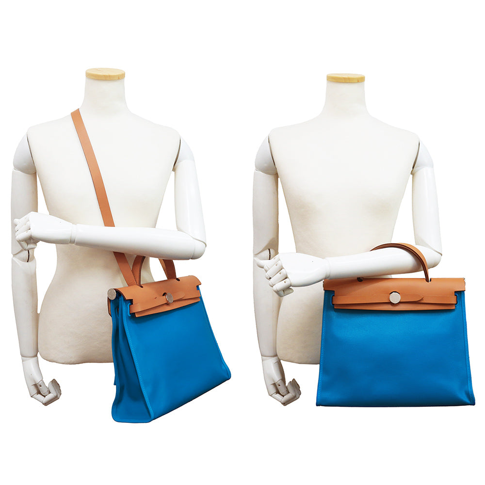 【未使用 展示品】HERMES エルメス エールバッグジップ 31 PM ルトゥルネ トワルアッシュベルリンヌ ヴァッシュハンター ブルーザンジバル ナチュラル ブルー ブラウン Z刻印 2WAY ショルダー ハンドバッグ 斜め掛け レザー シルバー金具